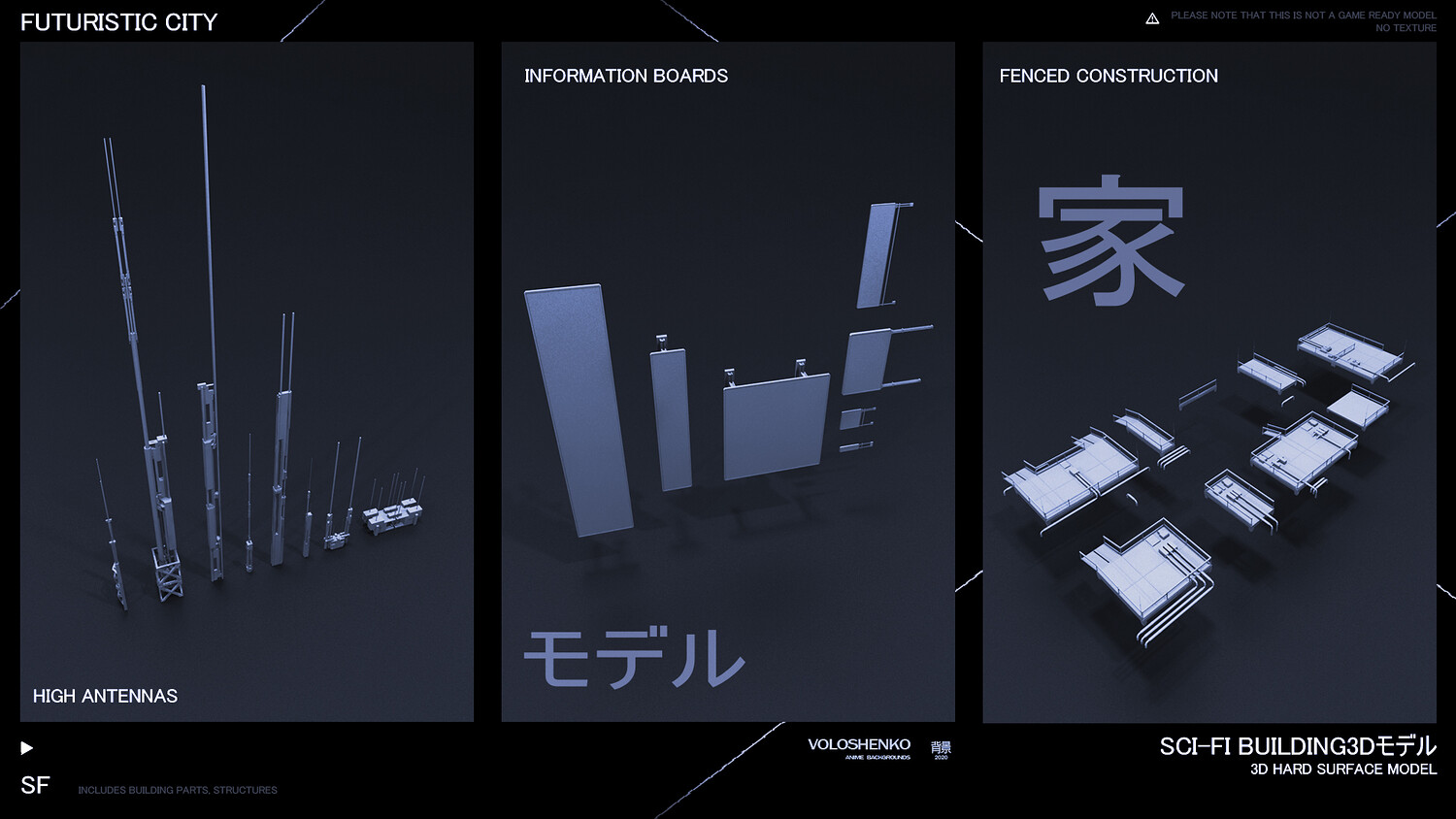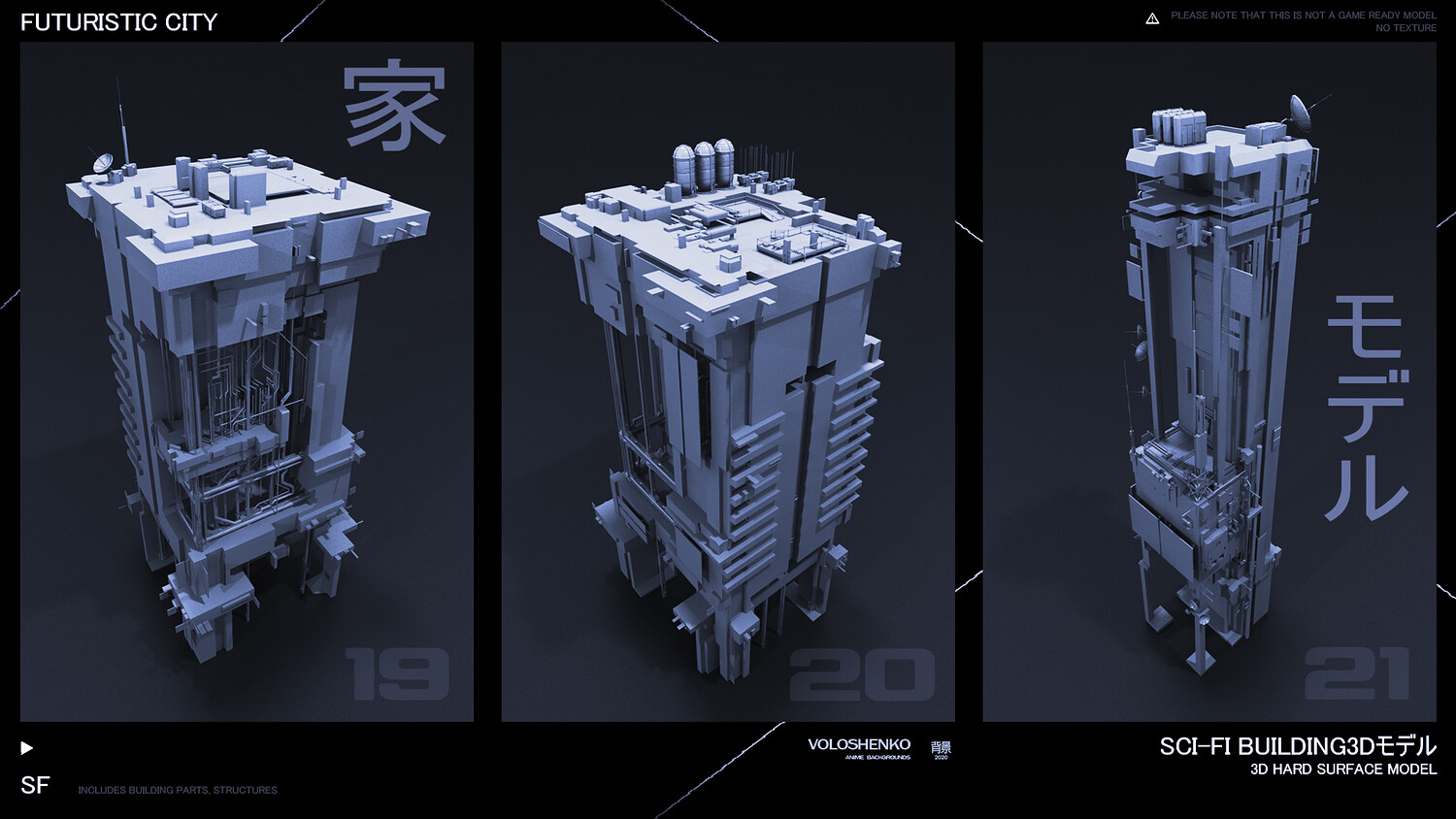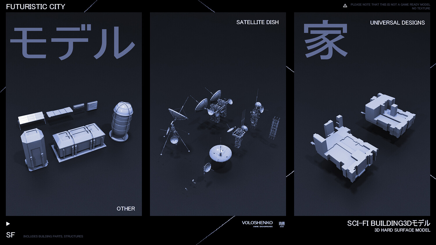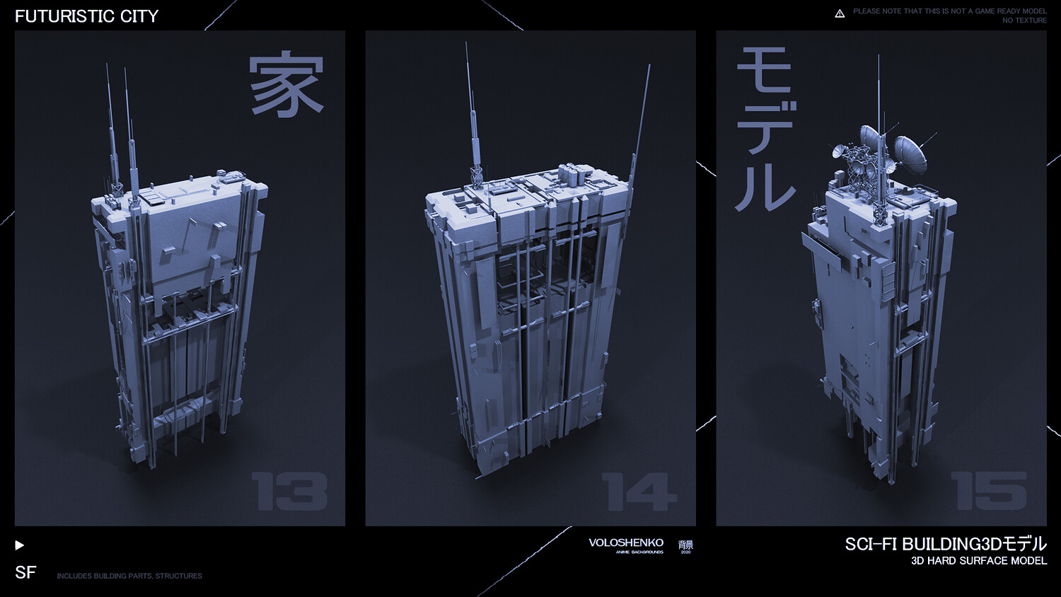 Sci-Fi Buildings 3D hard surface models