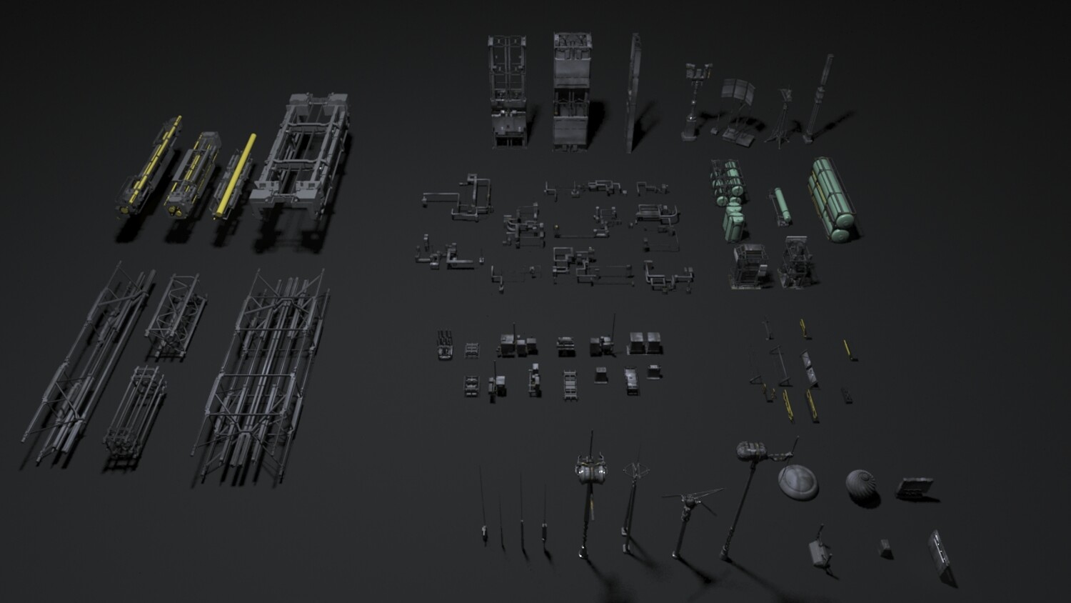 72 hard surface 3D models in formats: (.FBX), (.max), (.blend) All in one file (not separately)