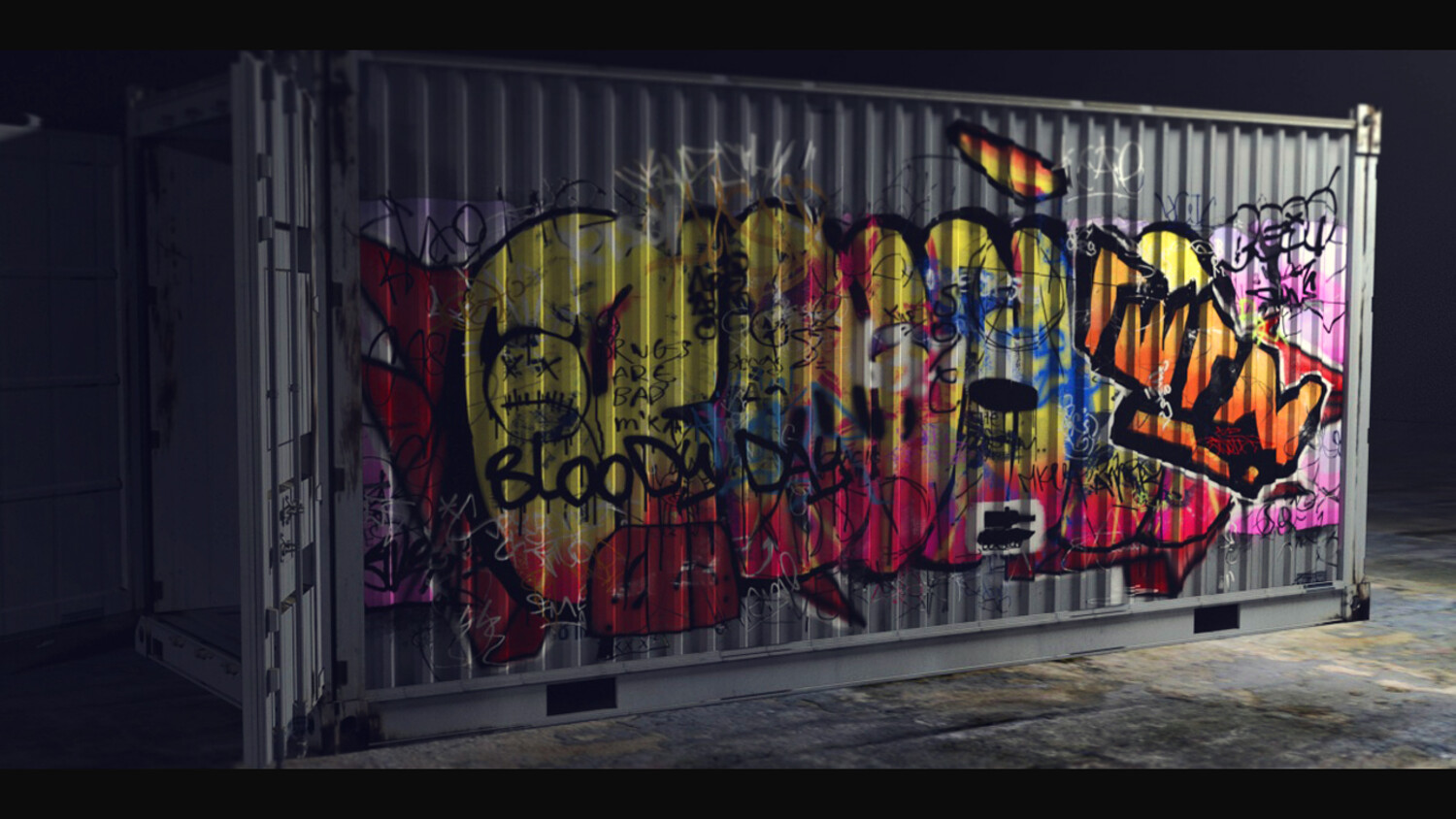 vandalism inscriptions to clutter the background (looks good in combination with alpha dirty wall) tagging stencil pictures combining garbage combination + alpha (10 combined pictures that are on the presentation) The set is intended for decorating walls and various surfaces.