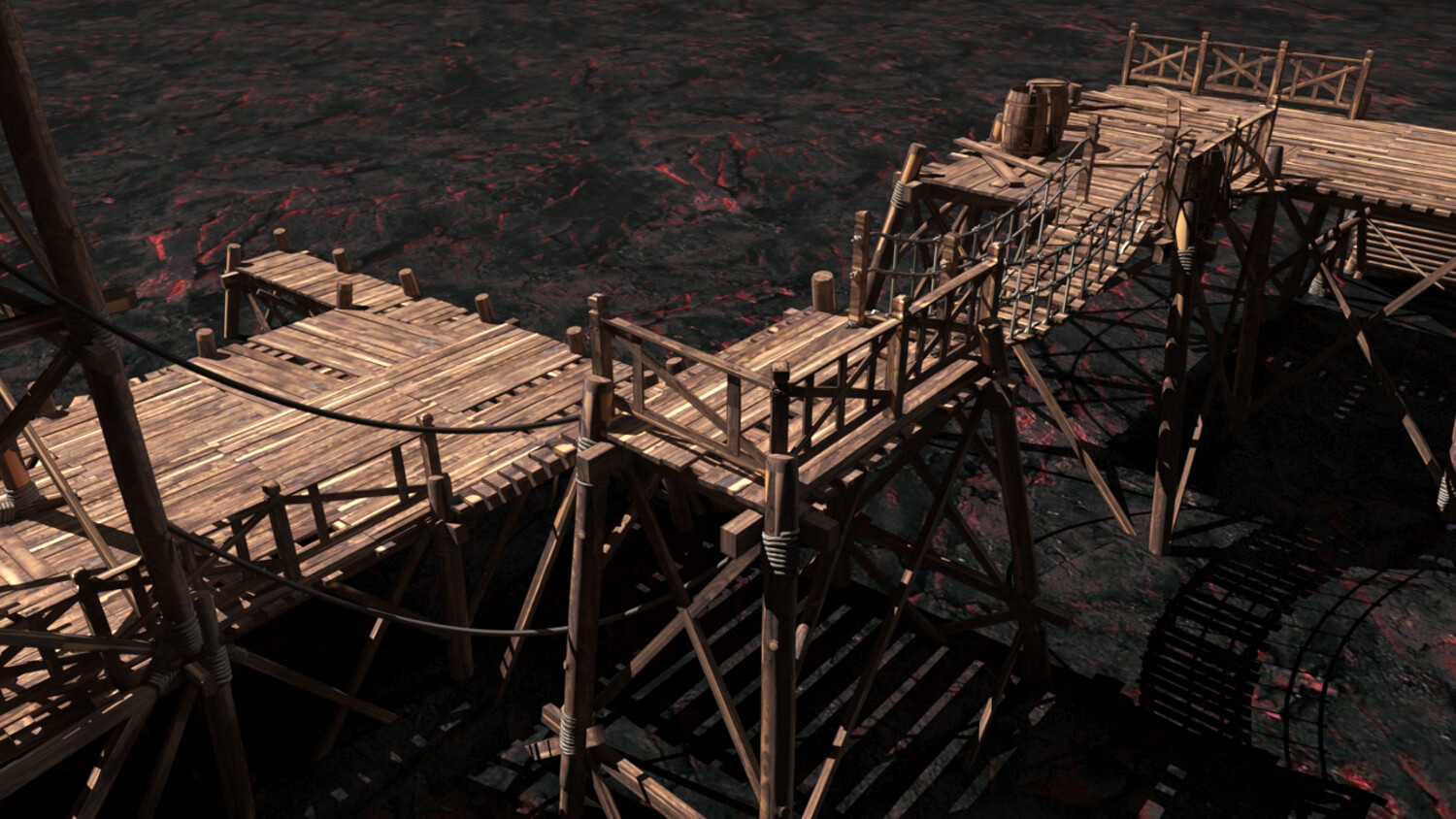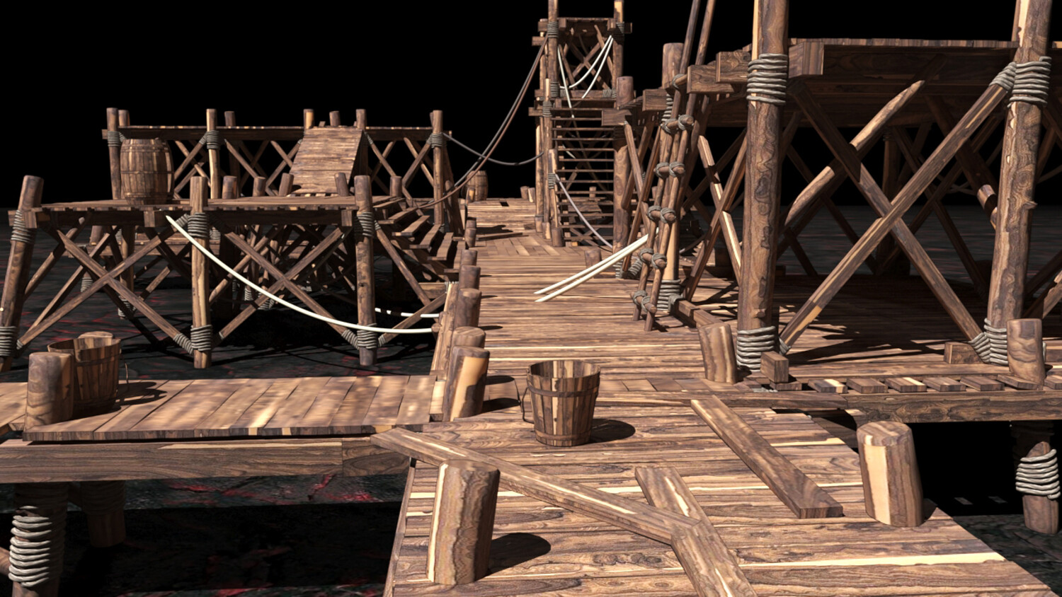 A set of models reminiscent of a medieval pirate pier... but you can imagine something of your own.