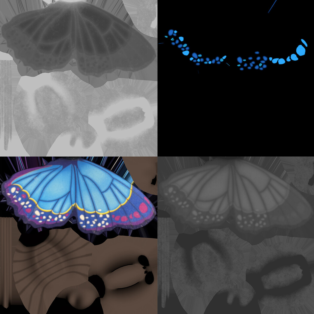 Blender 4.3 glb obj fbx PBR Textures (Basecolor, specular, normals, emit ,roughness, Alpha) 1 Materials 6 Textures 4096 x 4096 .png Square meshes The low-polygon project without subdivisions has 1040 vertices. The project with the subdivision modifier has a total of 8740 vertices.