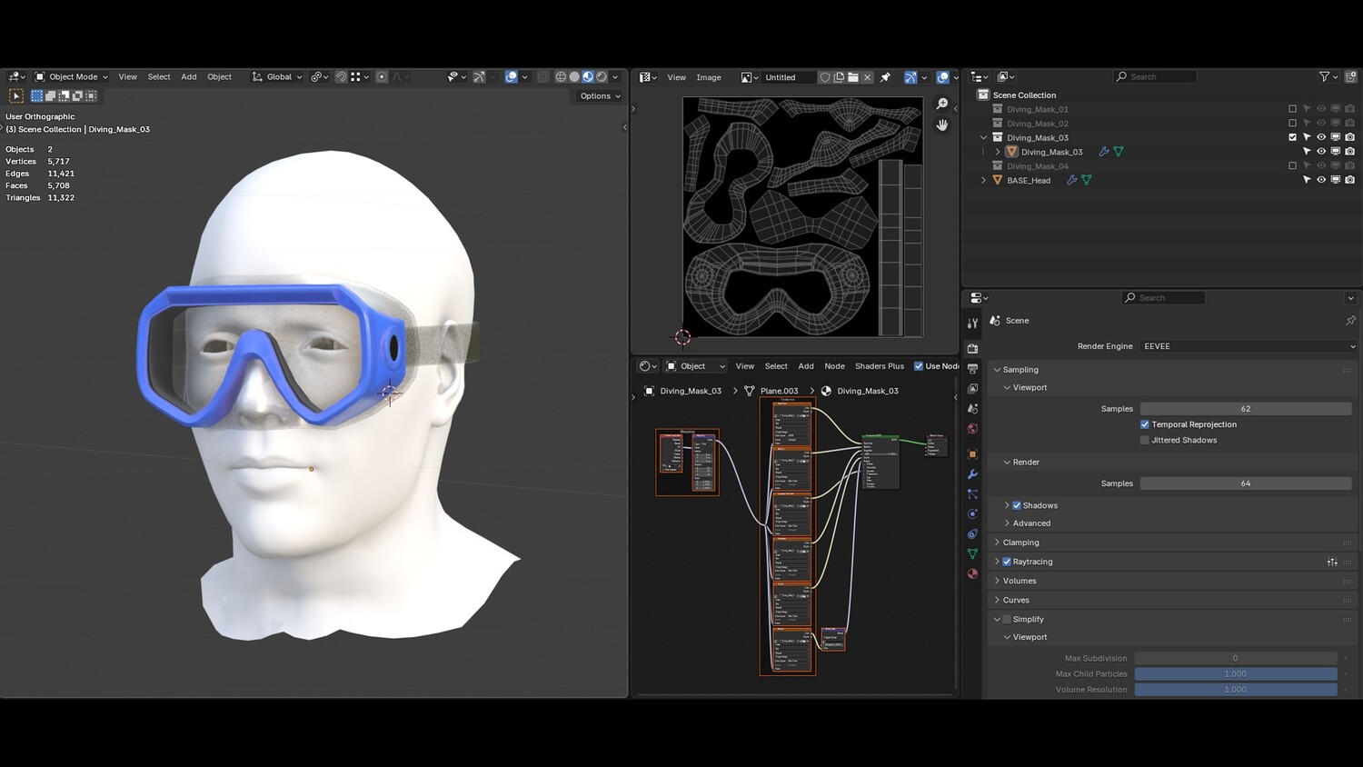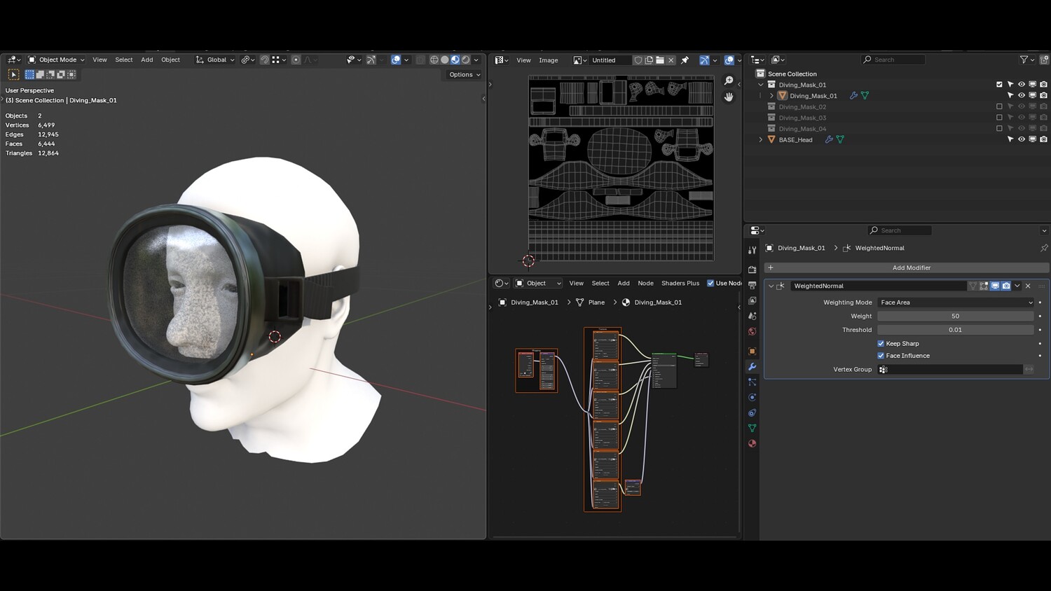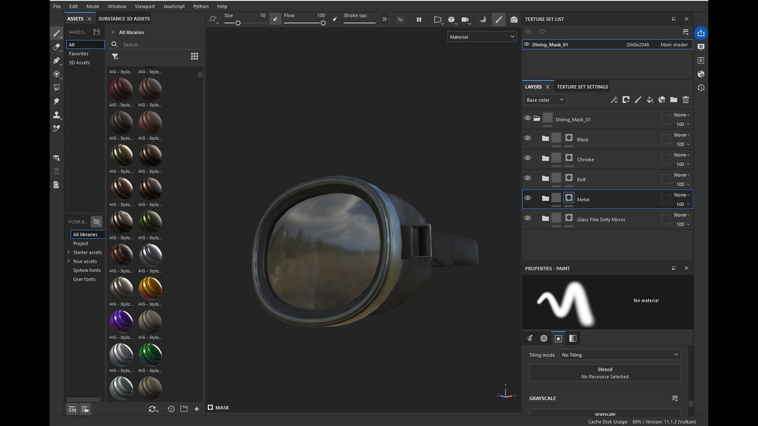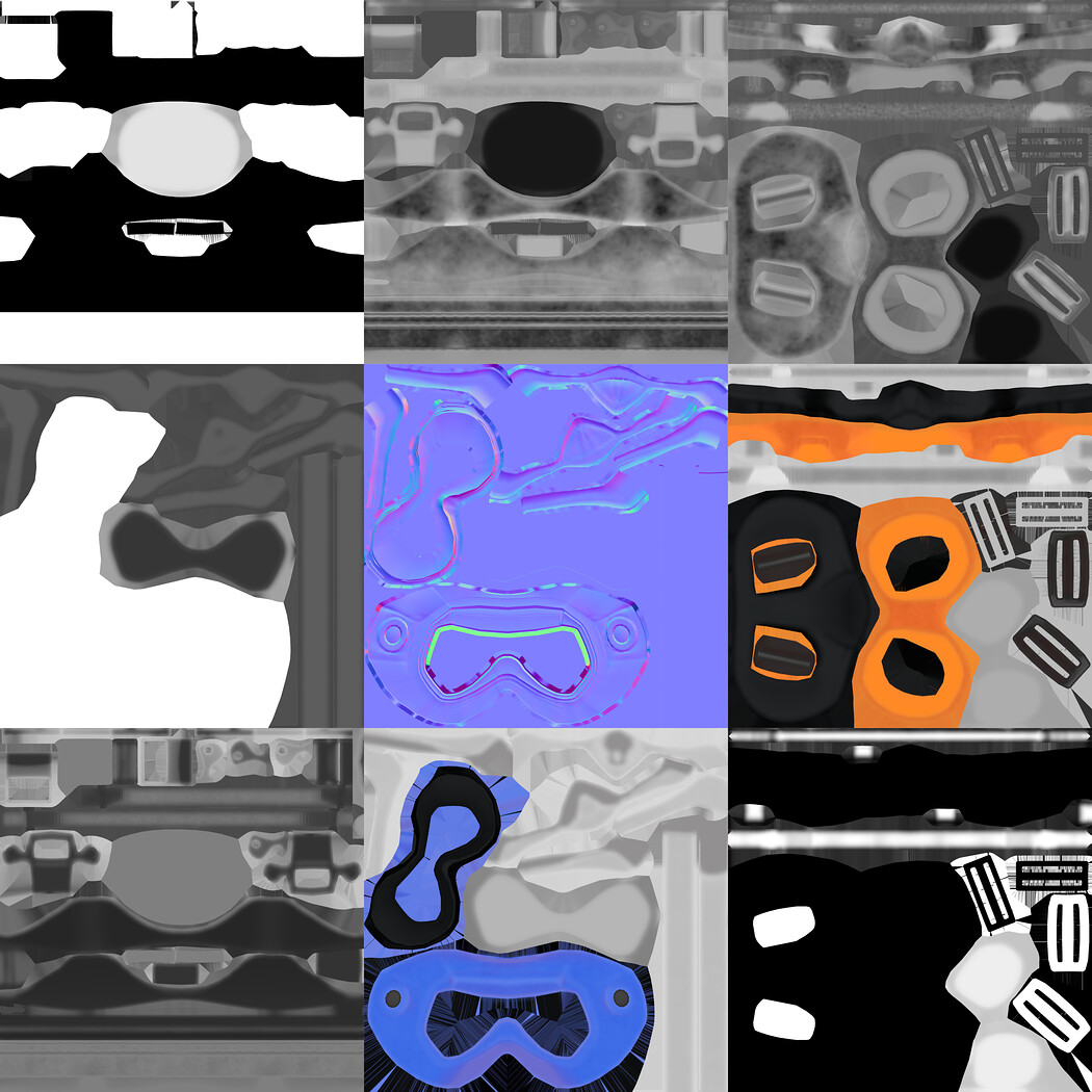 Blender 4.5 glb obj fbx PBR Textures (base color, specular, normal, roughness, metallic, alpha) 4 materials (one material for each mask) 24 textures 4096 x 4096 .png Actual size model Substance Painter 11.2 There are 4 Substance Painter files, one for each mask style.