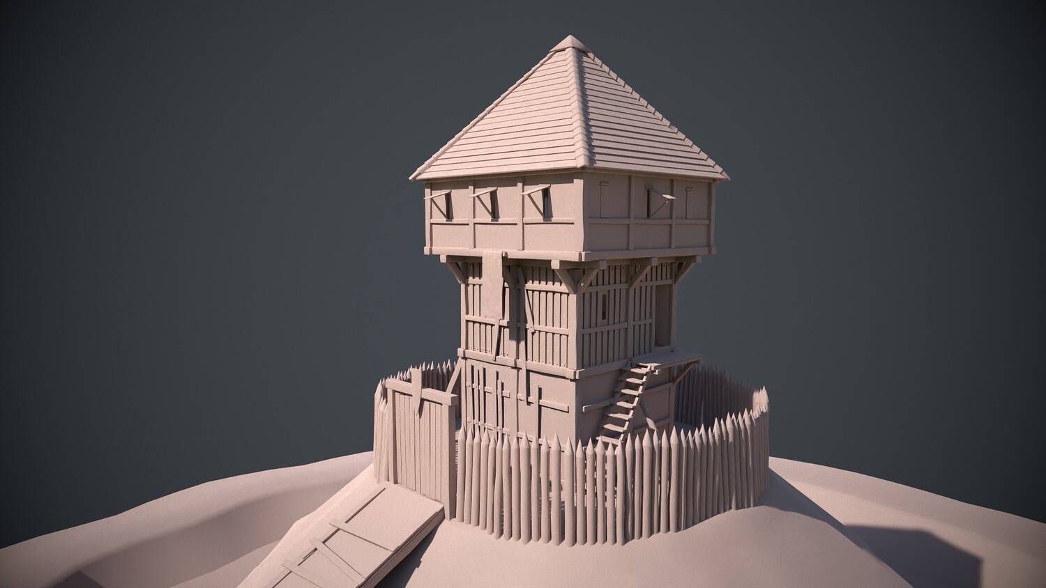 Historically inspired early medieval Norman wooden donjon (11th century), designed for motte-and-bailey castle environments.
