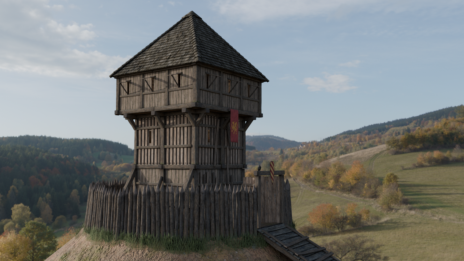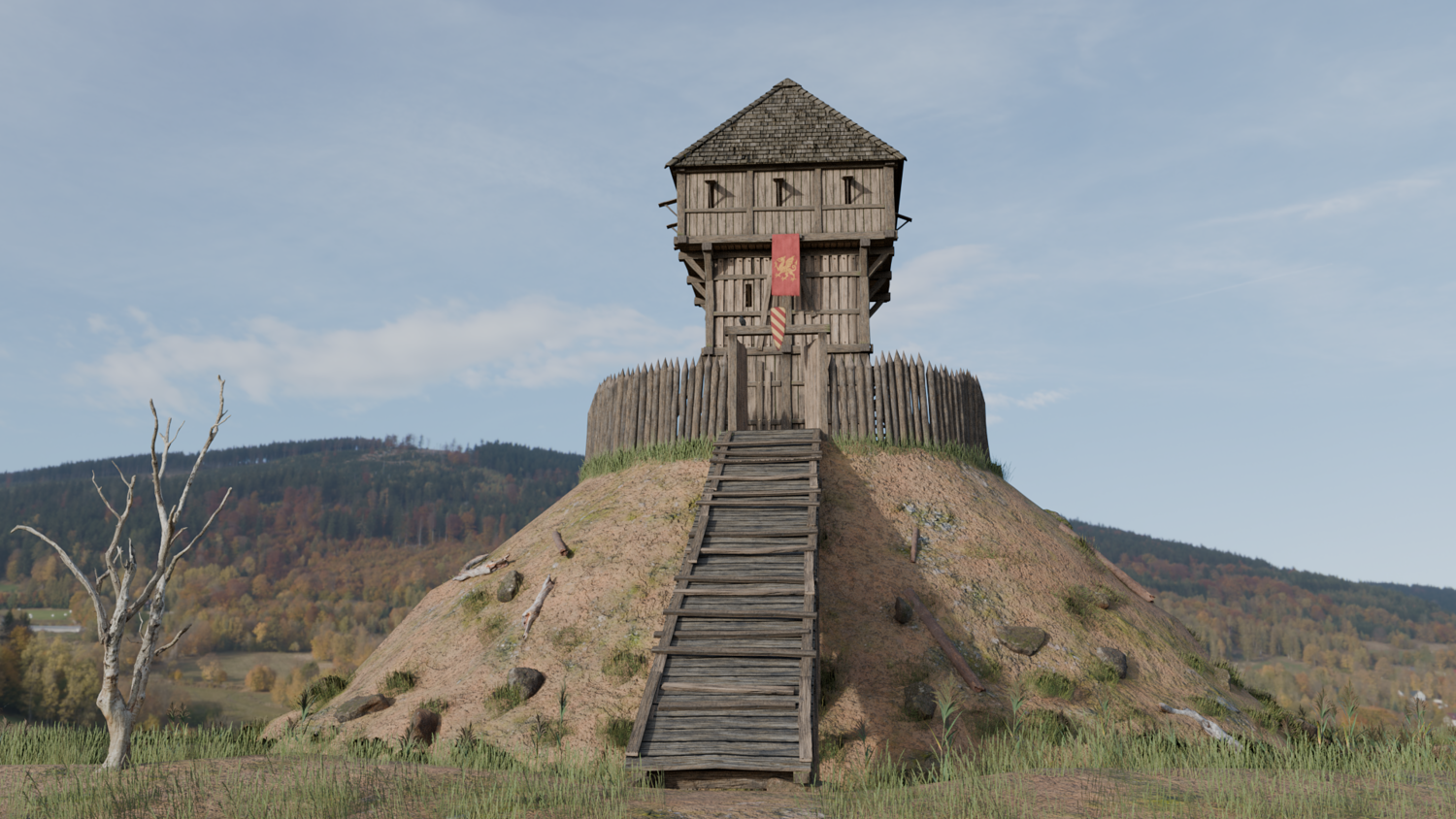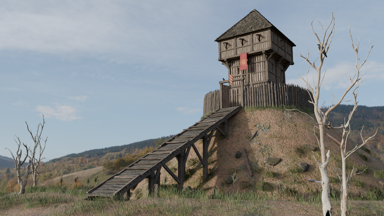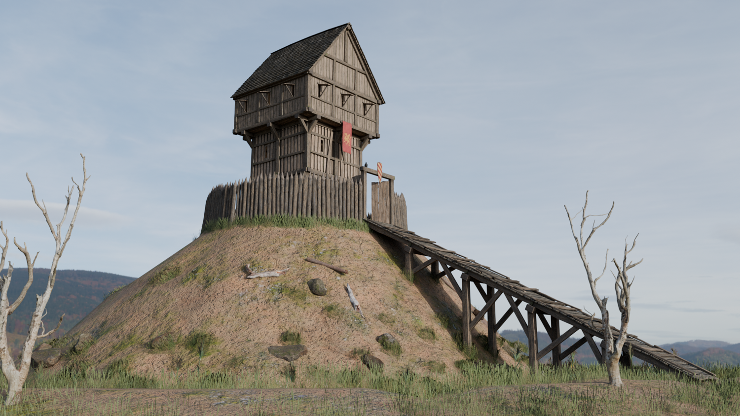 – Textures: • Wood atlas – 4K • Terrain (motte + ditch) texture – 4K • Flag and shield use separate textures