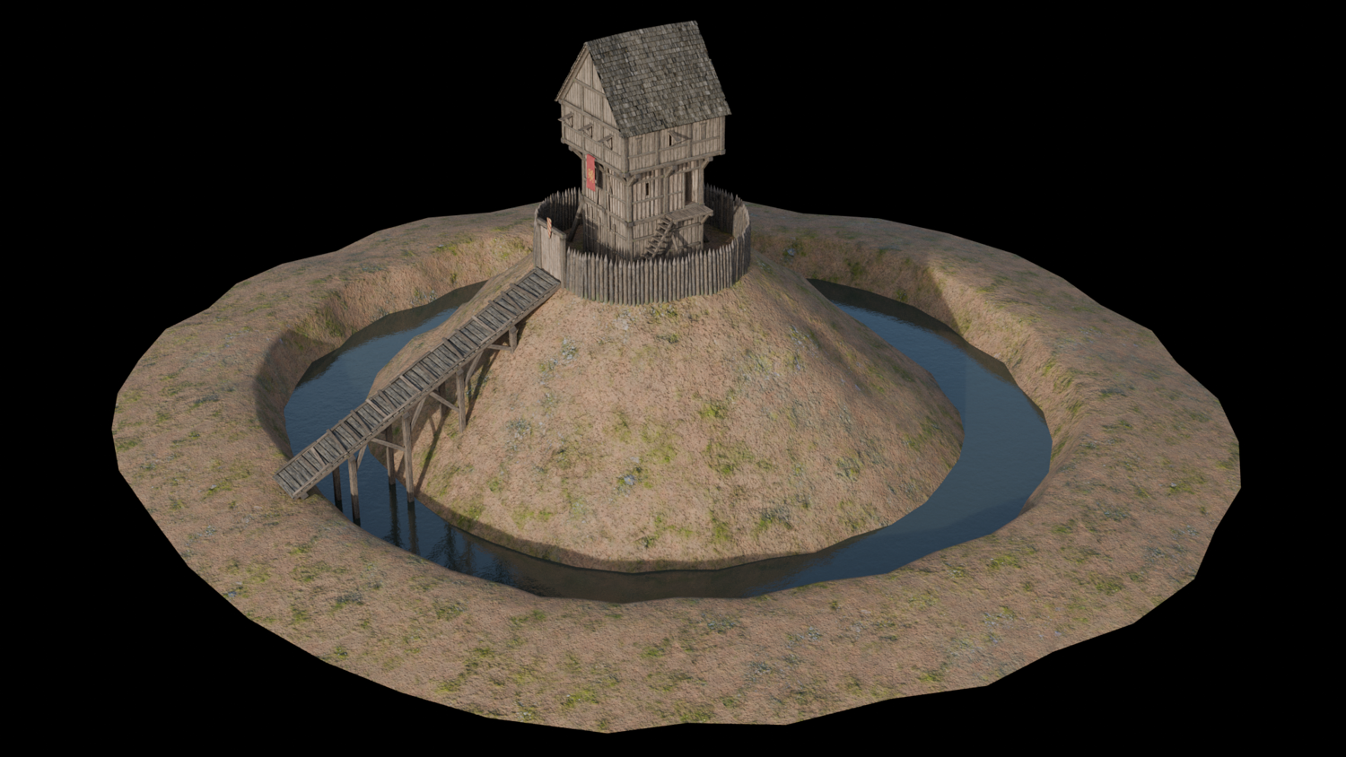 IMPORTANT: – Grass, stones, logs, ravens, torches, and HDRI are NOT included in the package. – These assets were used for presentation renders only. – Only the donjon, terrain (motte + ditch), and associated textures are included.