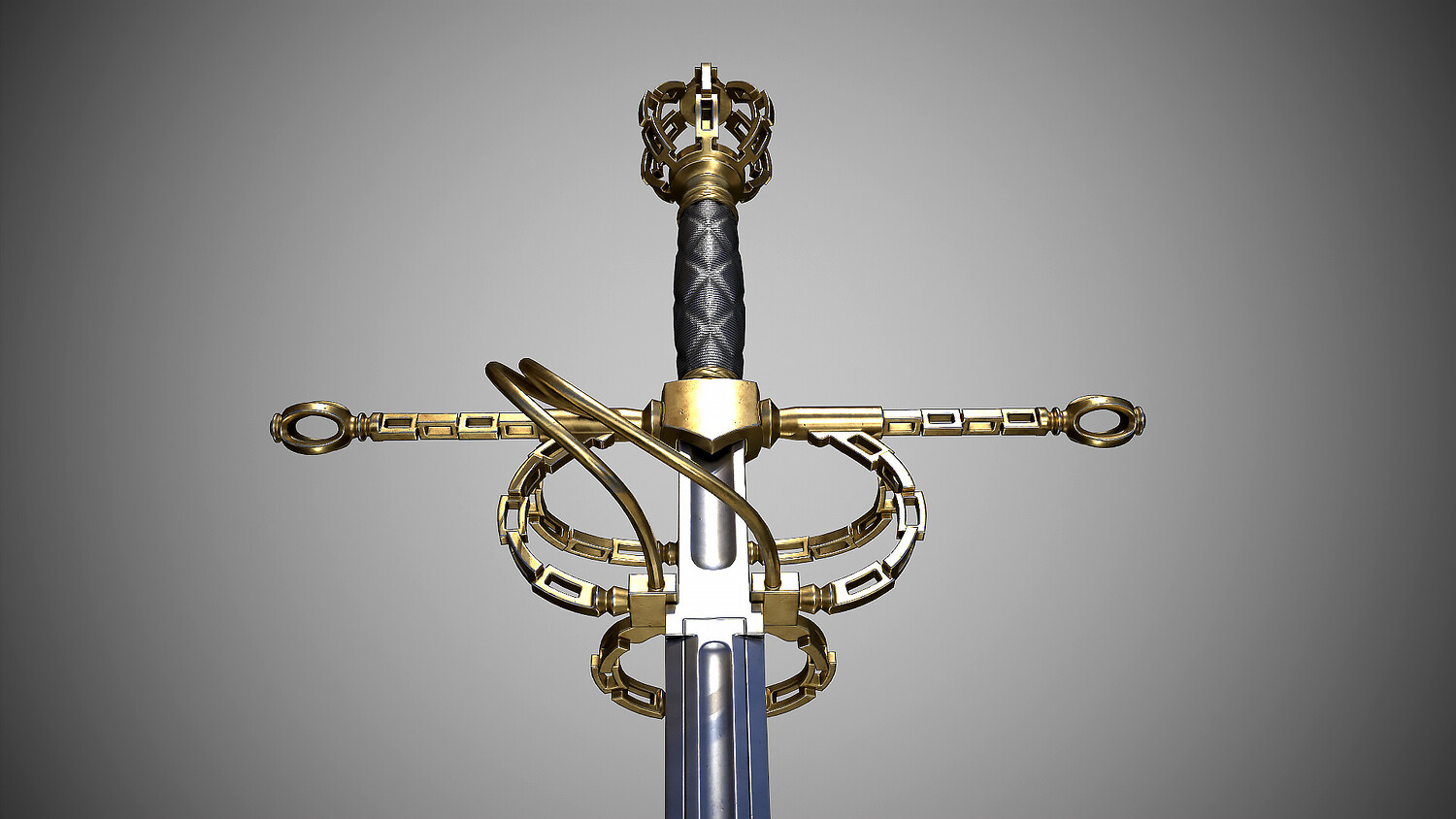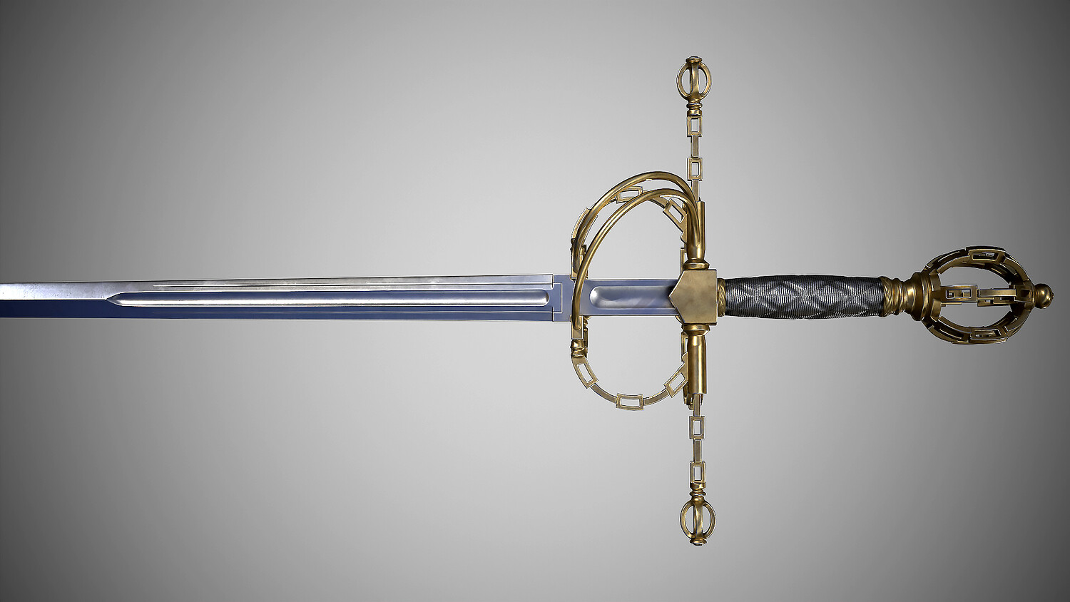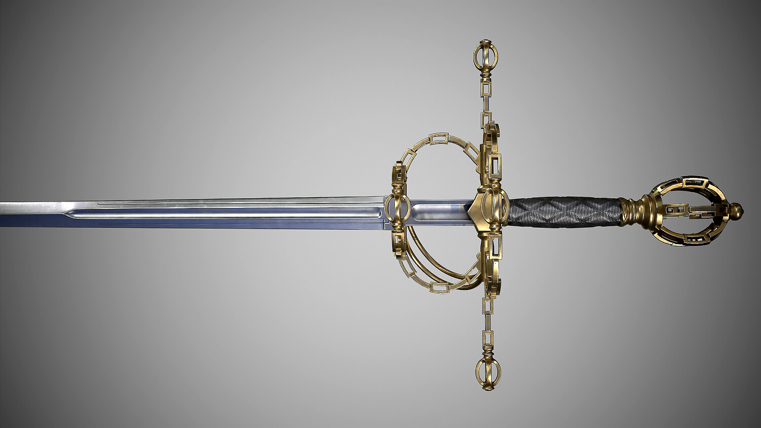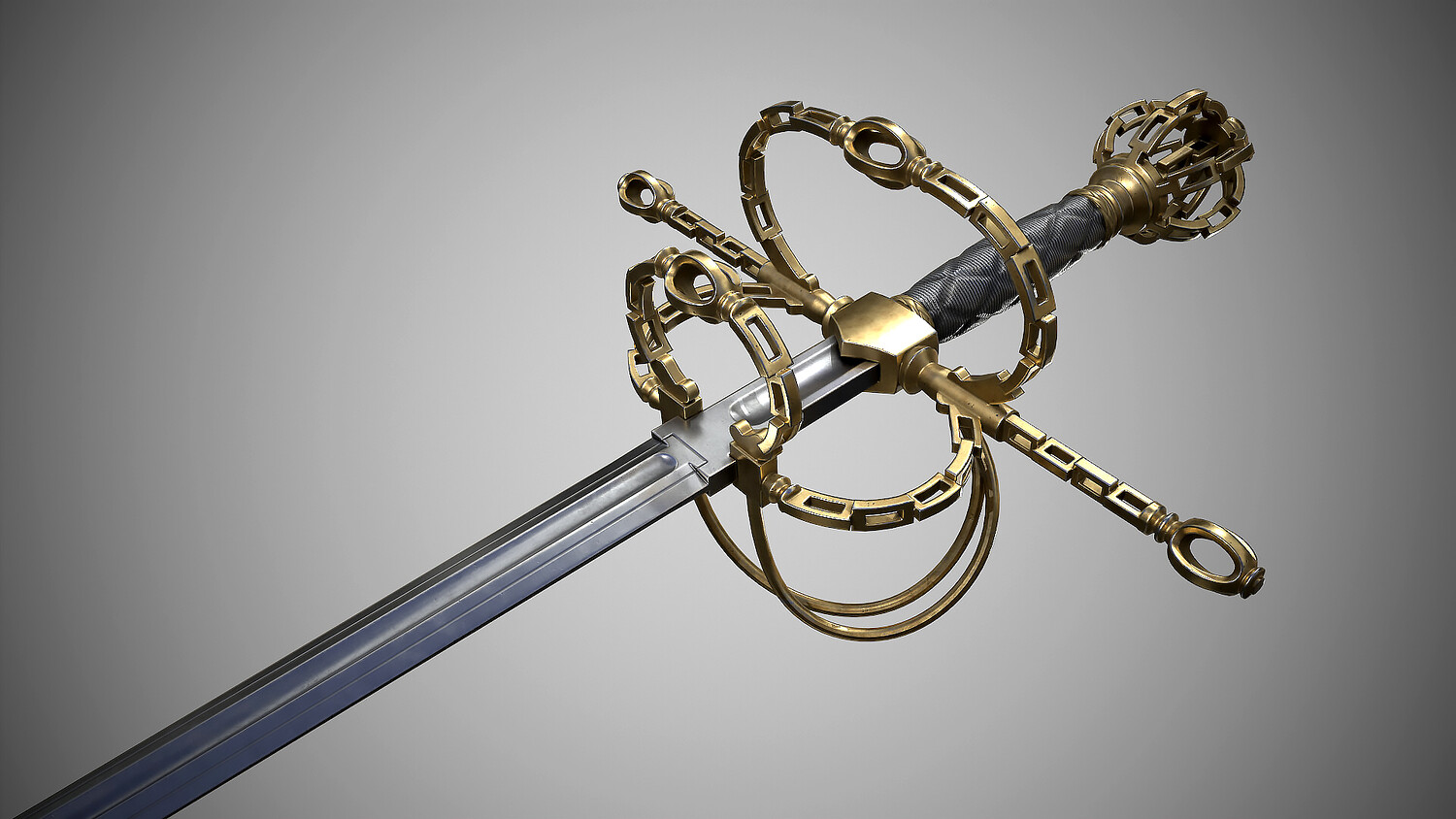 Rapier with fashionable “chain” hilt. Europe, dated first quarter of the 17th century. Total length 1310 mm. At the turn of the 16th-17th centuries, such hilts imitating chain links became fashionable for a short time. Low-poly pbr-game-ready model high poly modeling done in blender and ZBrush Low poly done in blender Textured in Substance painter, baked and rendered using Marmoset Toolbag 4 The Total polycount is -19k Tris Textures 4k PBR Metallic Roughness