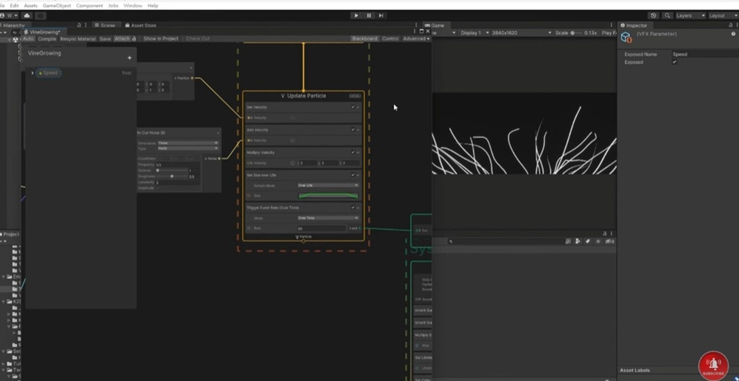 Vine growth effect created using Unity VFX Graph, You can modify the strip length, color, disturbance frequency, etc. by yourself. Detailed instructional video: https://www.youtube.com/watch?v=-GoJLf_L3lc