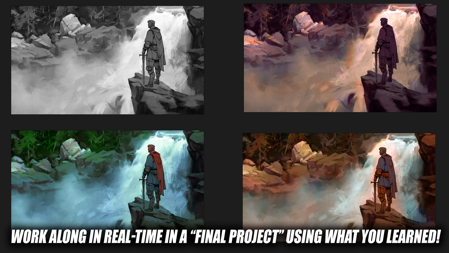 Much like Simplifying Color Theory Volume 1, this course is set up like a chat with your own private art mentor, so while there are a LOT of moving parts and topics discussed, the lecture format is set up to be watchable multiple times, gaining new information on each viewing!