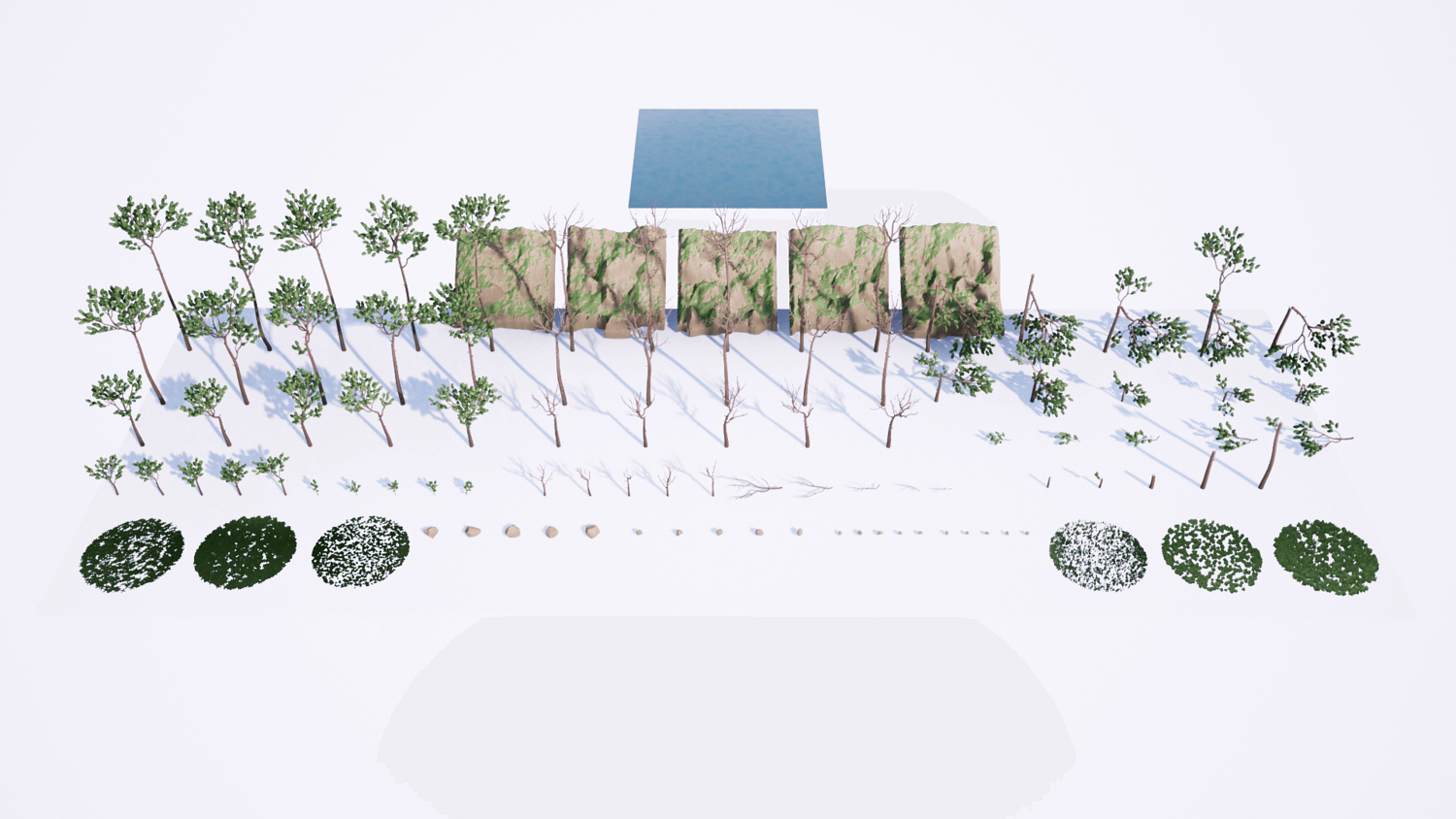 - Includes a variety of trees of different sizes and shapes, ensuring diverse and realistic forest environments.