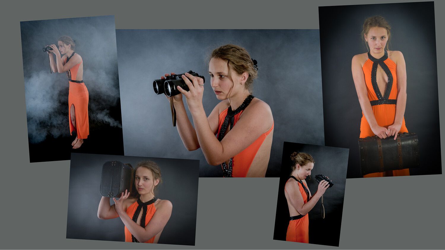 She poses in an orange dress with binoculars and with a suitcase. No nude content inside. 47 photos (.jpg) in good quality. And sure, no AI involved - just the model, me and my camera !