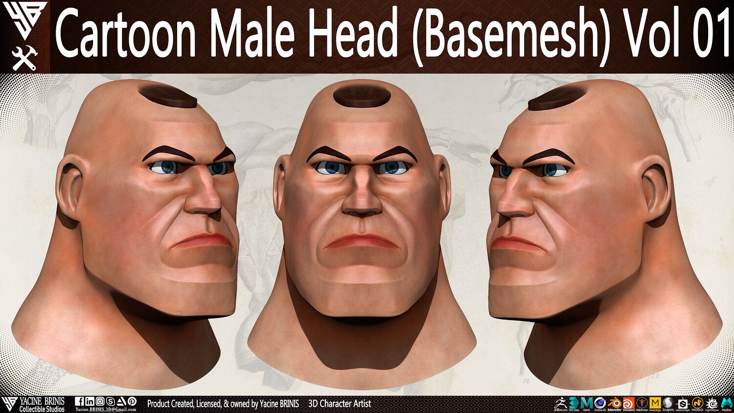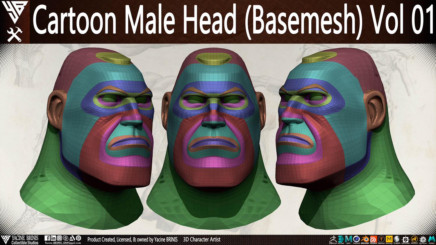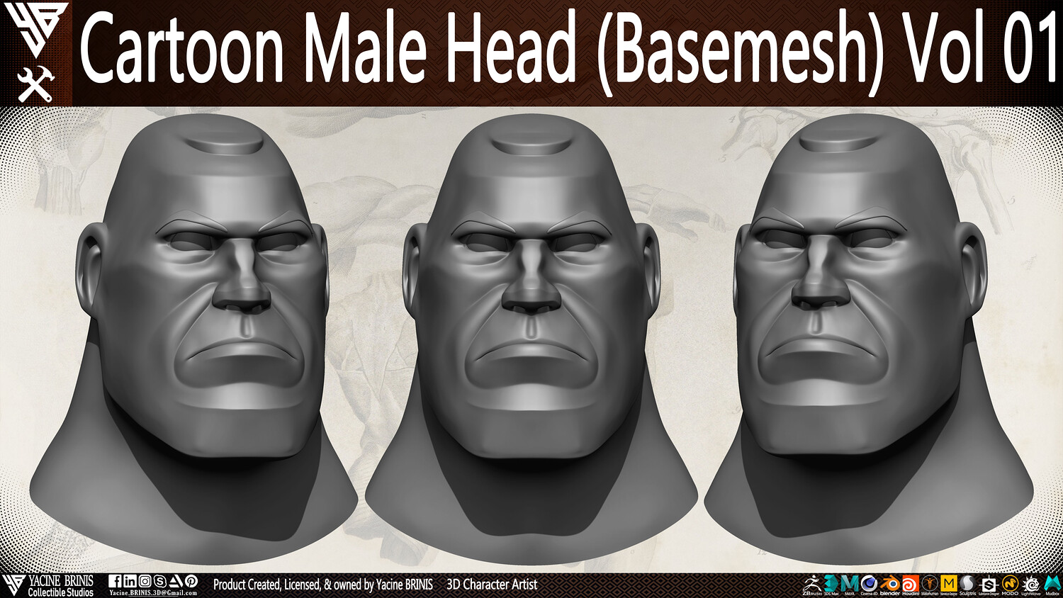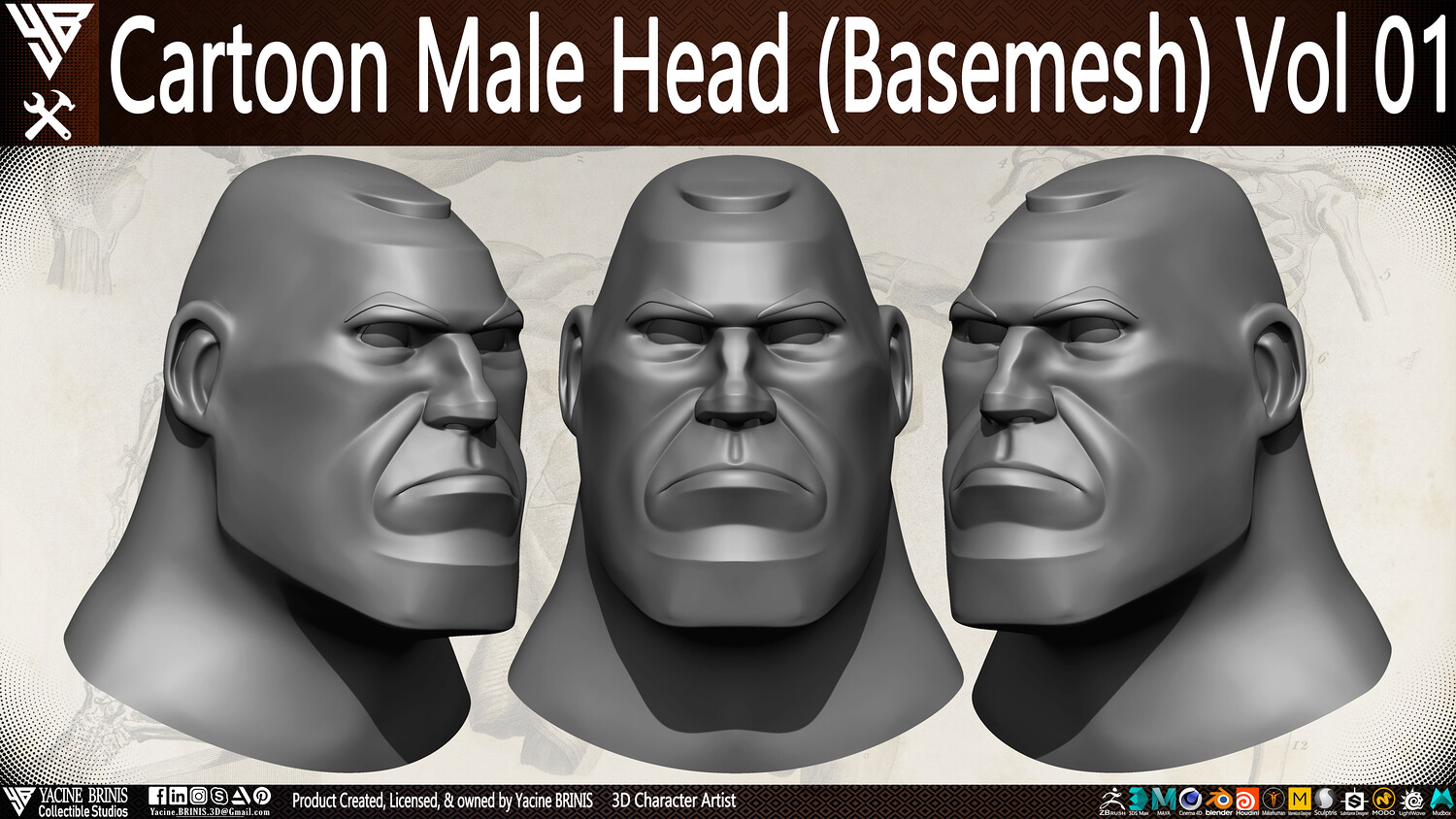 Cartoon Male Head Basemesh 3D Model Volume 01