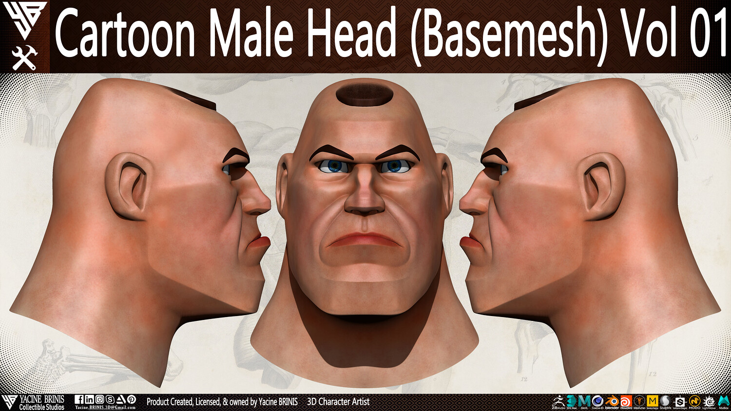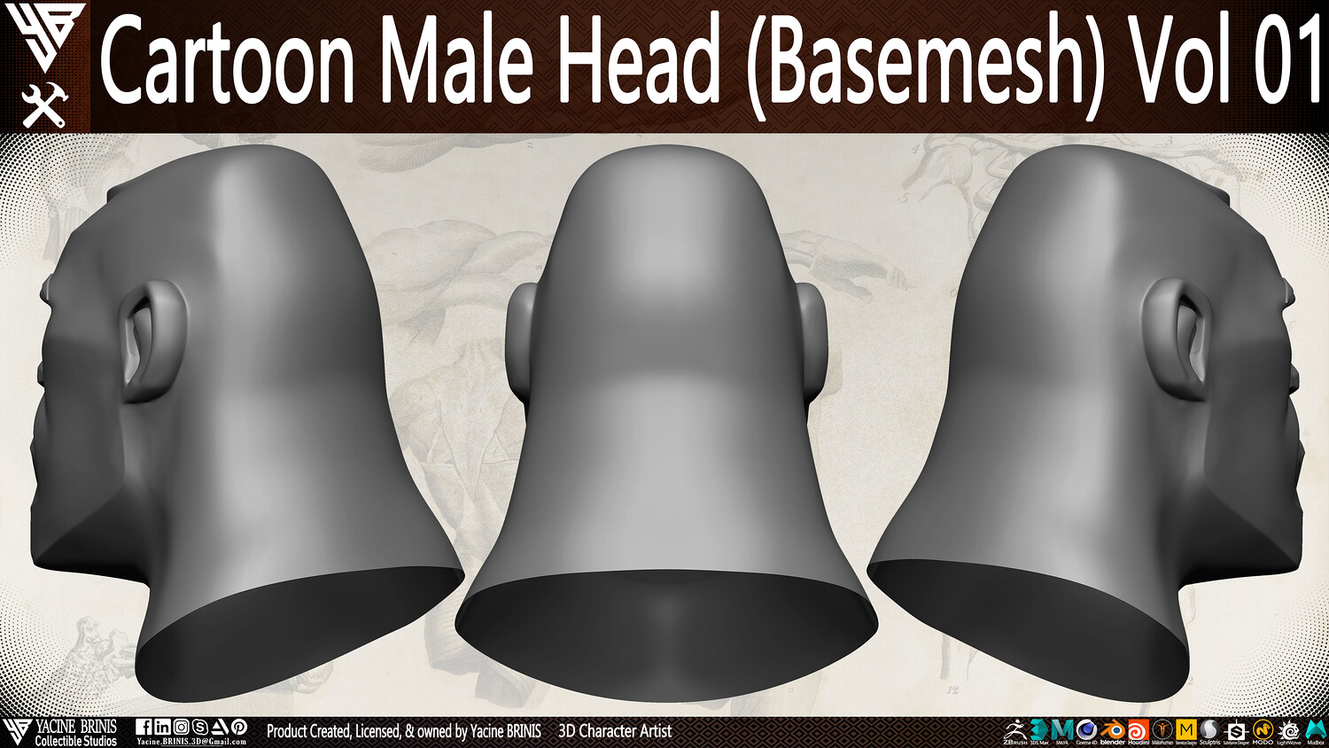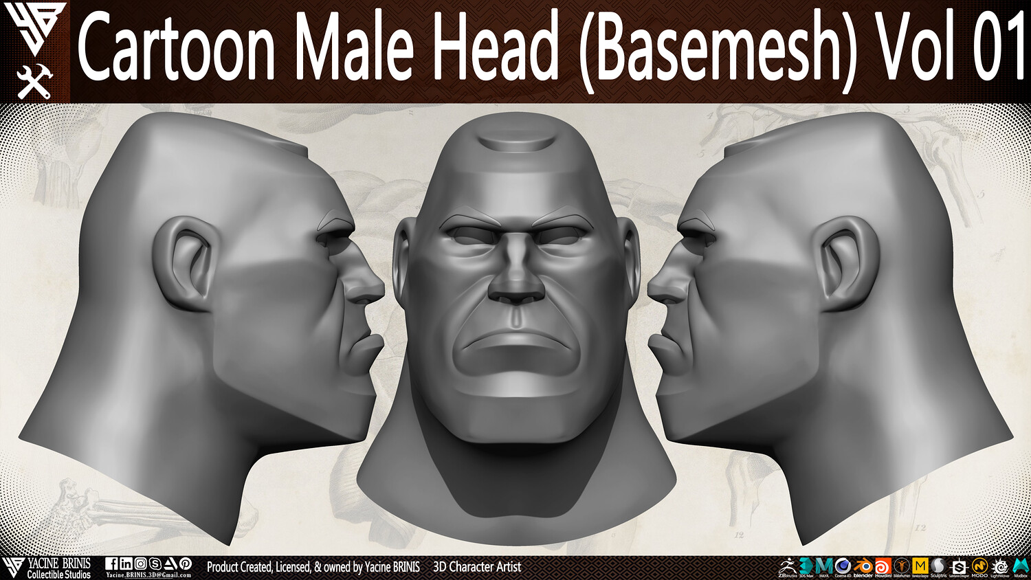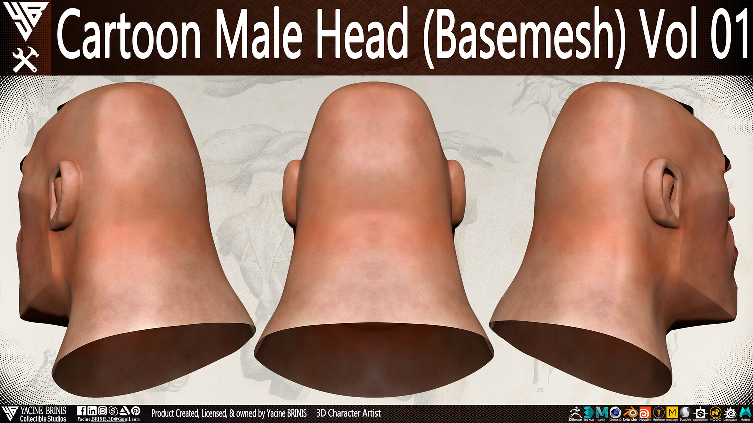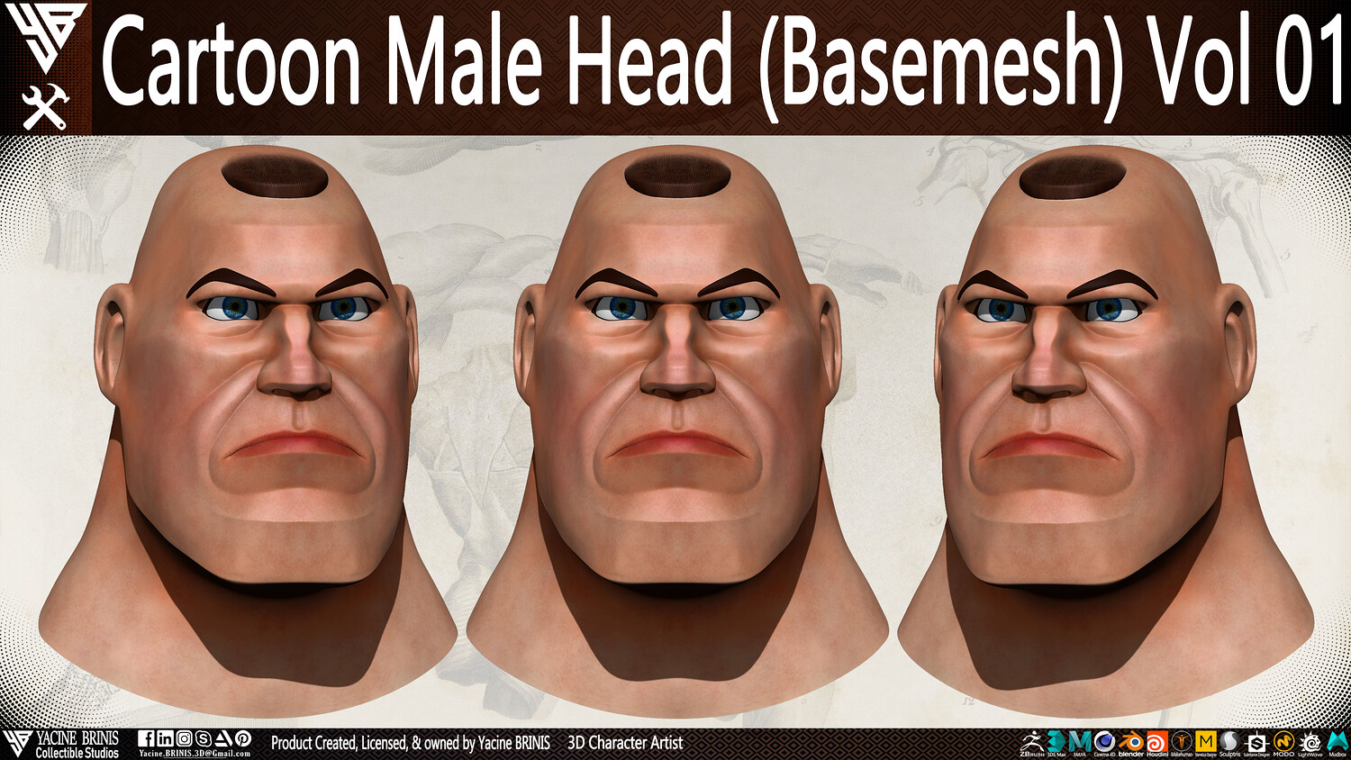 Cartoon Male Head Basemesh 3D Model Volume 01