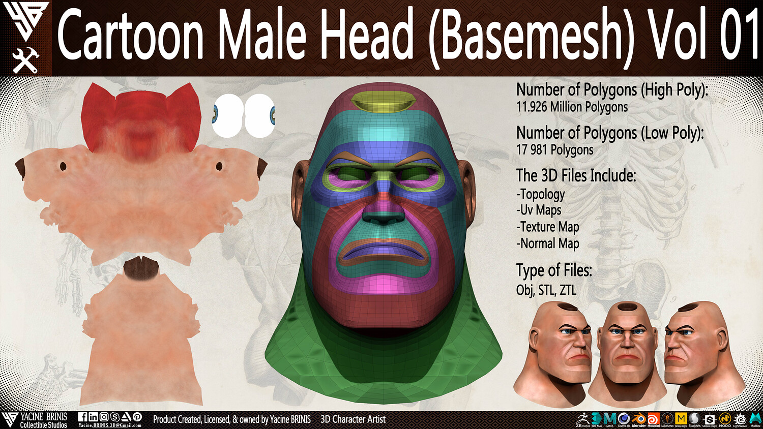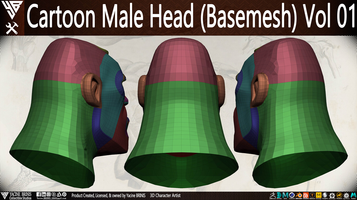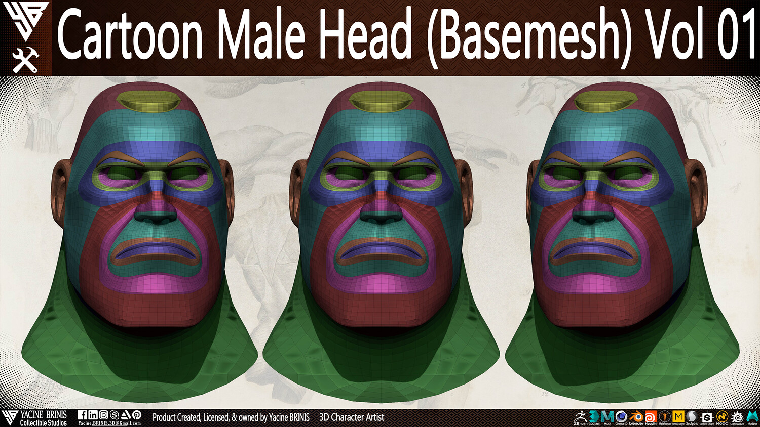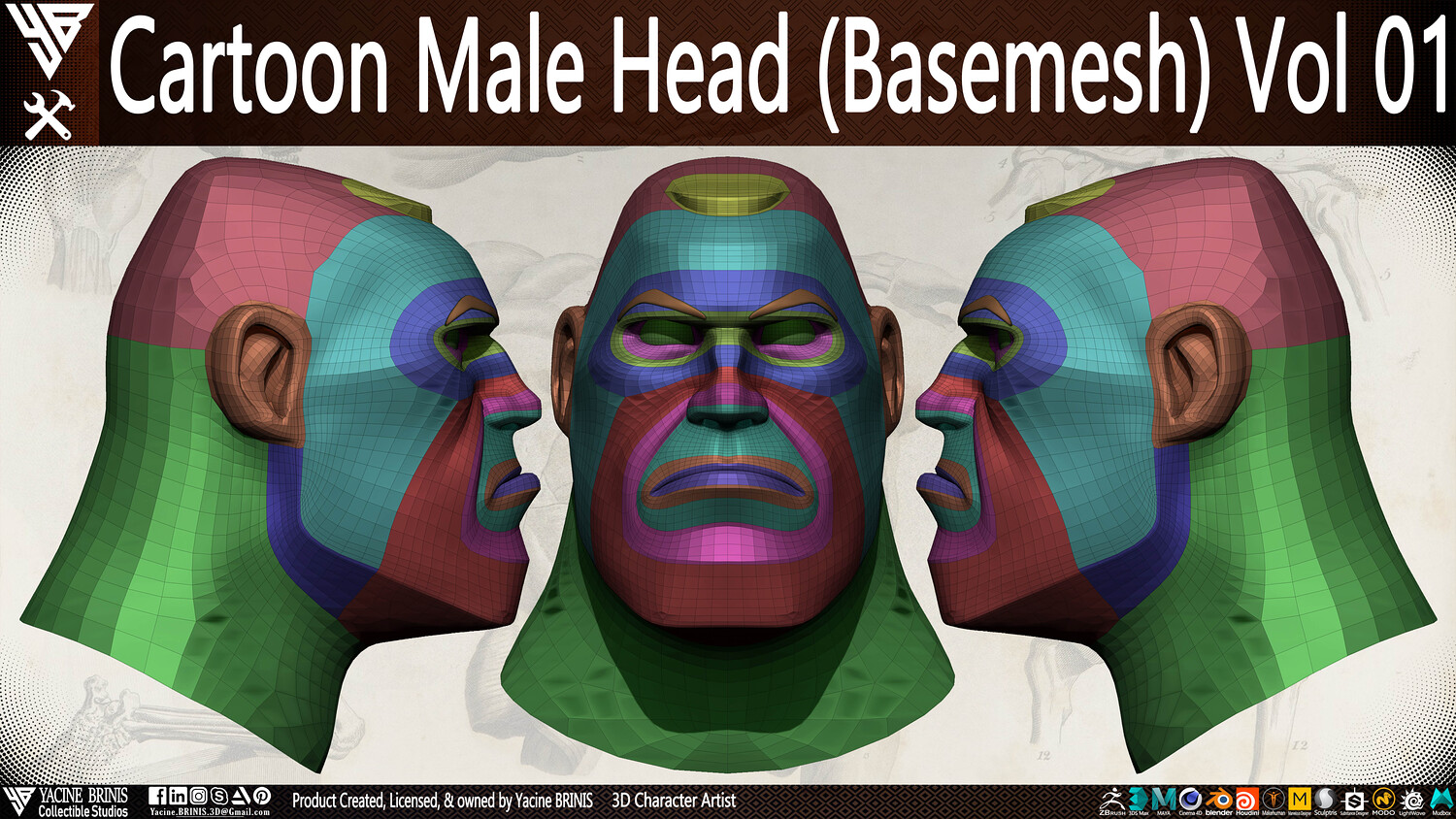 Cartoon Male Head Basemesh 3D Model Volume 01