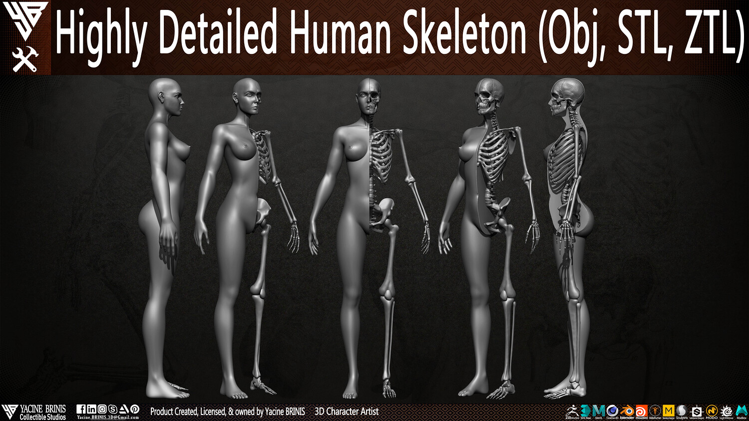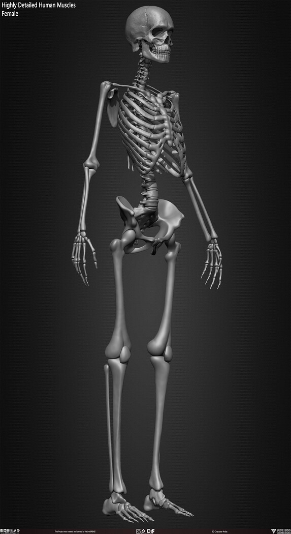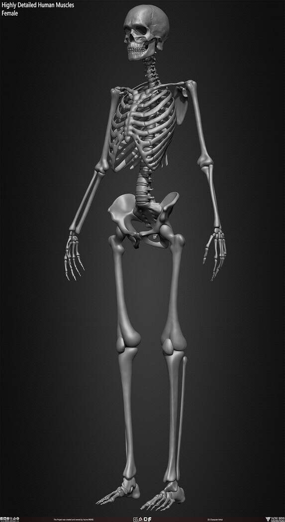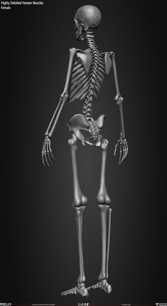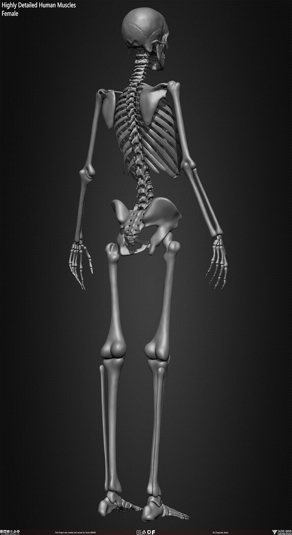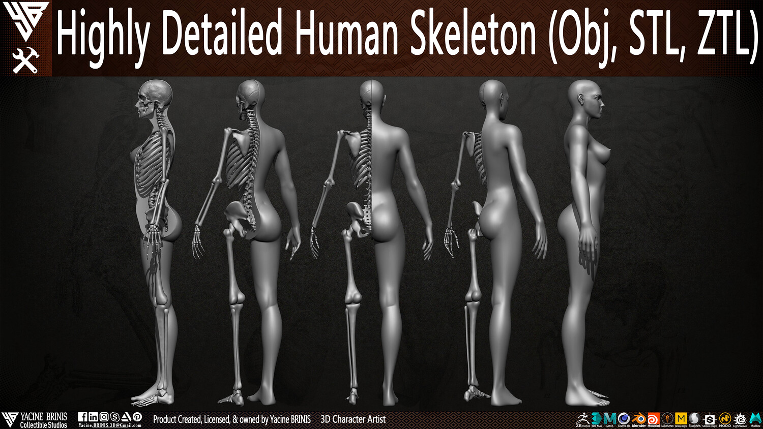 This Highly Detailed Human Skeleton (Female) model offers a scientifically accurate and finely crafted 3D representation of the female skeletal structure. Each bone is modeled with anatomical precision, providing a lifelike foundation ideal for character creation, medical visualization, educational tools, and anatomical studies.