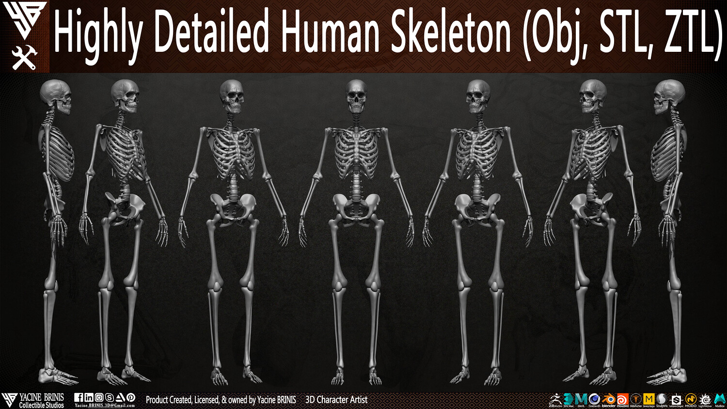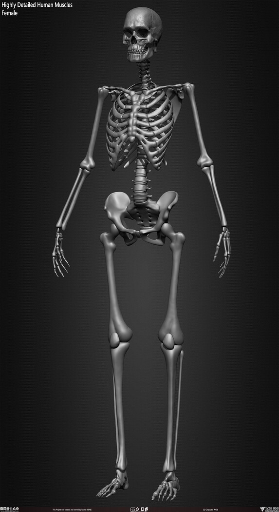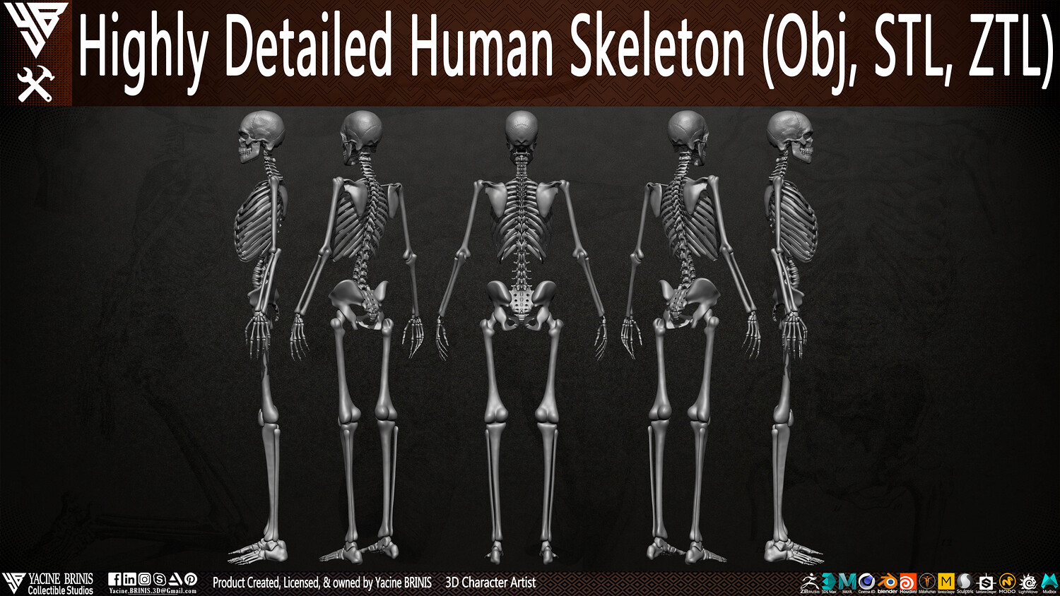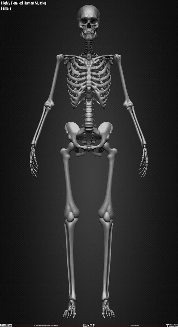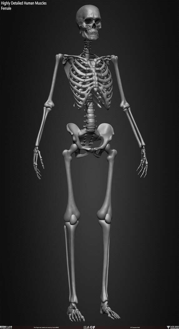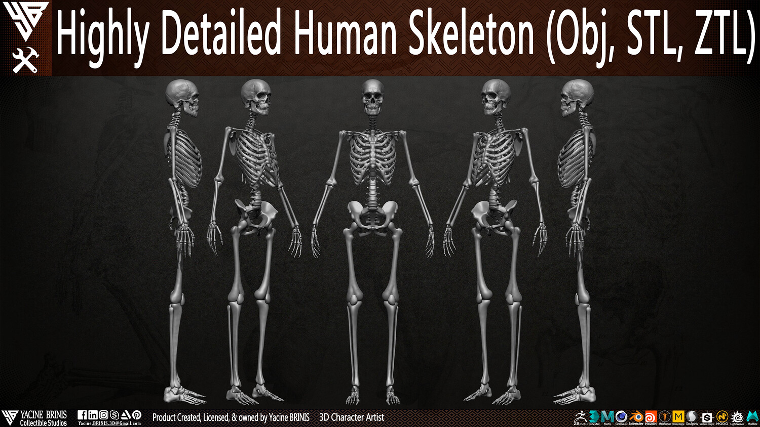 This Highly Detailed Human Skeleton (Female) model offers a scientifically accurate and finely crafted 3D representation of the female skeletal structure. Each bone is modeled with anatomical precision, providing a lifelike foundation ideal for character creation, medical visualization, educational tools, and anatomical studies.