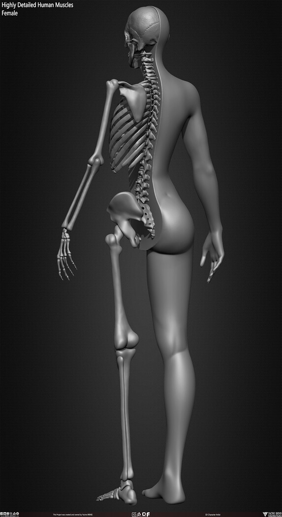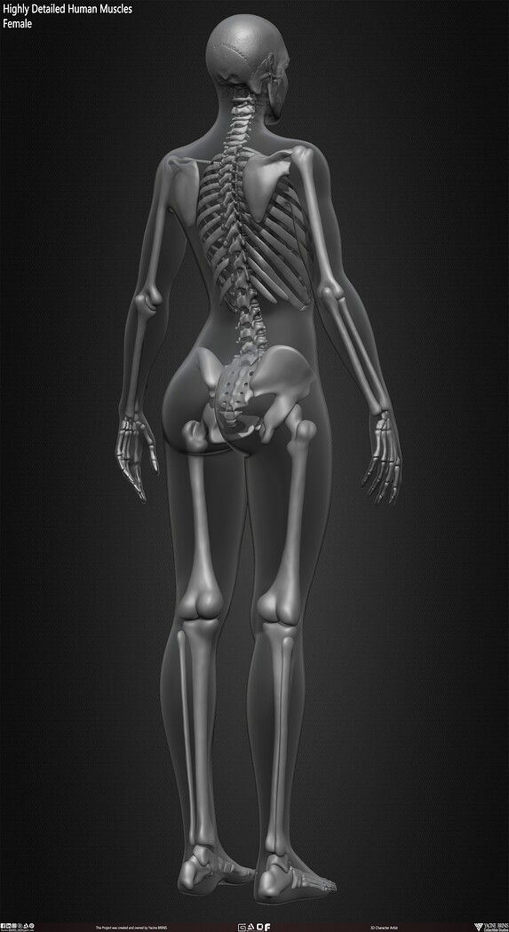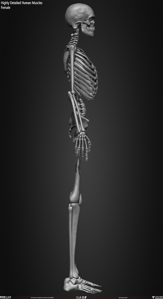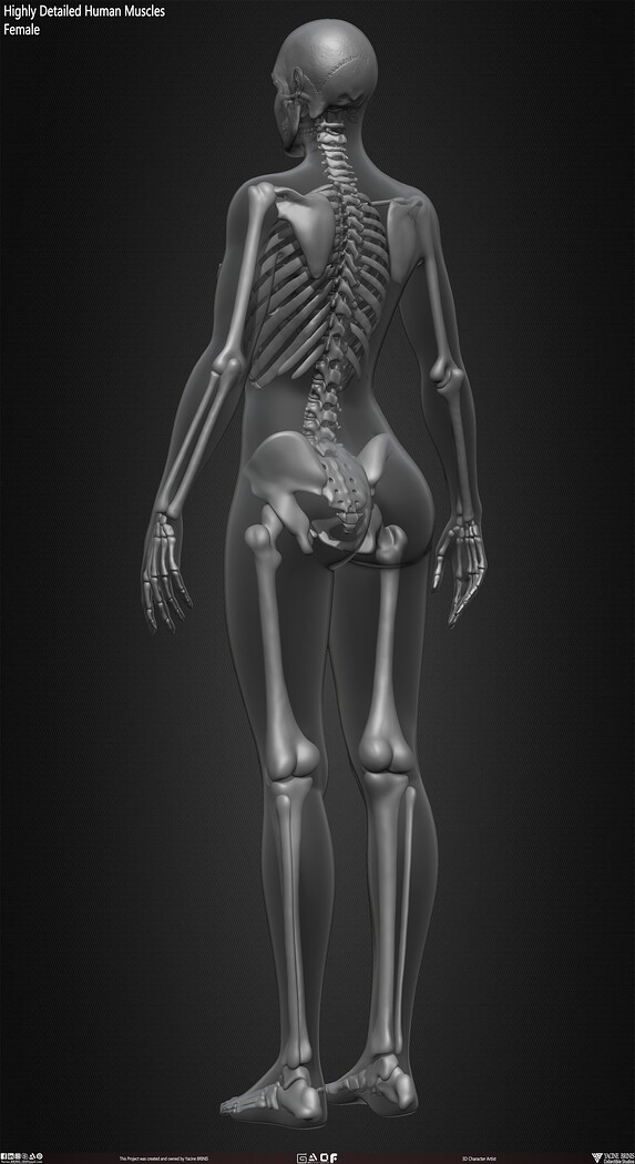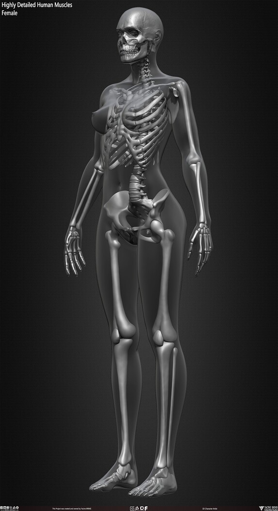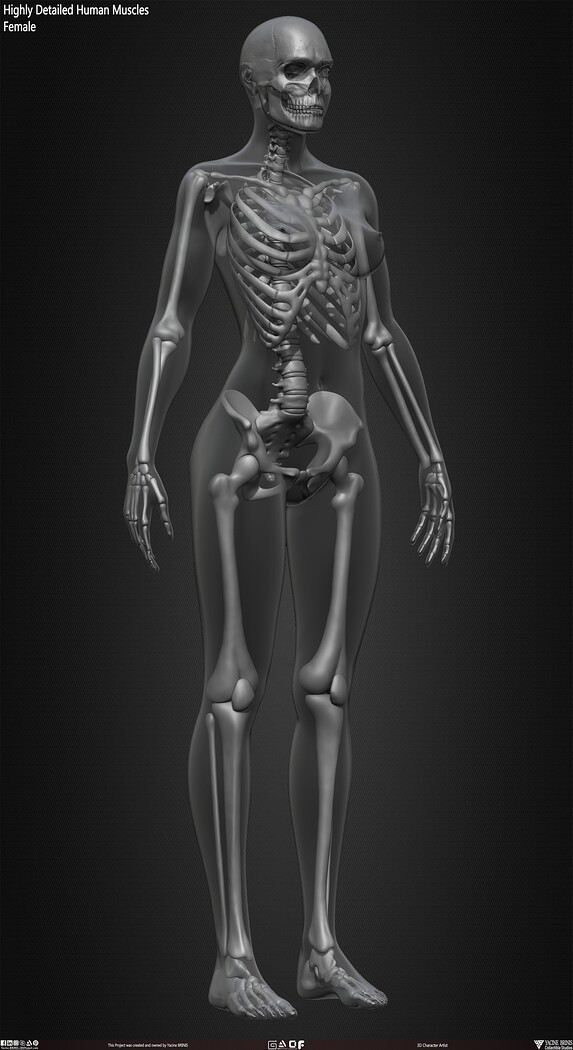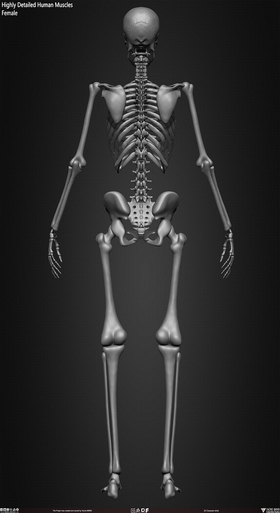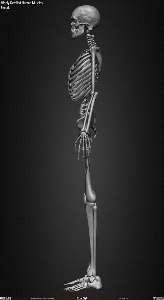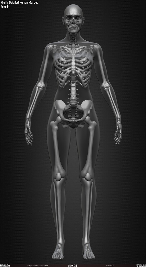 This Highly Detailed Human Skeleton (Female) model offers a scientifically accurate and finely crafted 3D representation of the female skeletal structure. Each bone is modeled with anatomical precision, providing a lifelike foundation ideal for character creation, medical visualization, educational tools, and anatomical studies.