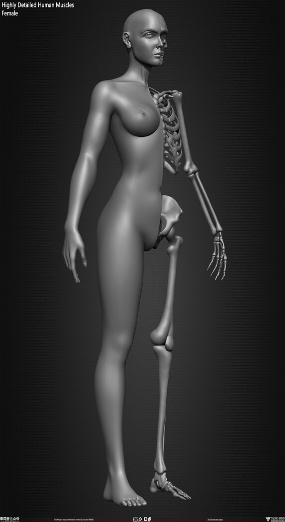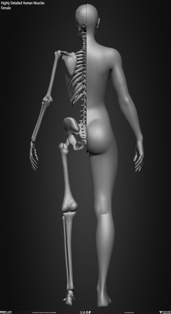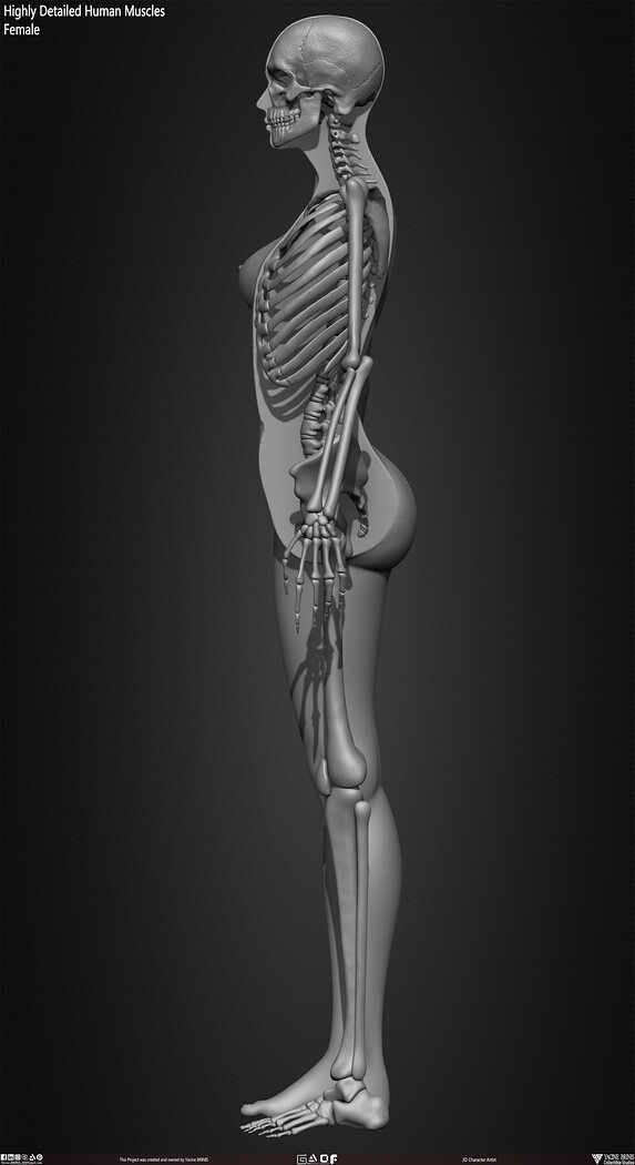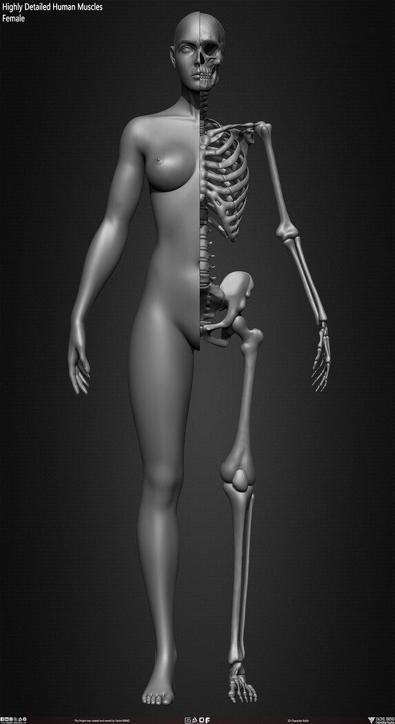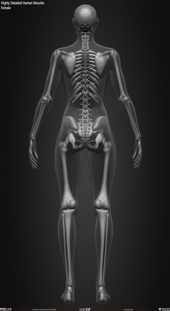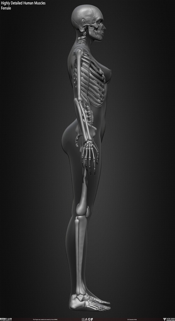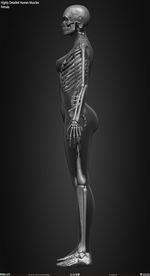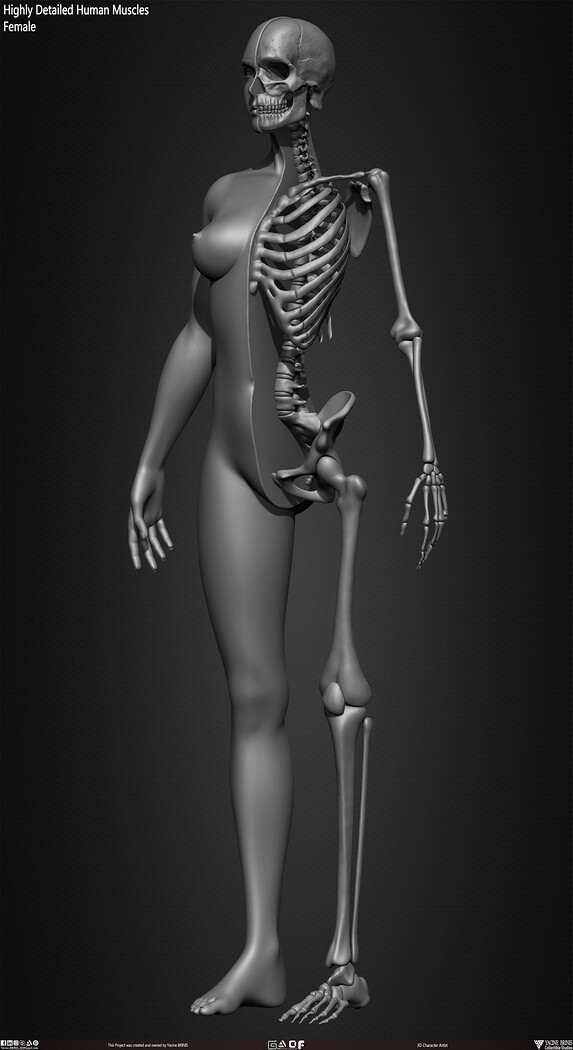 This Highly Detailed Human Skeleton (Female) model offers a scientifically accurate and finely crafted 3D representation of the female skeletal structure. Each bone is modeled with anatomical precision, providing a lifelike foundation ideal for character creation, medical visualization, educational tools, and anatomical studies.