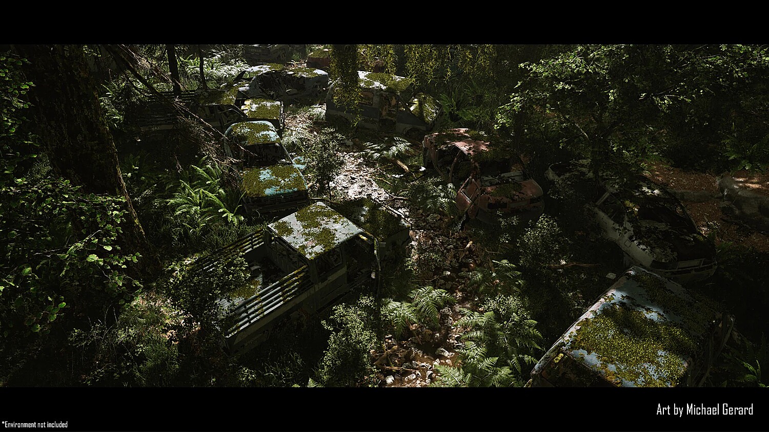 - Foliage and Moss Simulations - Simulations have been run in third-party software and imported into Unreal for realistic coverage. (22 unique foliage meshes and 20 shared foliage meshes per vehicle)