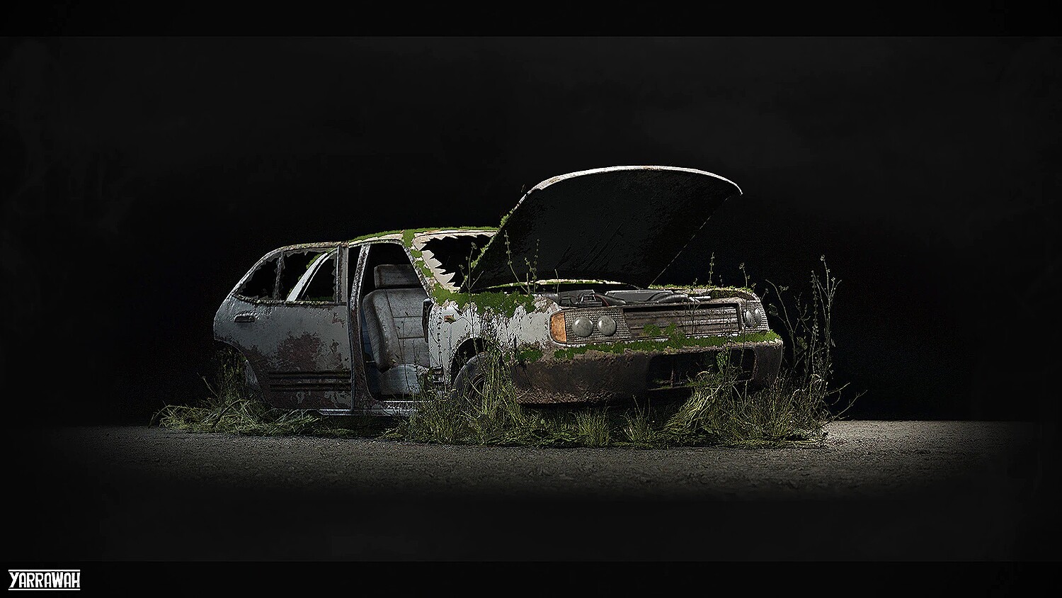 Clean, aged, mossy, and burnt material variations. These variations all come with unique albedo masks allowing for complete control over the vehicle's paint color, without affecting areas of the vehicle that are unpainted/rusted/dirty.