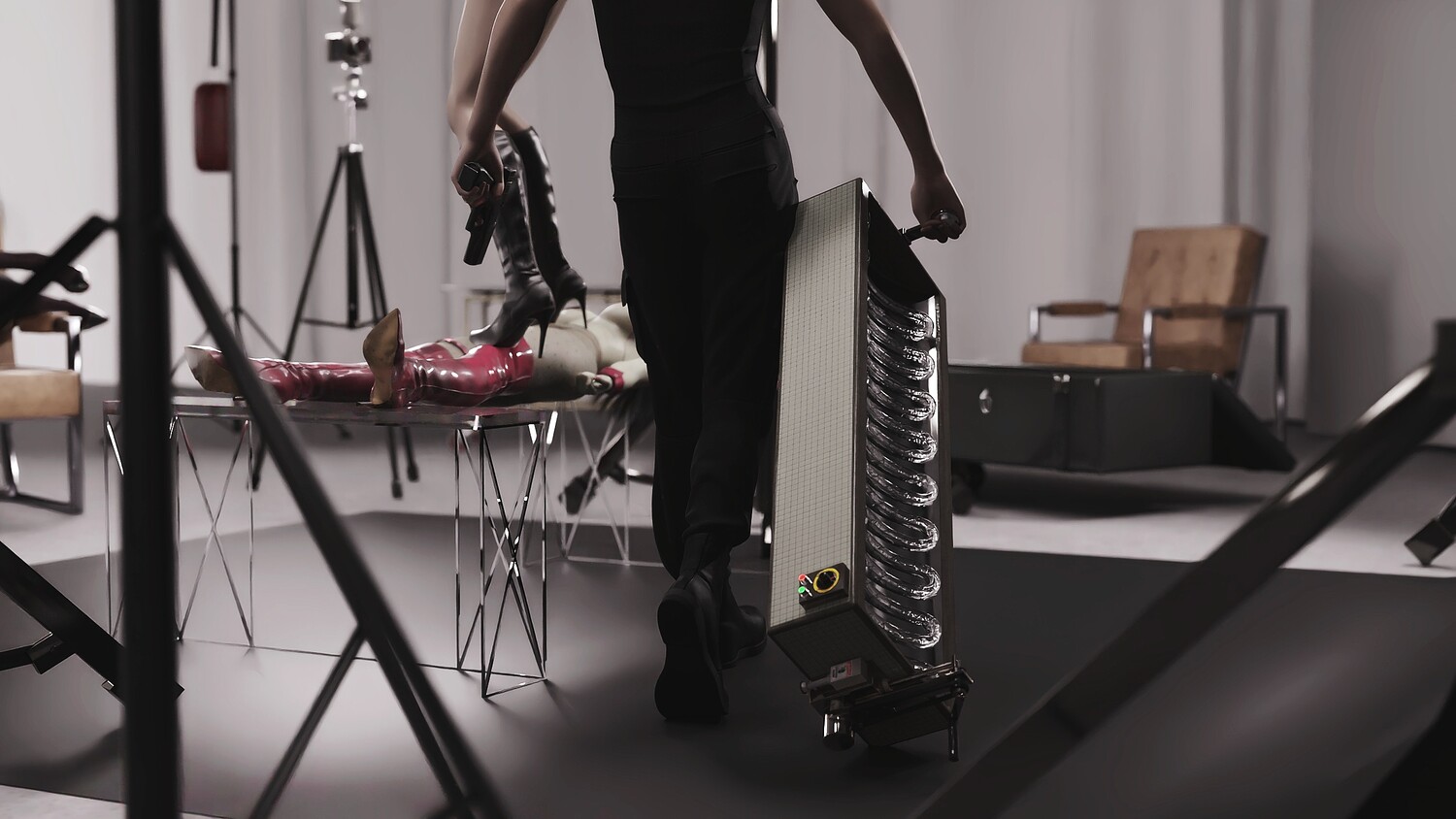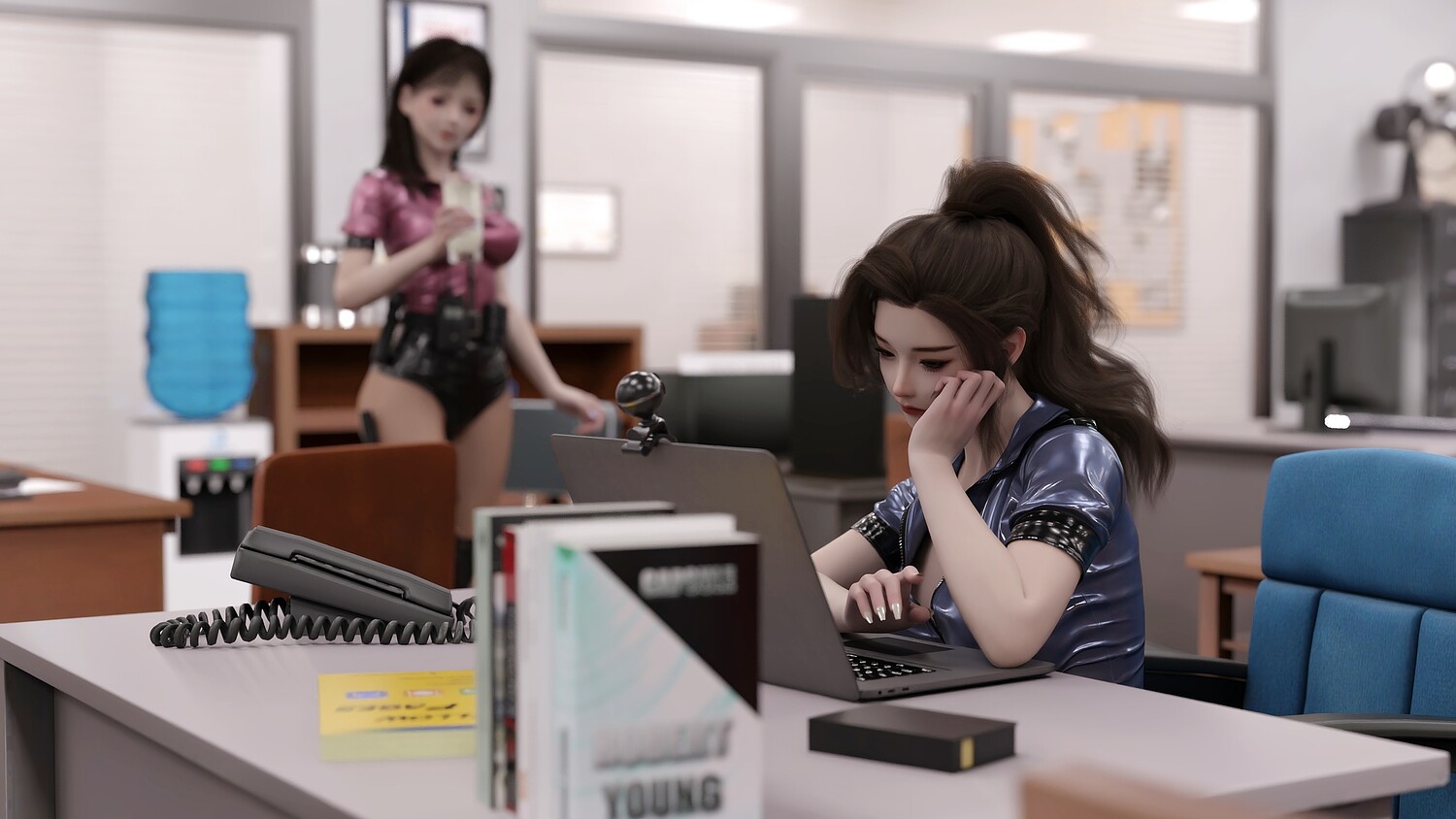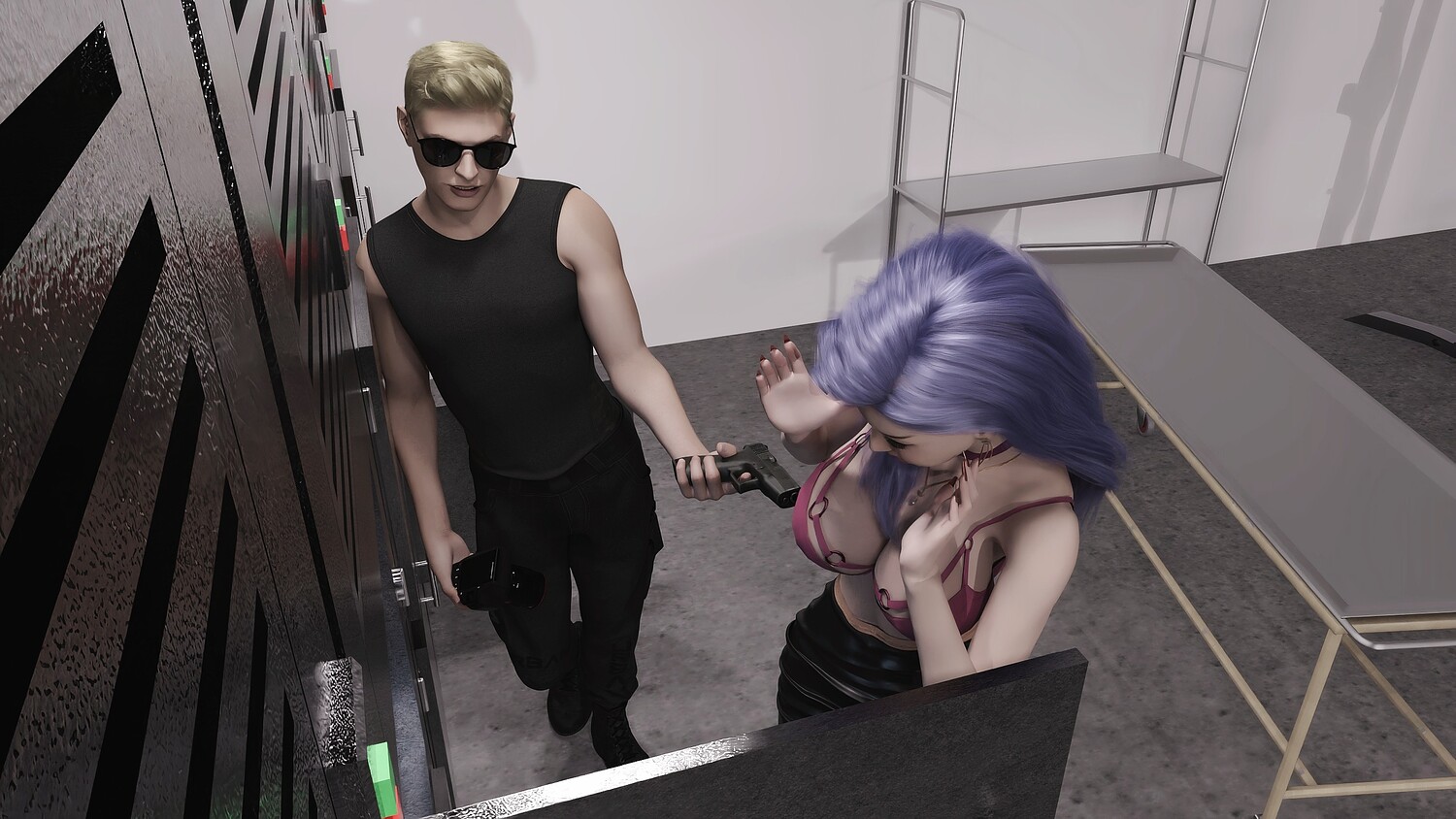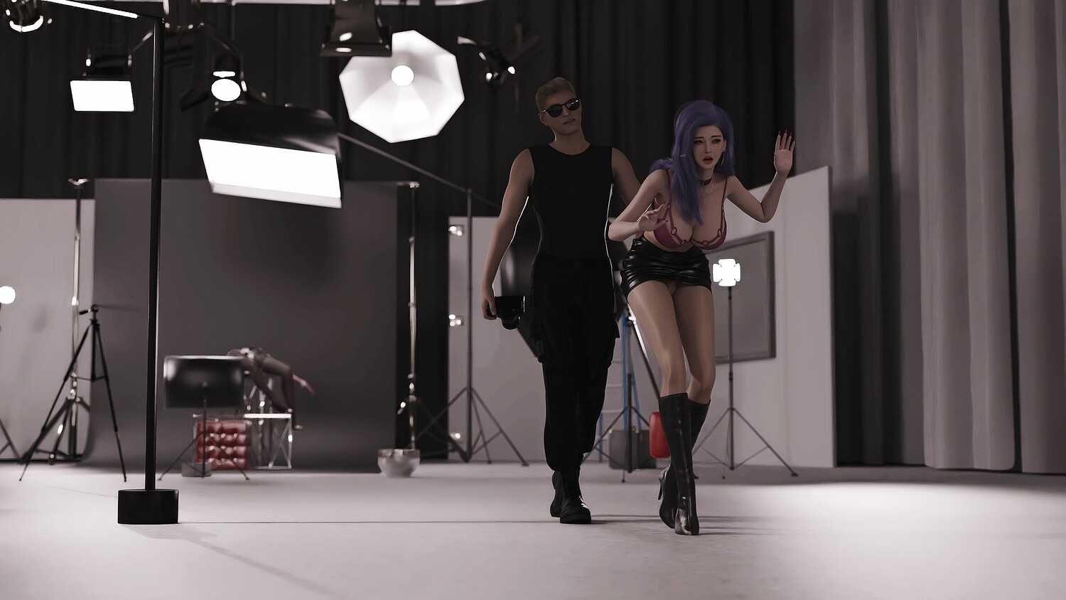 The owner of sunglasses loves photography very much. One day, he brought his beloved policewoman to the studio, and at the same time, he hired a well-known model to shoot with him. Of course, the model noticed something was wrong with her partner, but the owner lied to her that the silicone doll on the table was there, so there was a very interesting shooting experience that followed.