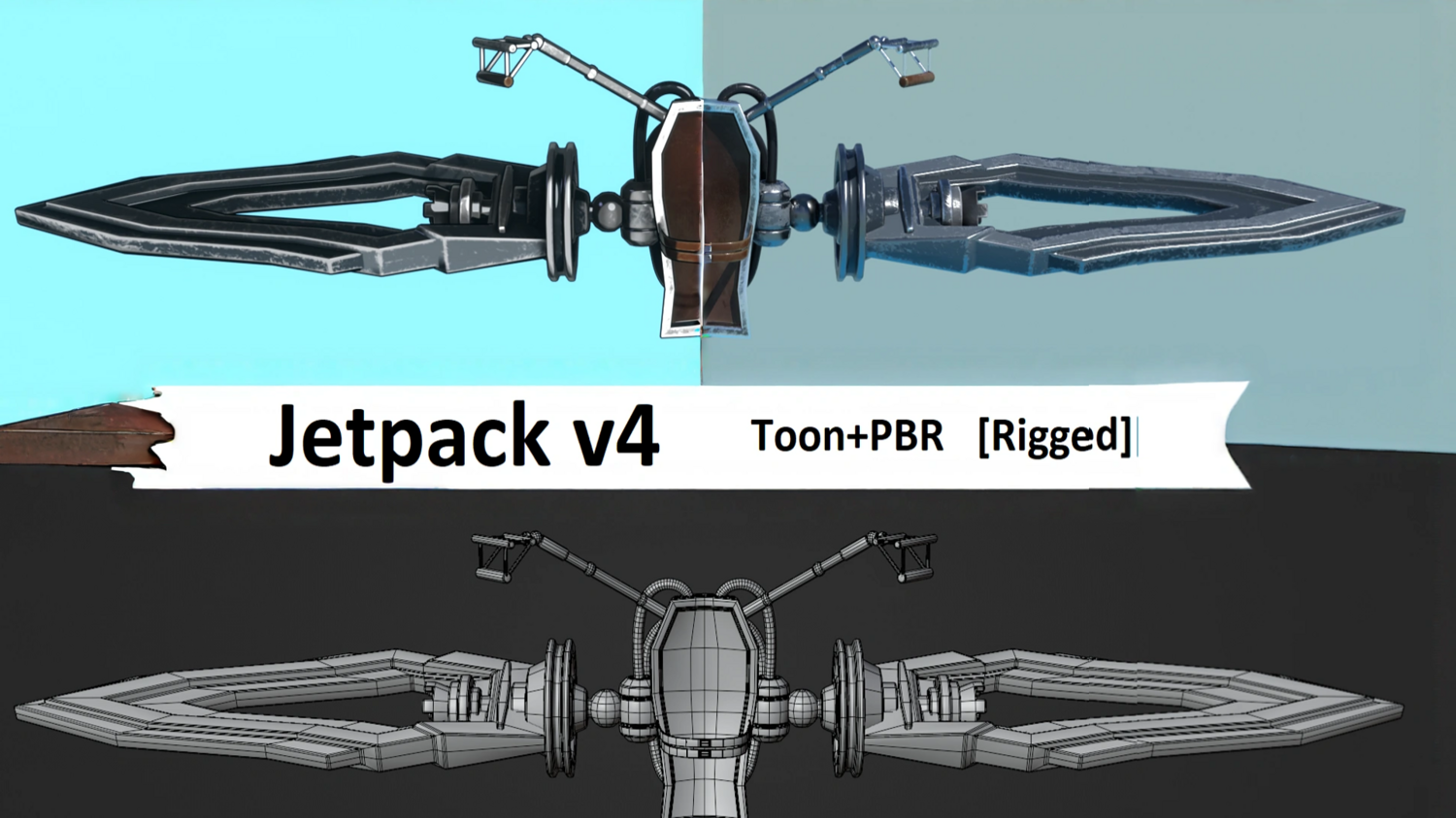This pack delivers modular, drop-in wearables for stylized games and cinematics. Most assets ship with PBR and Toon (LBS + outline) materials, clean UVs, and 1K/2K/4K textures for flexible pipelines. Several items are rigged (jetpacks, wings, robotic arms, umbrella with shape-key animation), and curve/hook setups are used where appropriate for natural motion. Authoring is consistent—modeled in Blender, textured in Substance Painter—with tidy object/material organization so you can quickly retarget, attach, and render.