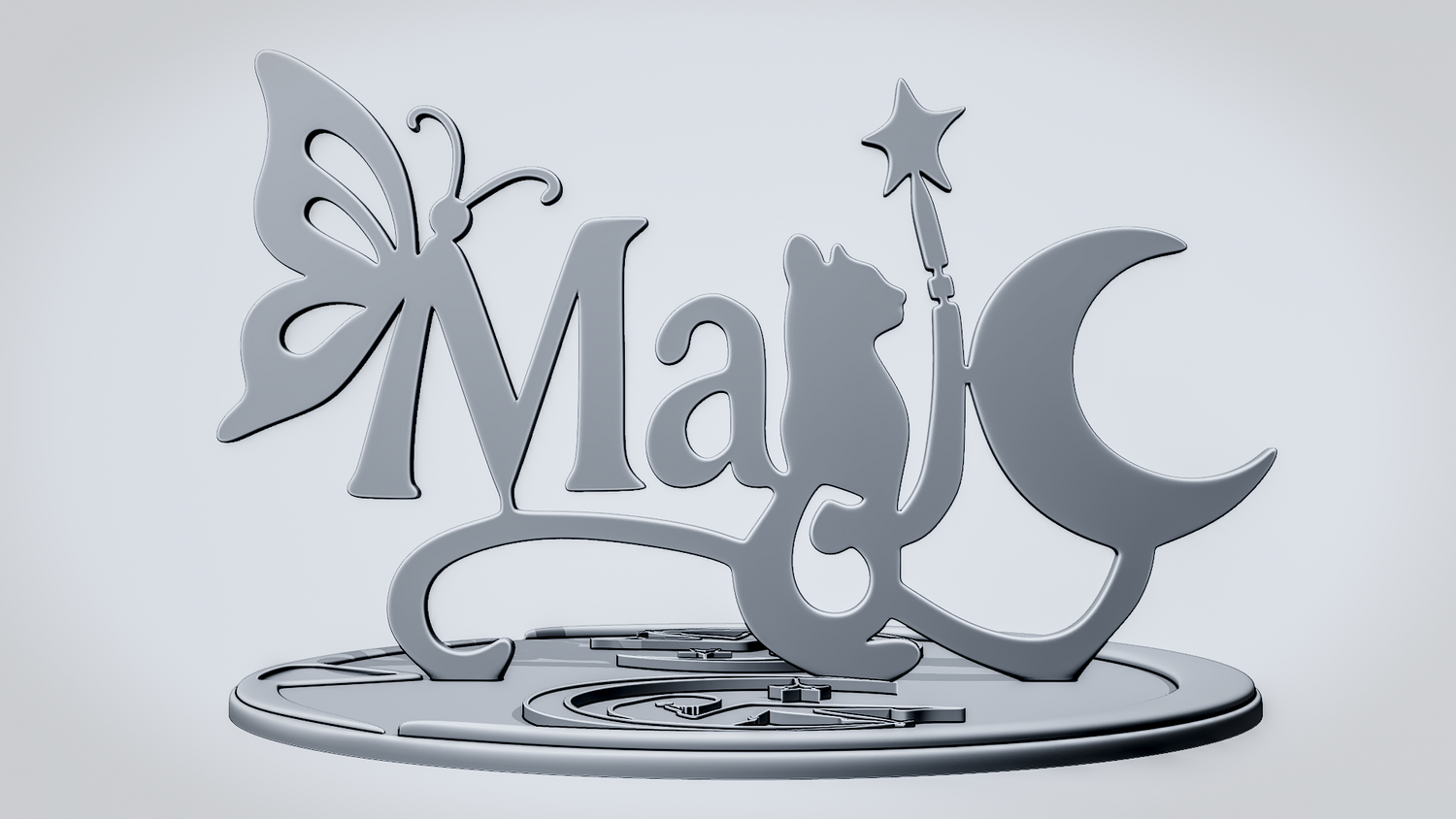 Statue Version: The statue version presents MAGIC as a freestanding display piece on a round decorative base with celestial and cat-themed details that strengthen the enchanted look. It keeps the butterfly, moon, star, and lettering clearly visible while giving the model a polished, display-ready presence for desks, shelves, or themed setups.