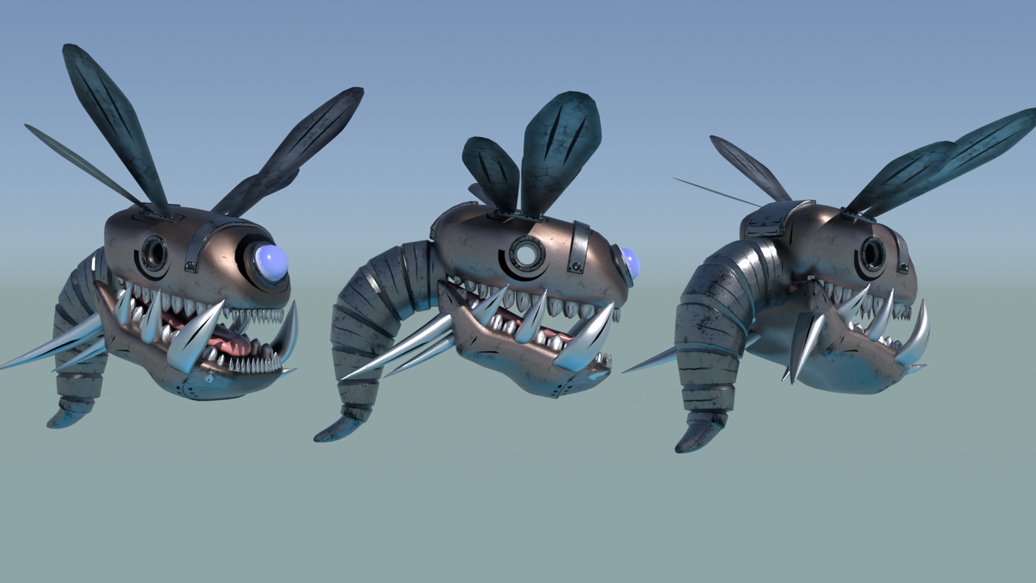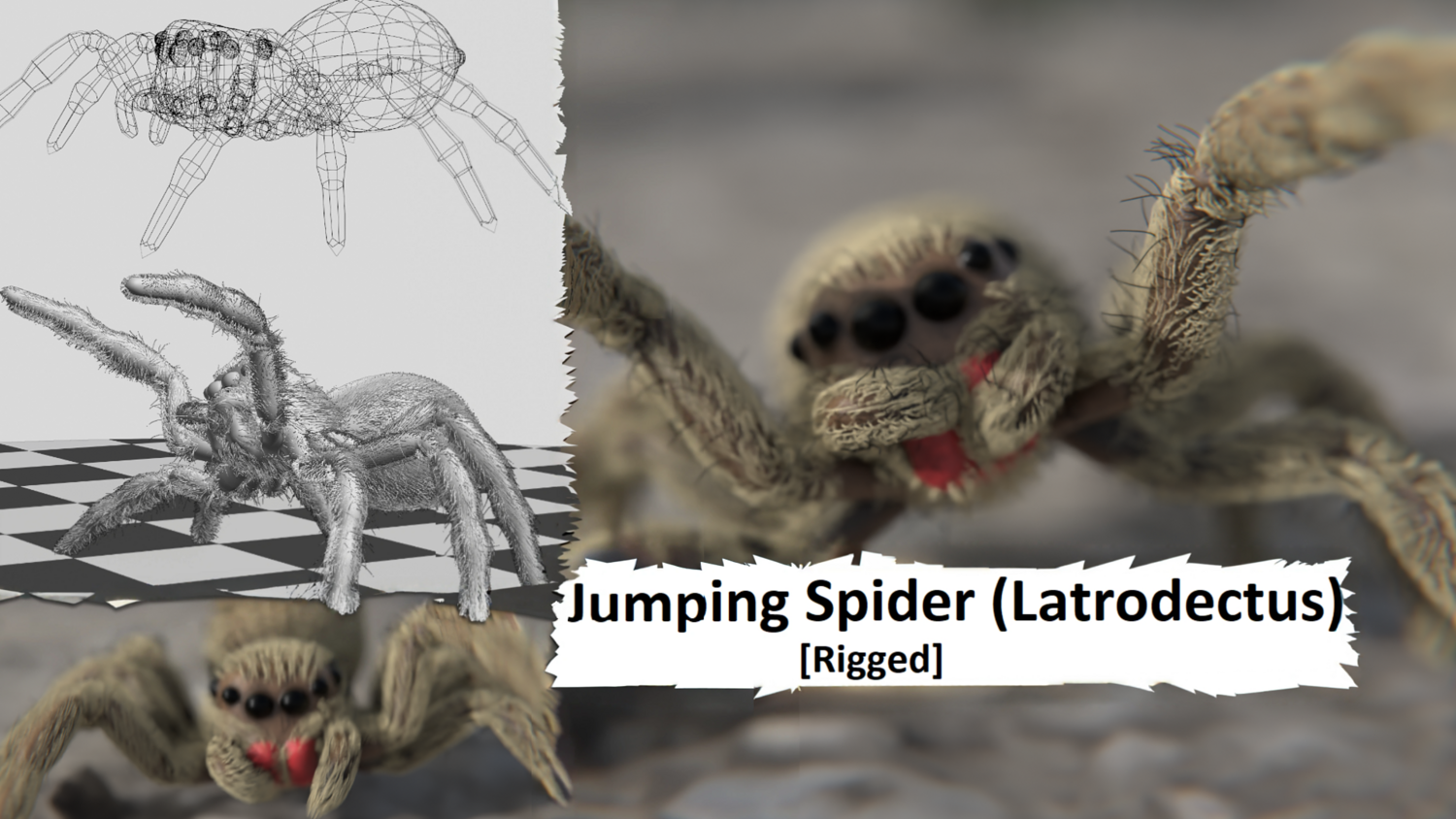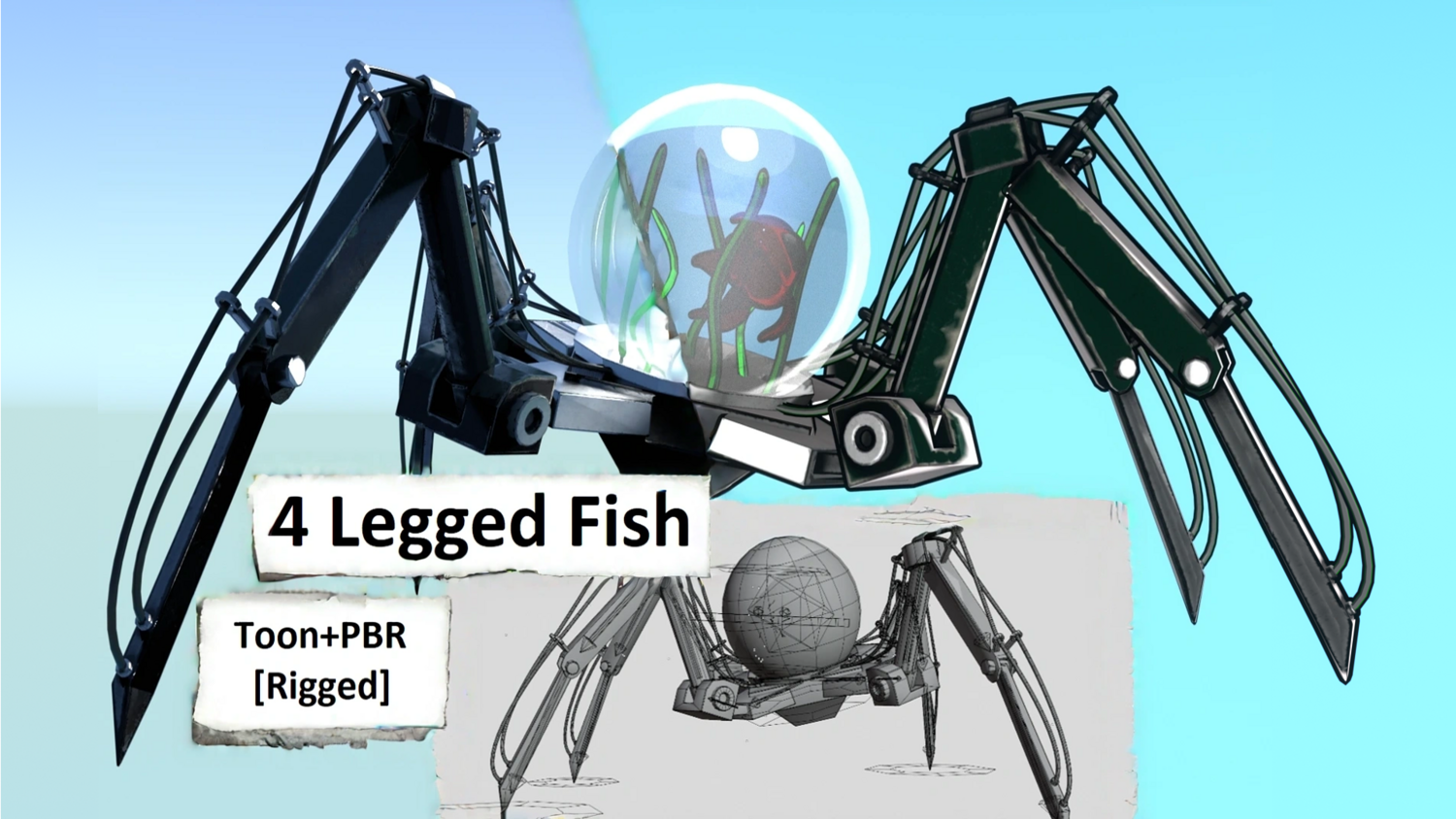 Included Creatures 4-Legged Fish – Mech terrarium walker with a domed tank. Rigged with hooked curves. 1K/2K textures. PBR + Toon. 42 objects, 8 material sets (+1 outline), 2 texture sets. Black Widow (Latrodectus) – Realistic spider with walk cycle. 1K/2K/4K textures. PBR + Toon. 1 object, 1 material set (+1 outline), 1 texture set. Red Fish – Swim Cycle – Stylized fish with looping swim. 1K/2K textures. PBR + Toon. 1 object, 2 material sets (+1 outline), 1 texture set. Jumping Spider (Latrodectus) – Hairy spider, rigged & animated with hair simulation in the .blend. 1K/2K/4K textures. 2 objects, 1 material set, 1 texture set. Mecha Bug/Fly – Aggressive mech-insect with large mandibles. Rigged & animated. 1K/2K/4K. PBR + Toon. 9 objects, 1 material set (+1 outline), 1 texture set. Mecha Millipede – Segment-based sci-fi crawler, rigged & animated. 1K/2K/4K. PBR + Toon. 7 objects, 1 material set (+1 outline), 1 texture set. Mecha Snail – Armored shell with stylized head/eye. Rigged & animated. 2K/4K textures. PBR + Toon. 3 objects, 1 material set (+1 outline), 1 texture set. Mecha Spider Scorpion – Hybrid with stinger tail and multi-leg mech rig. Rigged & animated. 1K/2K/4K. PBR + Toon. 6 objects, 1 material set (+1 outline), 1 texture set. Rigged Eye in a Jar – Eyeball with optic-nerve bone chain in sealed liquid jar. 4K PBR textures (color/roughness/normal etc.). Separate objects for jar, liquid, eyeball, nerve. Cthulhu Monster – Complex curve/armature rig; giant tentacles and 20 eyes. Toon shader look. .blend / .obj provided.
