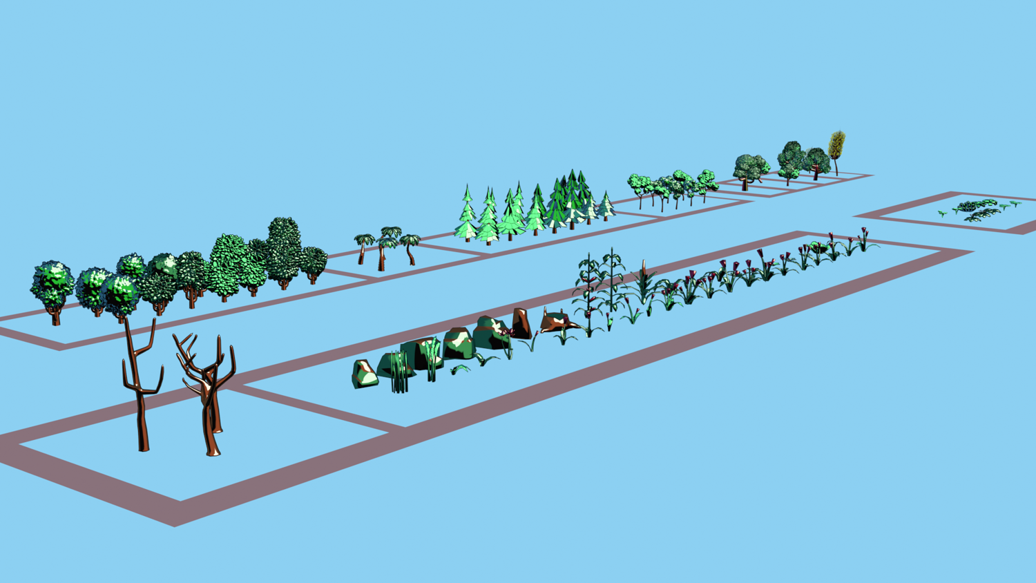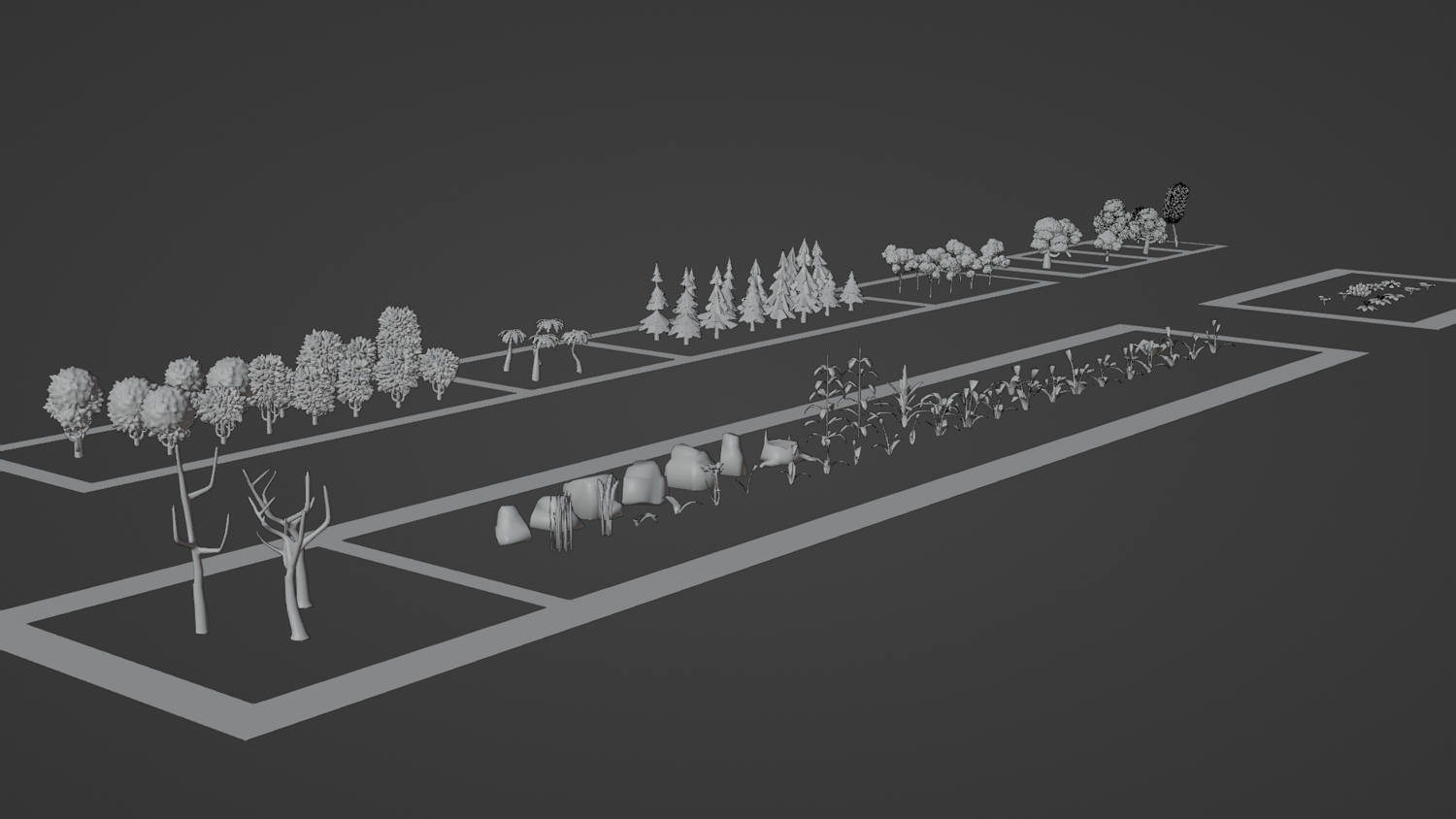 Bonus — Multi 3D Asset Pack Geometry Node materials and rock generator Tech build set (89 objects) + Toon shader variation Sci-Fi space ships (5 objects) + Toon shader variation Trees & plants (102 assets) including GeoNodes foliage