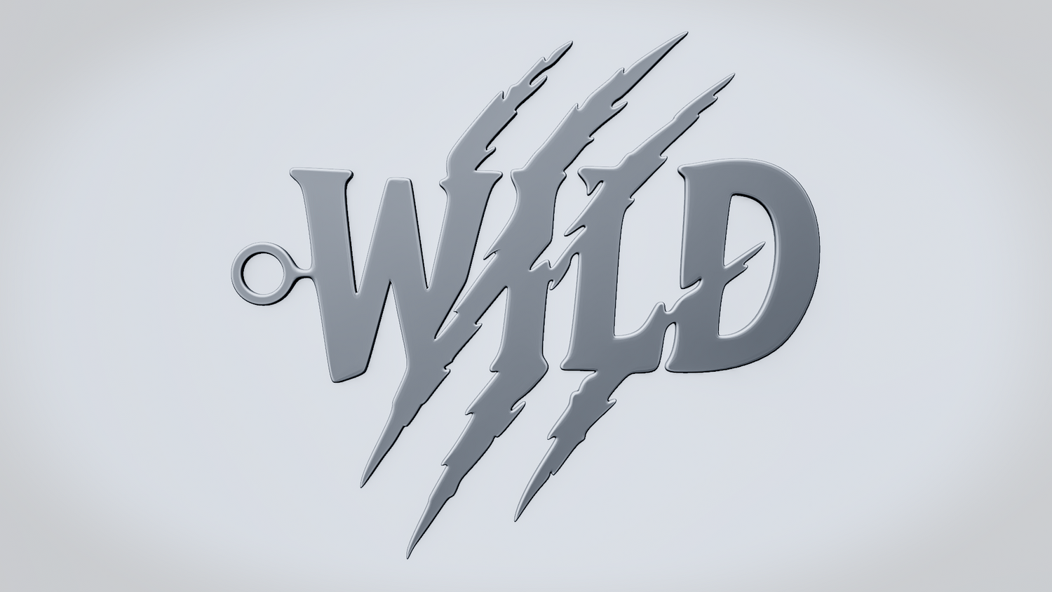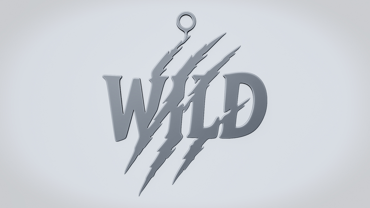 A solid 3D printable design featuring the word WILD in a bold, aggressive style, crossed by sharp claw-mark slashes that give it a fierce and untamed look. The overall shape is strong, readable, and visually striking, making it work well both as an accessory piece and as a decorative printed model.