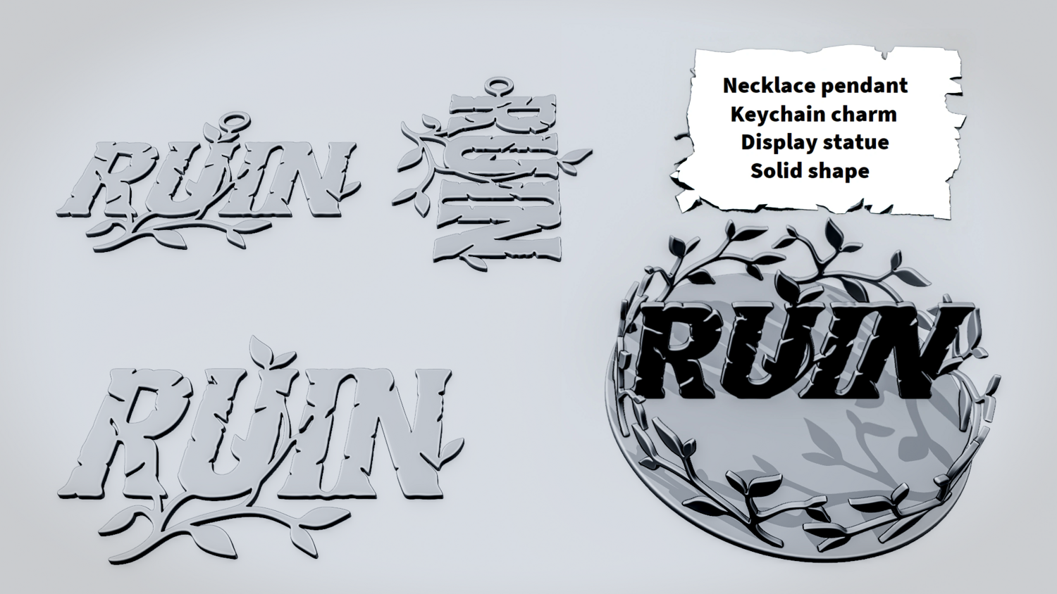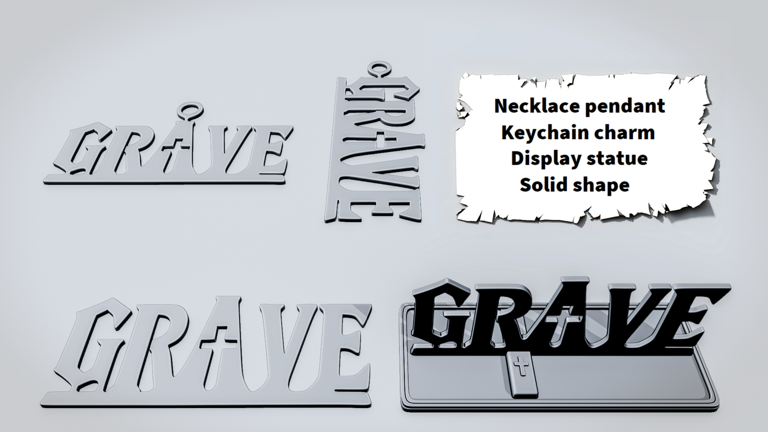 Statue Versions: Each word sign also includes a freestanding statue version designed for display on desks, shelves, workspaces, or themed setups. These versions keep the same recognizable silhouettes as the accessory models while adding a stronger decorative presence through stable base compositions and dark themed visual details.