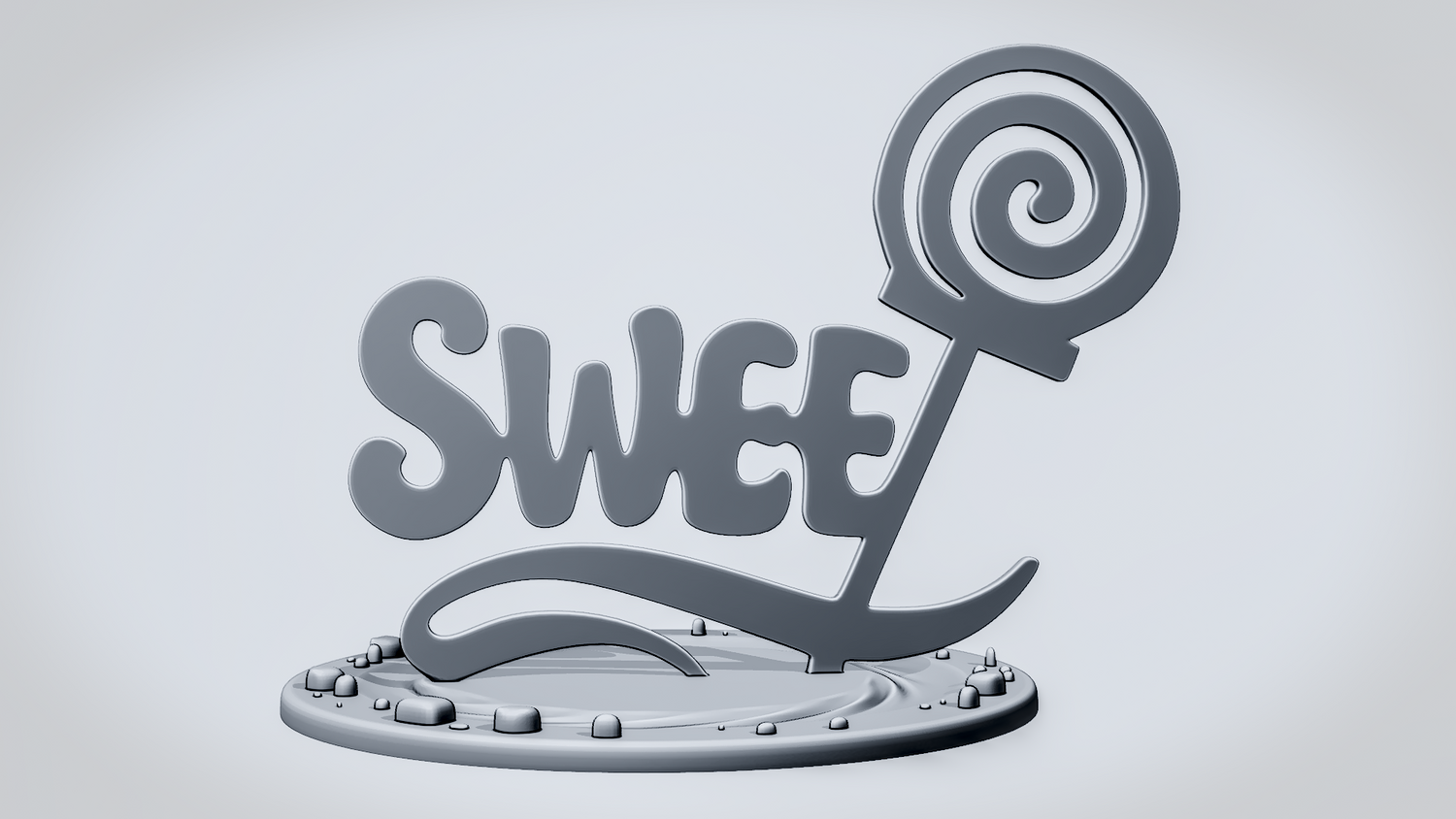 Statue Version: The statue version presents SWEET as a freestanding display piece on a round decorative base with small candy-like details that reinforce the sugary theme. It keeps the bold lettering and spiral lollipop accent clearly visible while giving the model a polished, display-ready presence for desks, shelves, or gift-themed décor.