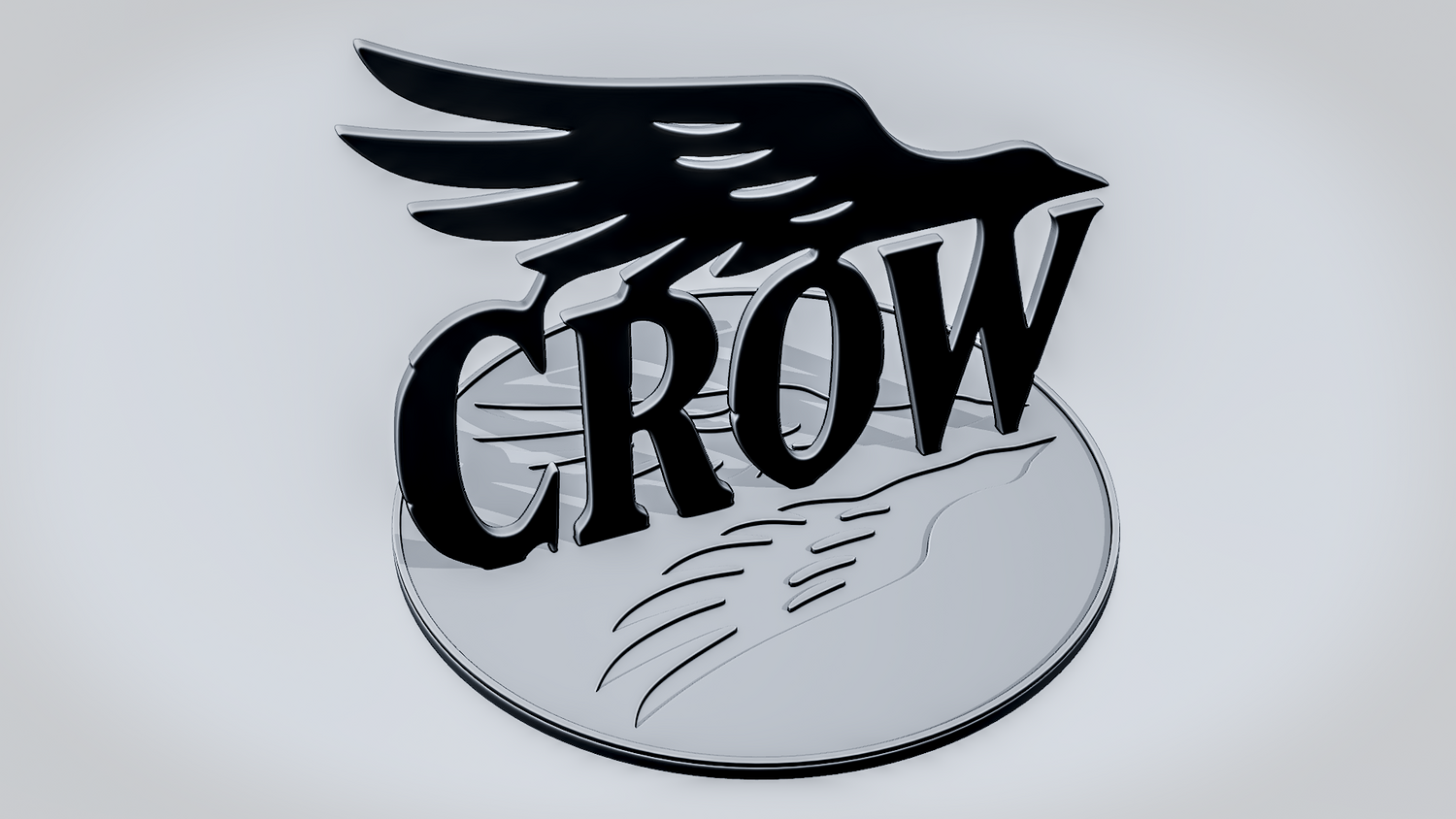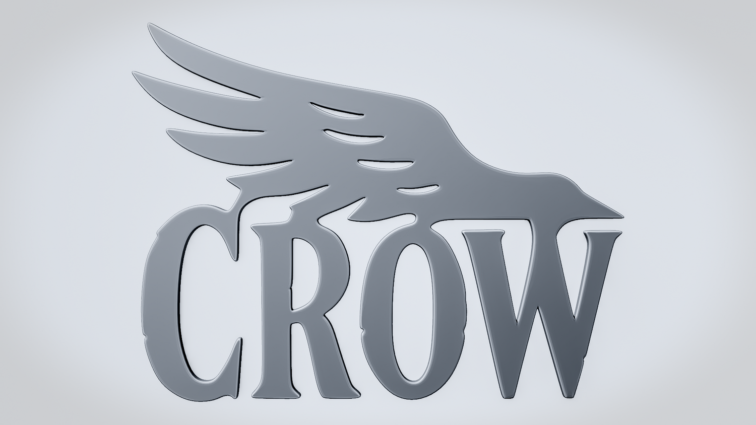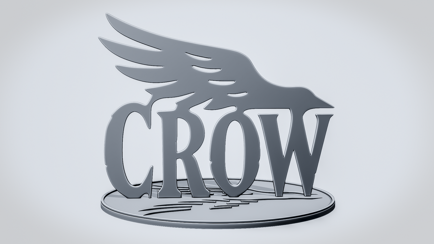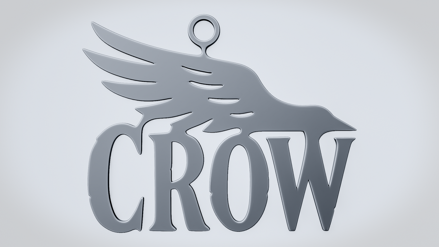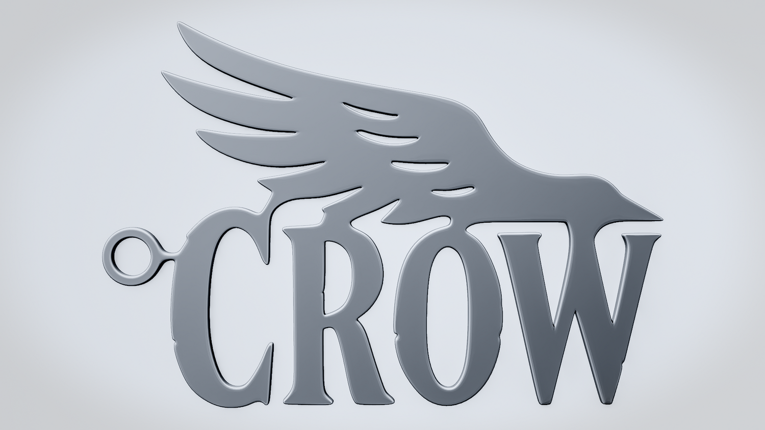 A solid 3D printable design featuring the word CROW in a bold serif style, paired with a large crow silhouette that stretches above the lettering. The overall shape gives the model a strong, dark, bird-inspired character while keeping it clean, readable, and visually balanced.