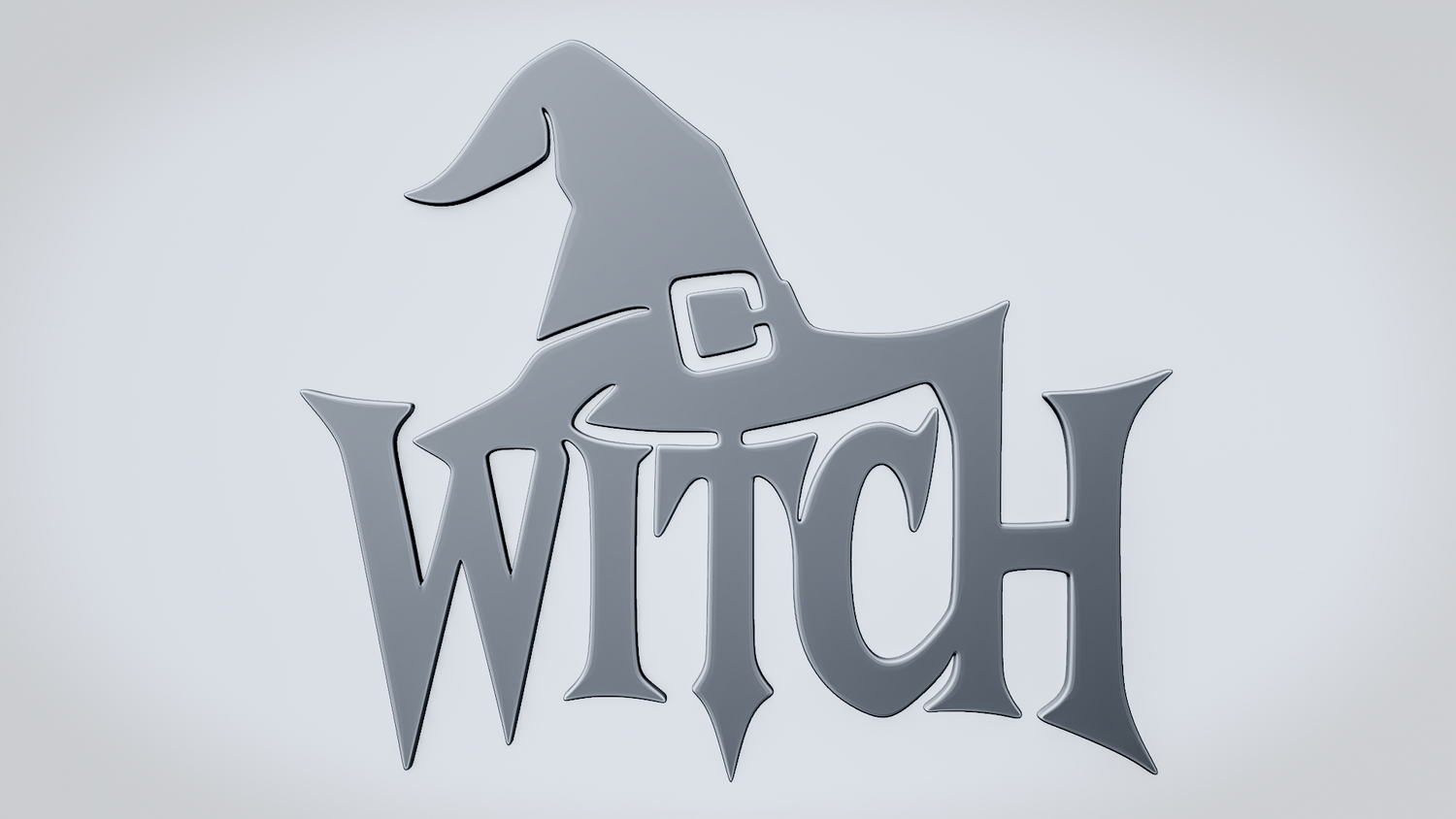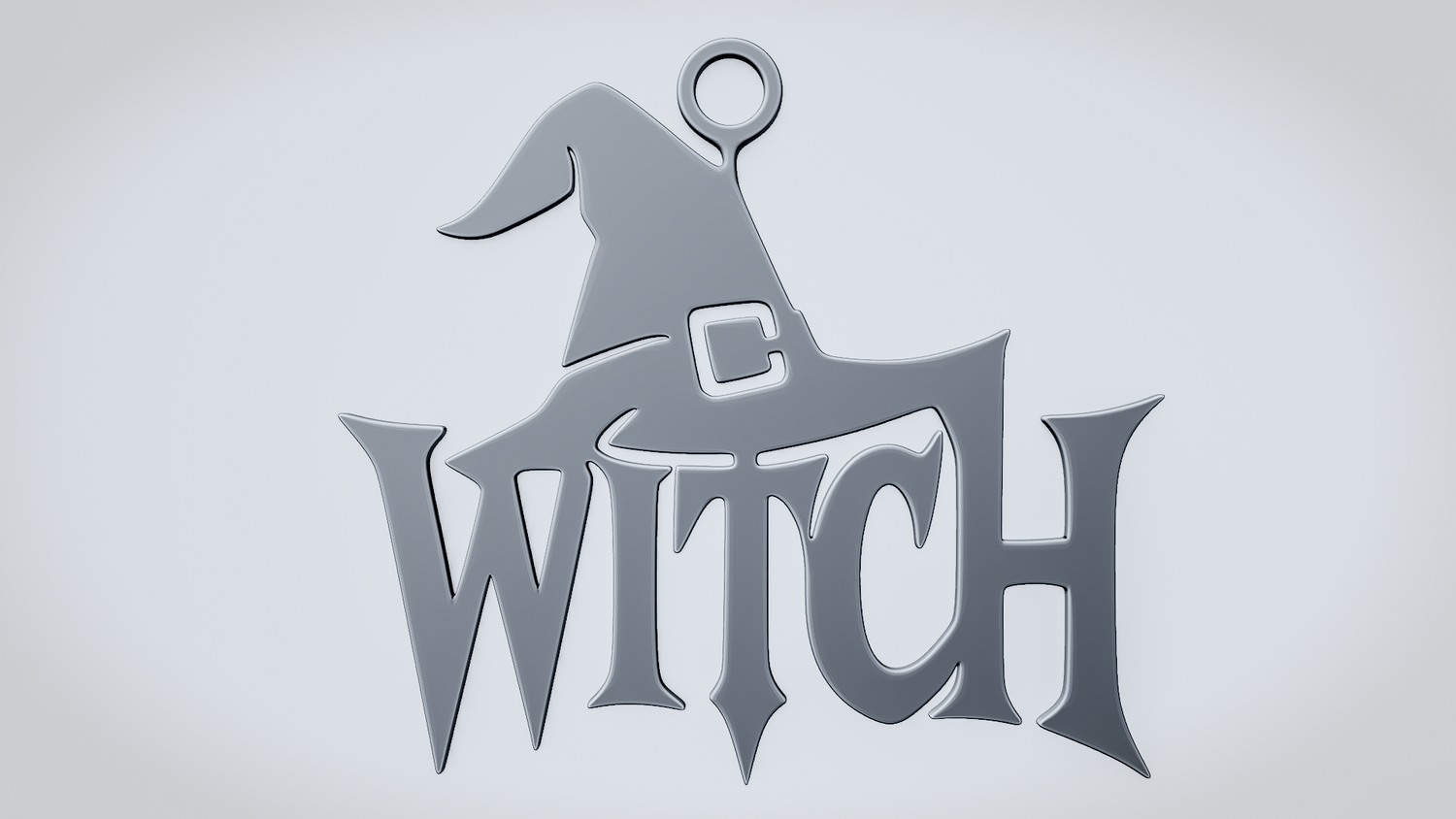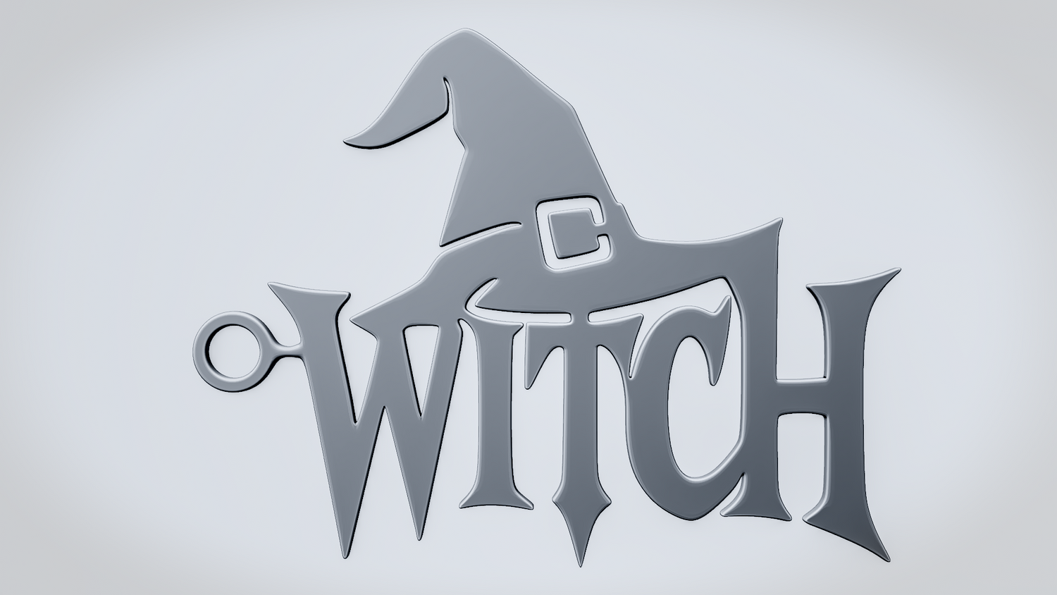 A solid 3D printable design featuring the word WITCH in a sharp gothic-inspired style, combined with a classic pointed witch hat integrated above the lettering. The overall shape feels mystical, bold, and visually balanced while keeping the word readable and the model sturdy.