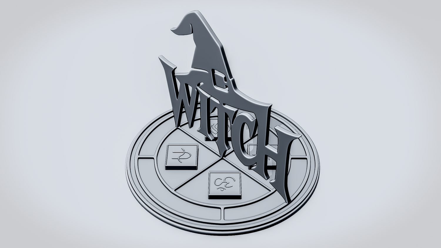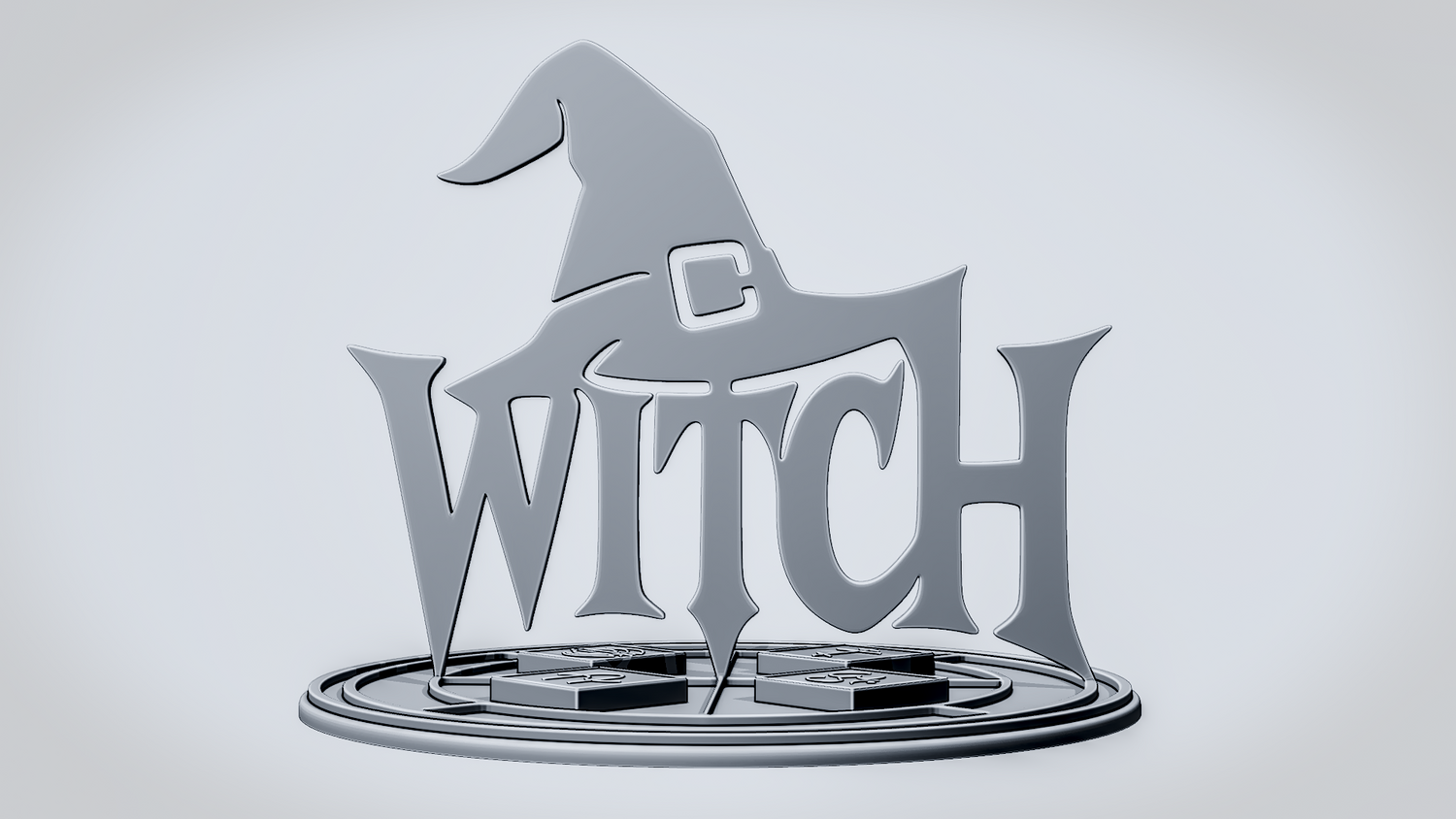 Statue Version: The statue version presents WITCH as a freestanding display piece on a round decorative base with arcane-style panel details that strengthen the magical theme. It keeps the hat silhouette and lettering clearly visible while giving the model a polished, display-ready presence for desks, shelves, or themed setups.