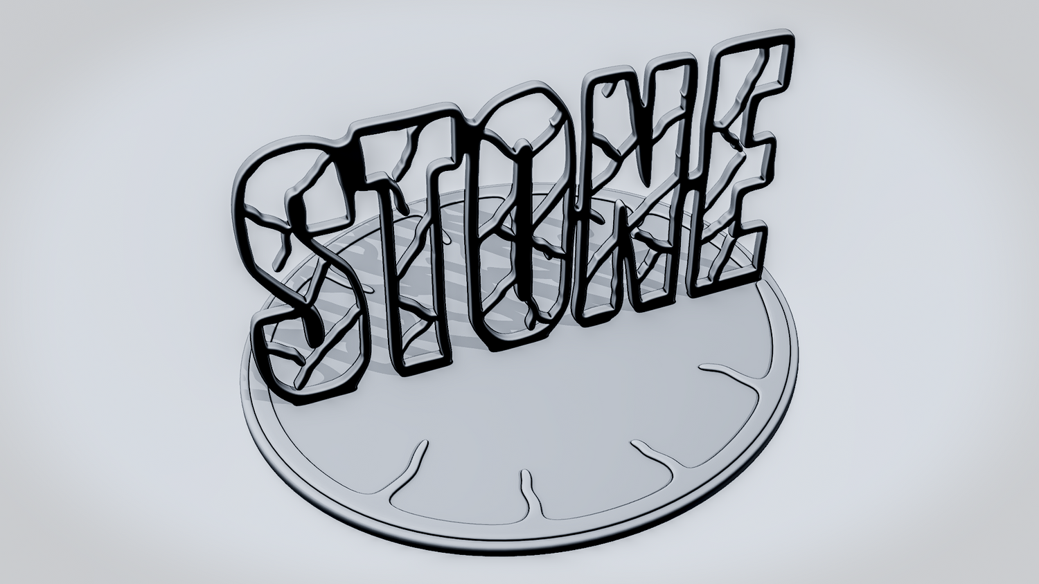 Statue Version: The statue version presents STONE as a freestanding display piece on a round decorative base with subtle fracture-like details that complement the rocky theme. It keeps the cracked lettering clearly visible while giving the model a polished, display-ready presence for desks, shelves, or themed setups.