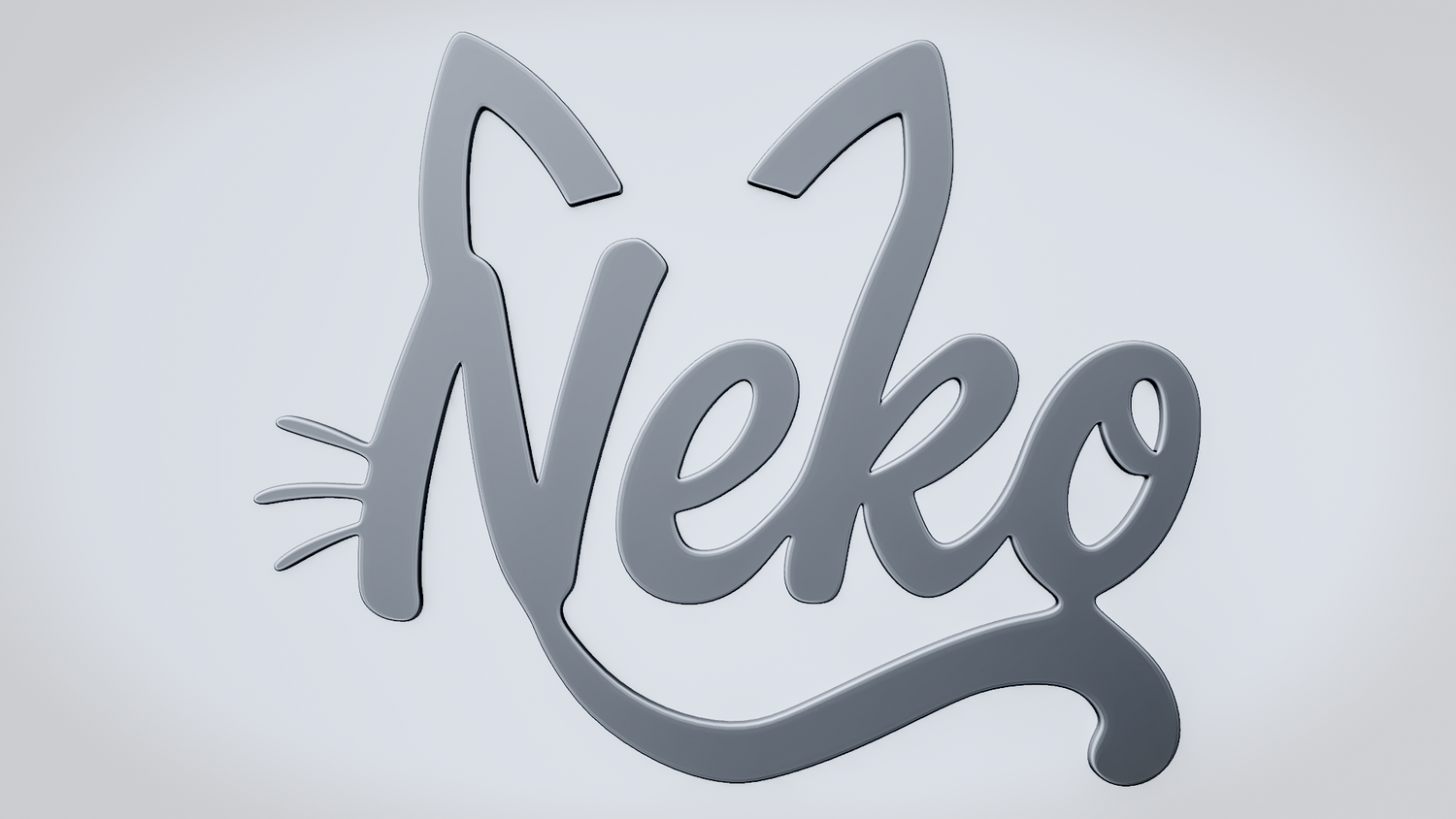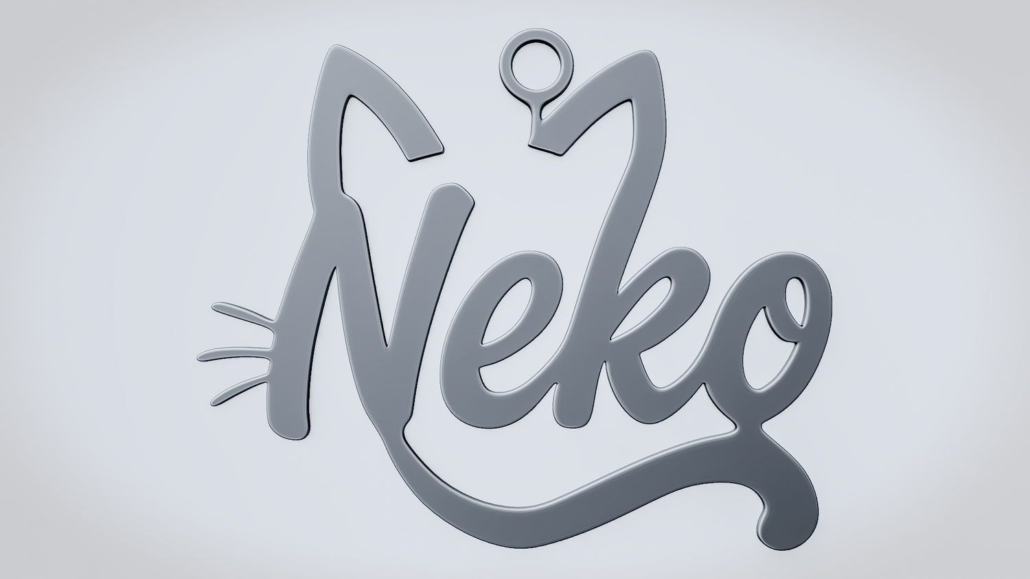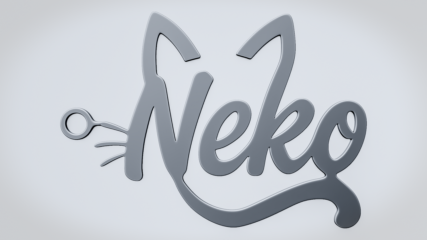A solid 3D printable design featuring the word NEKO in a playful script style, shaped with cat ears, whisker accents, and a tail-like curve that blends the lettering into a cute feline silhouette. The overall form feels charming, clean, and expressive while keeping the word readable and the model sturdy.