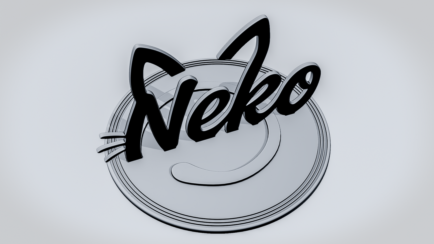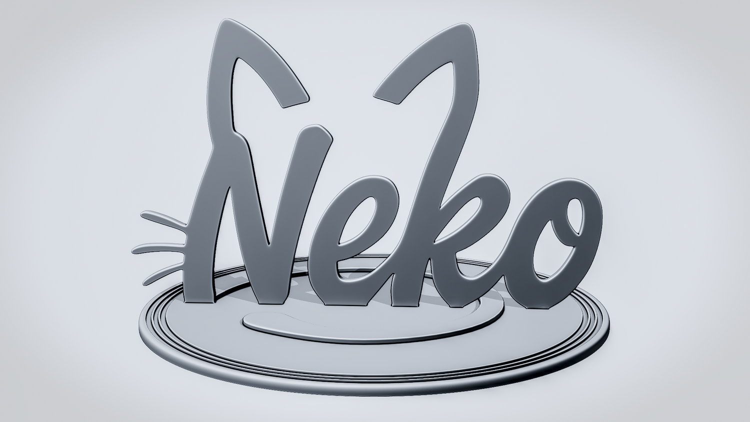 Statue Version: The statue version presents NEKO as a freestanding display piece on a round layered base with a curled tail motif that complements the cat-inspired design. It keeps the ears, whiskers, and flowing script clearly visible while giving the model a polished, display-ready presence for desks, shelves, or themed décor.