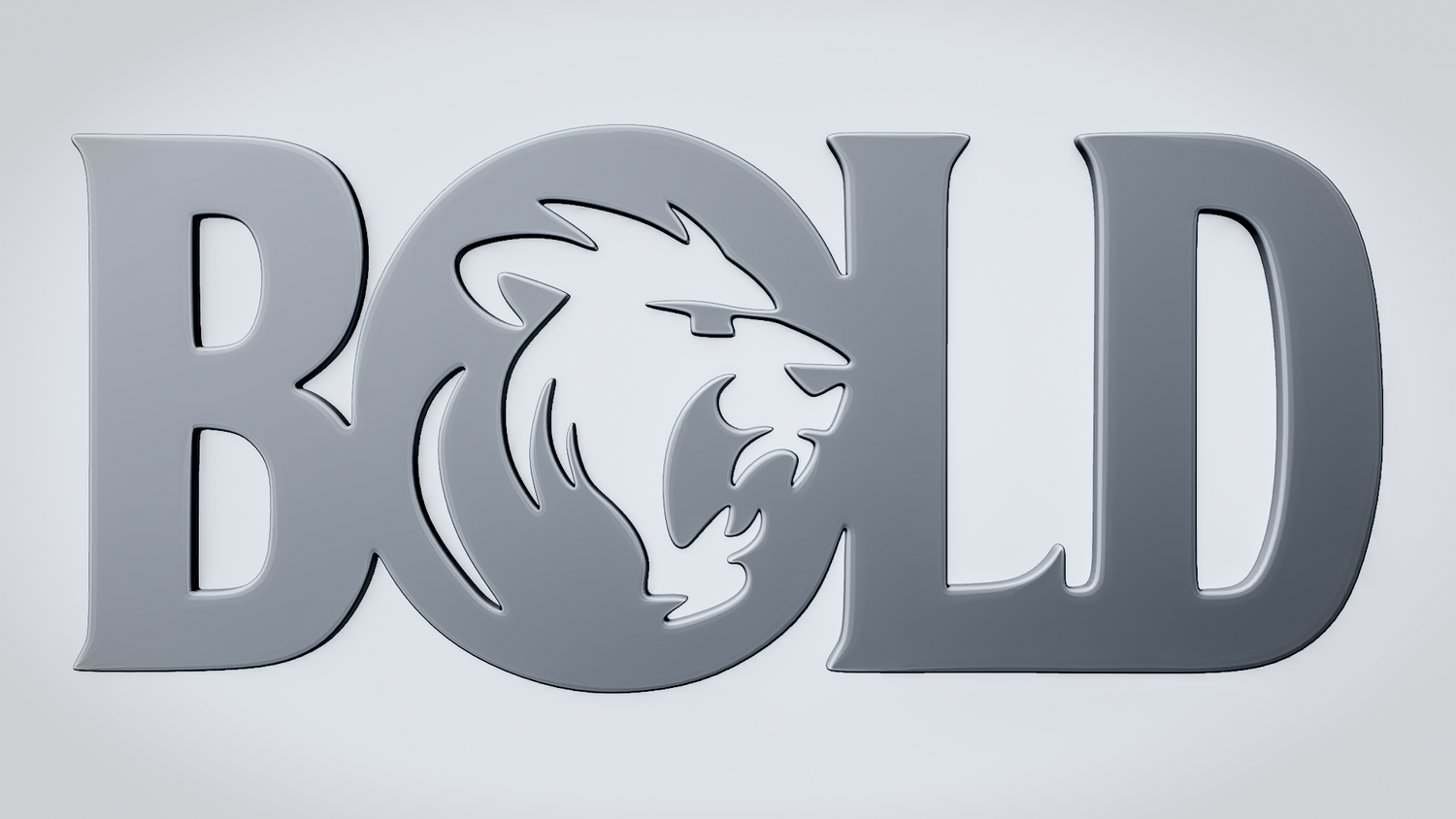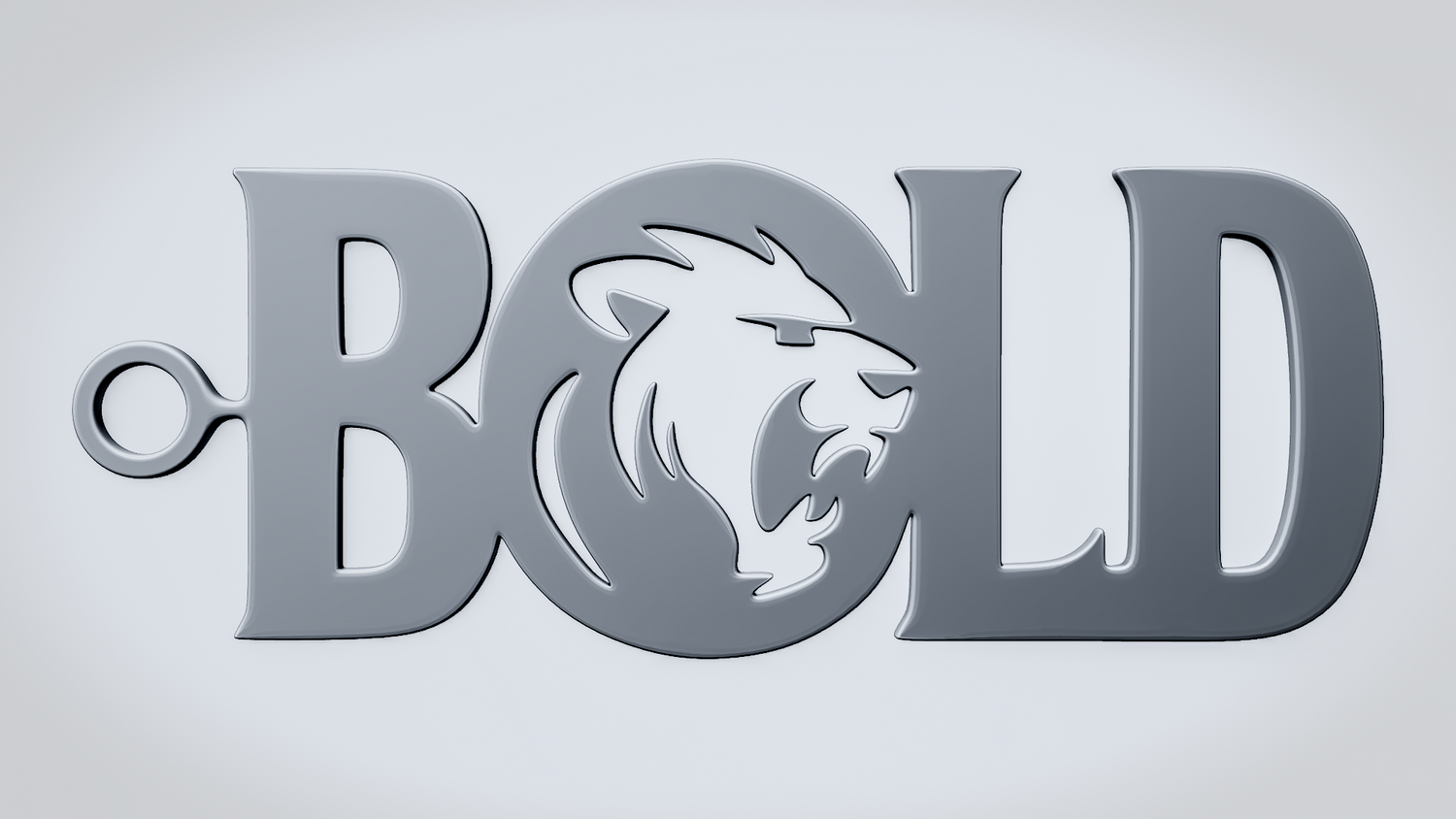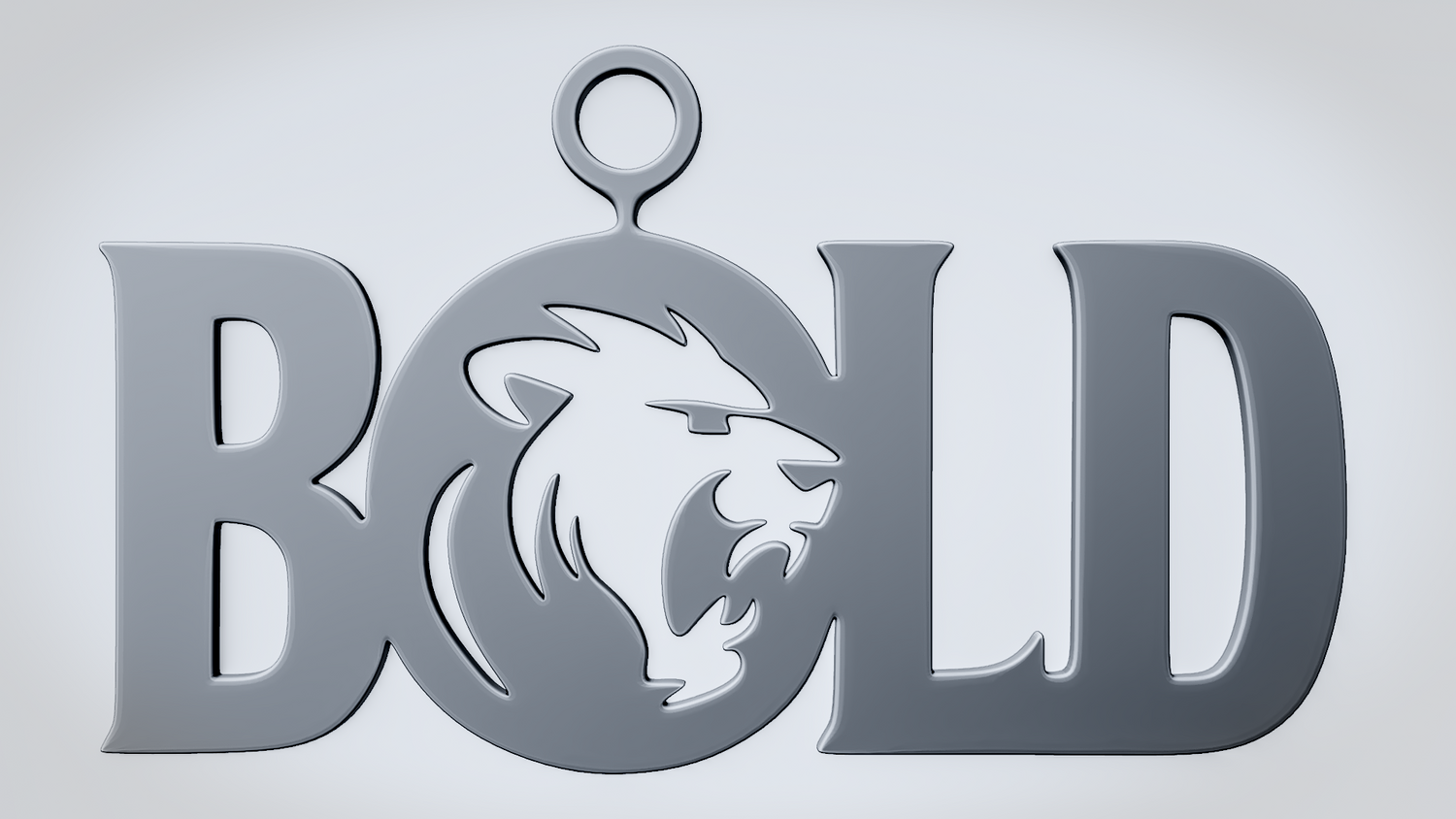 A solid 3D printable design featuring the word BOLD in a strong, clean layout, with a lion head integrated into the O to emphasize power and confidence. The overall shape is sturdy, readable, and visually striking, making it suitable both as an accessory piece and as a decorative printed model.