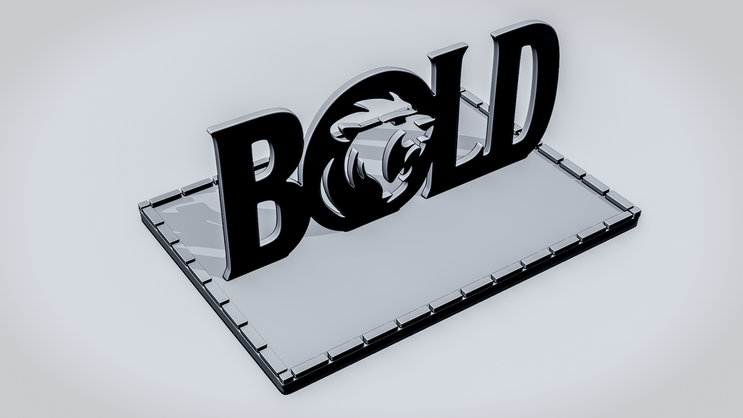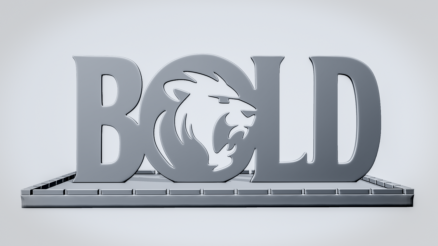 Statue Version: The statue version presents BOLD as a freestanding display piece on a rectangular framed base that gives it a clean, showcase-ready presence. It keeps the lion-emblem lettering clearly visible while adding a stable format for desks, shelves, or display setups.