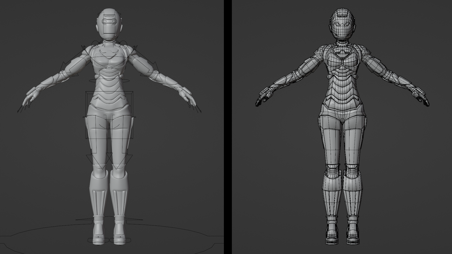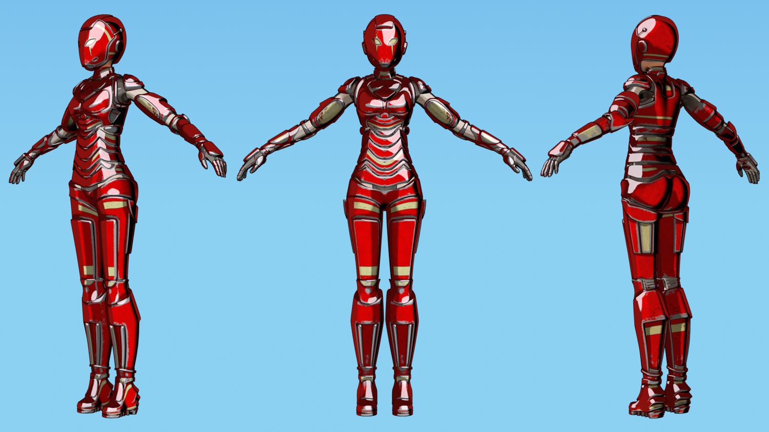 Under the Iron Suit wears a Spandex Suit. Body & Face Rigged. UV Unwrapped and textured. Comes with textures at 2k & 4k resolution. Contains PBR & Toon (LBS) variations.