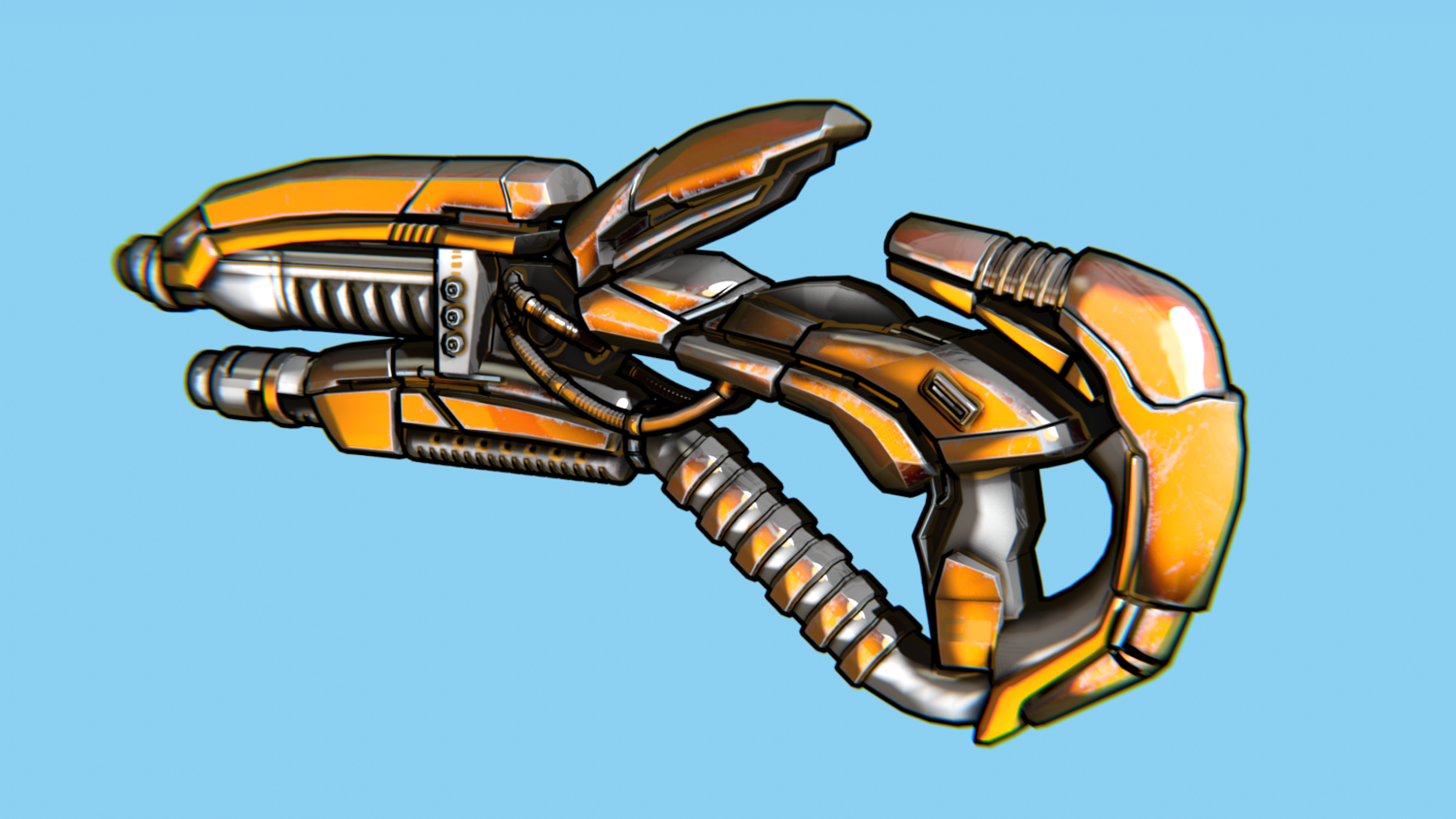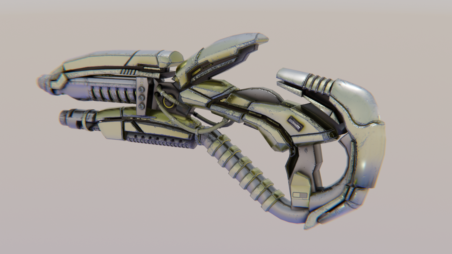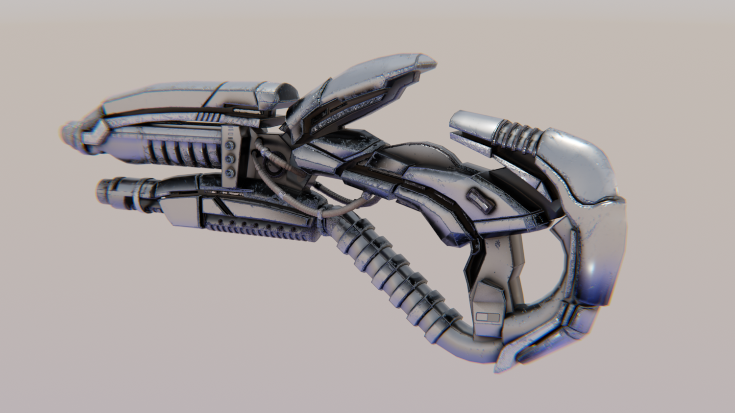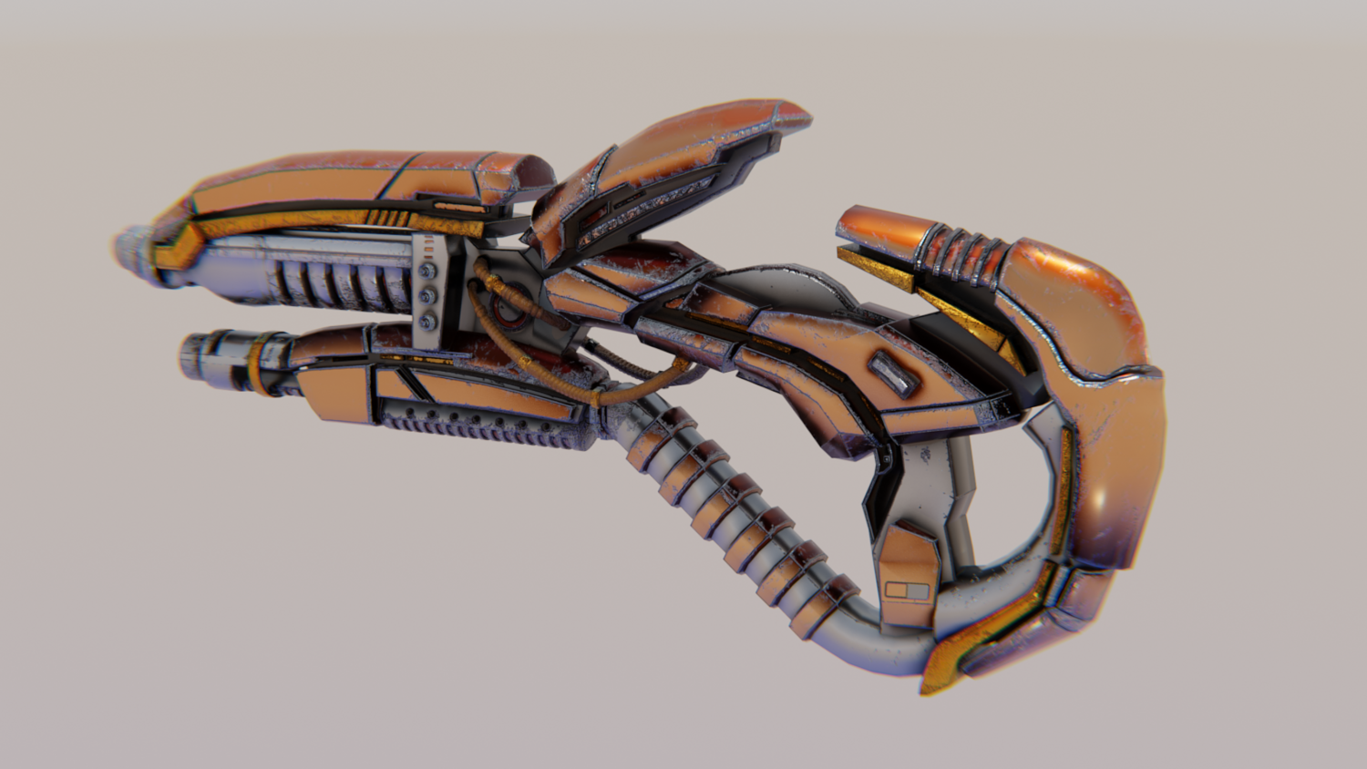 Hard-Surface Science-Fiction, Futuristic 3D Model. The low poly model - One-Hand Shotgun. Easy to modify and animate. UV Unwrapped and textured. Comes with textures at 4096x4096 resolution.