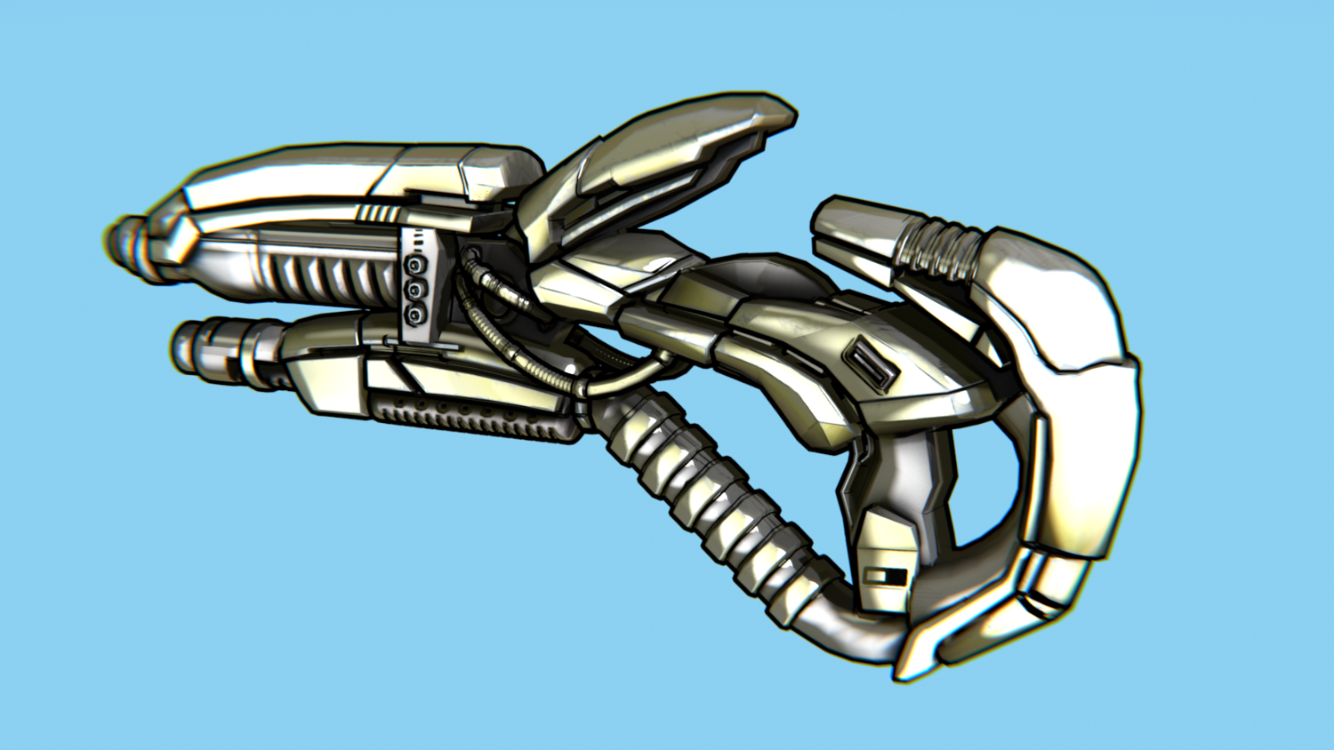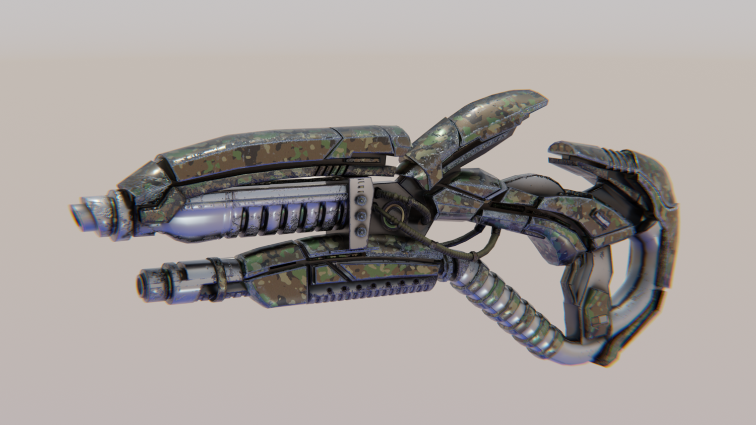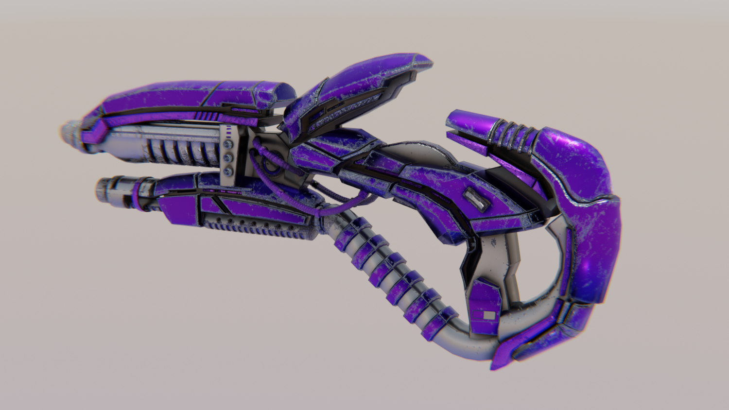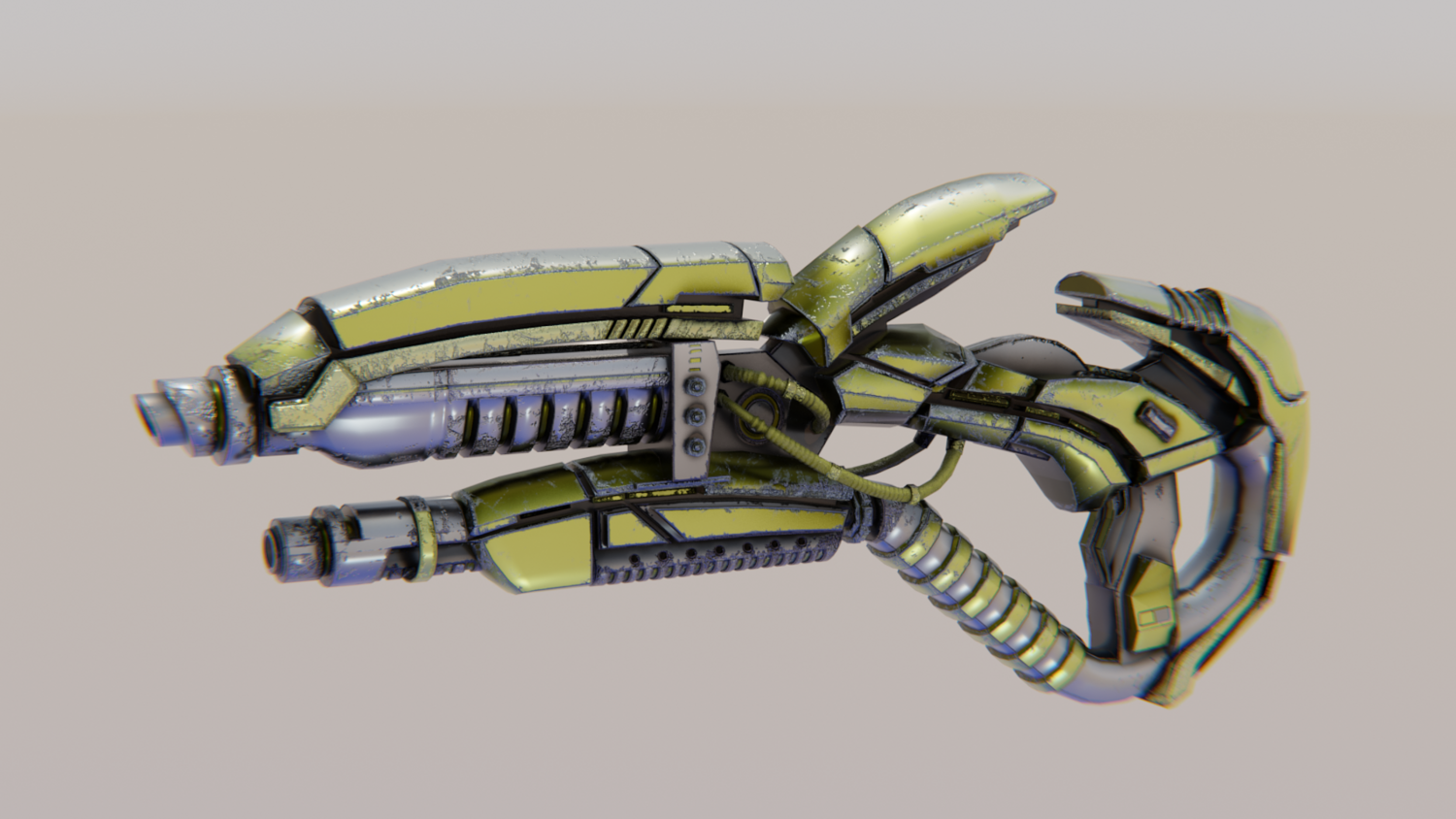 Hard-Surface Science-Fiction, Futuristic 3D Model. The low poly model - One-Hand Shotgun. Easy to modify and animate. UV Unwrapped and textured. Comes with textures at 4096x4096 resolution.
