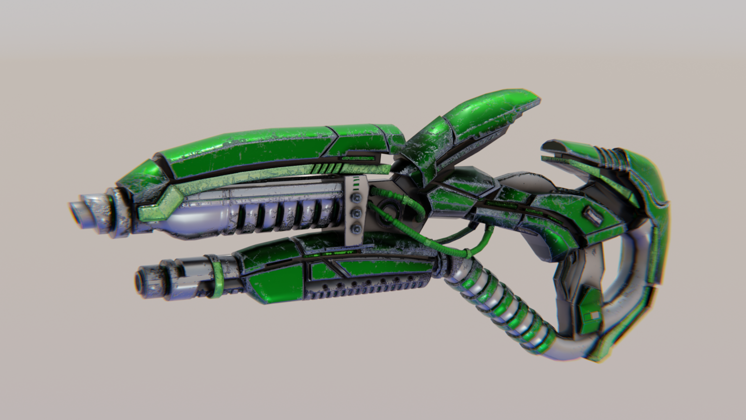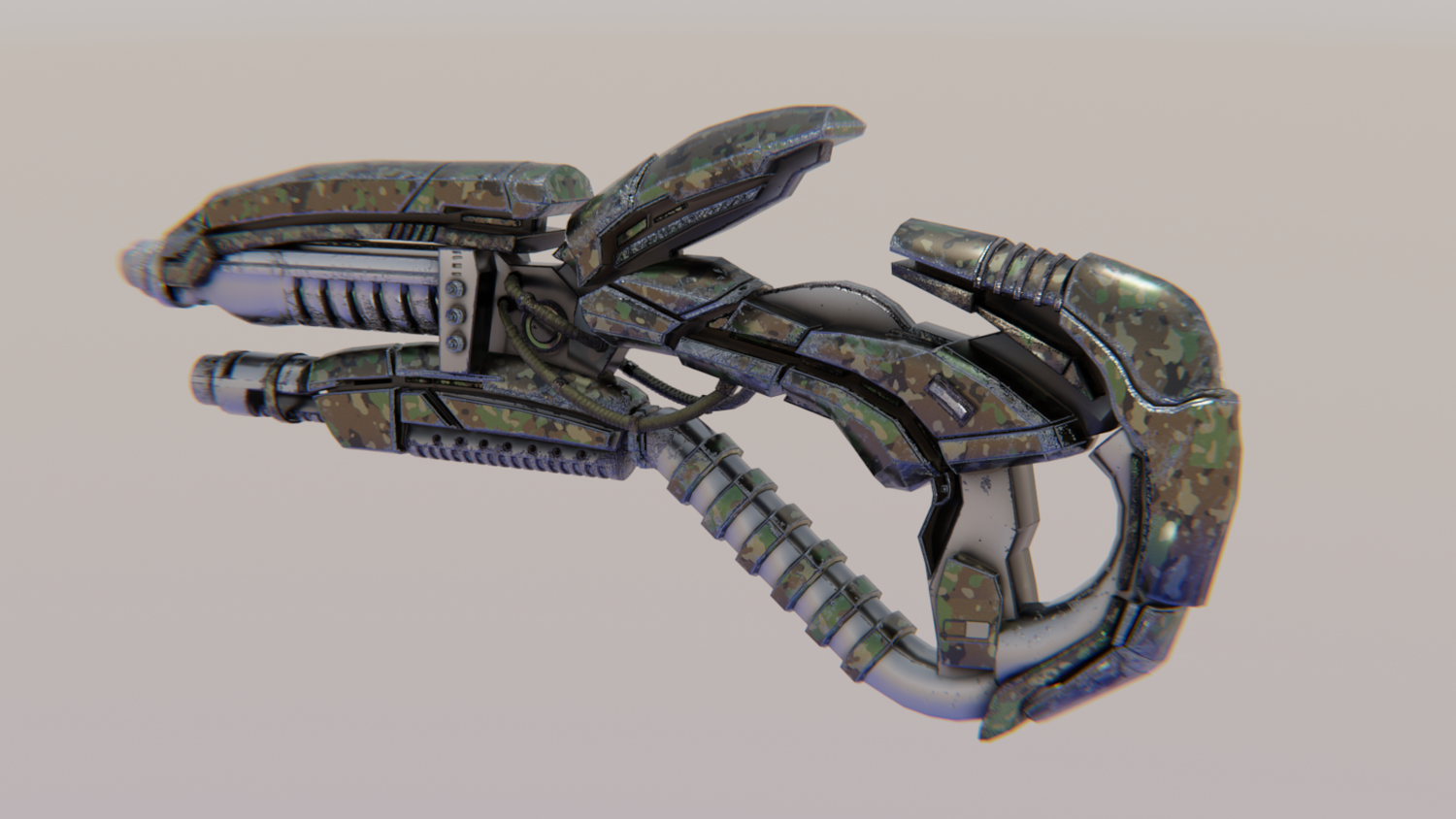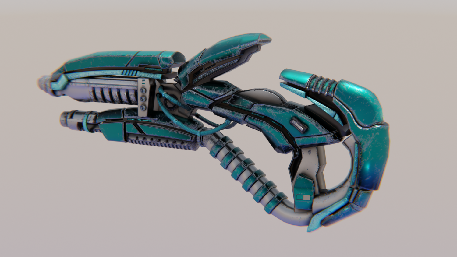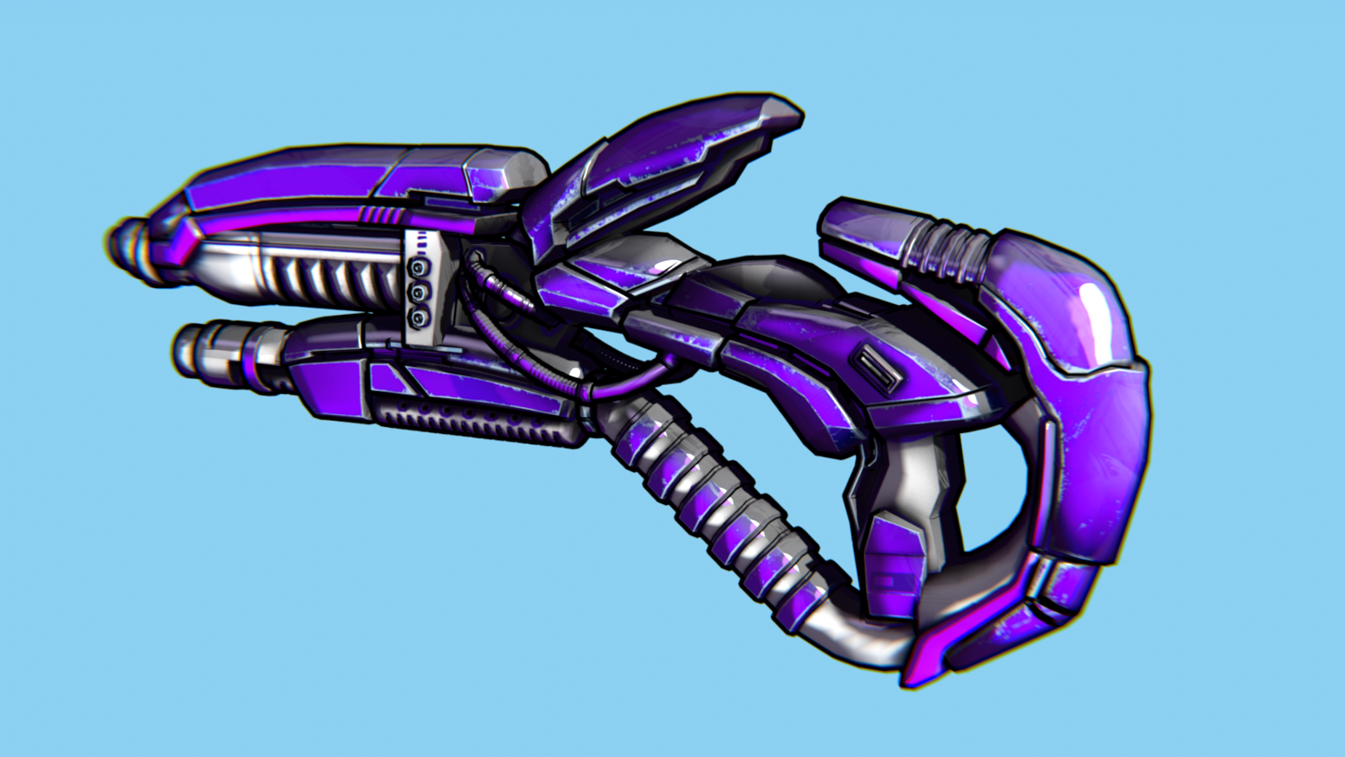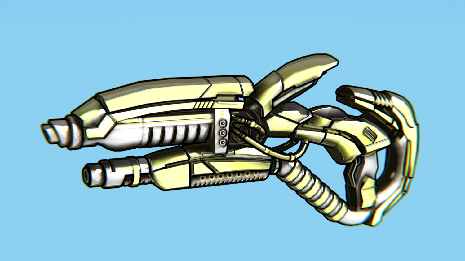 Hard-Surface Science-Fiction, Futuristic 3D Model. The low poly model - One-Hand Shotgun. Easy to modify and animate. UV Unwrapped and textured. Comes with textures at 4096x4096 resolution.