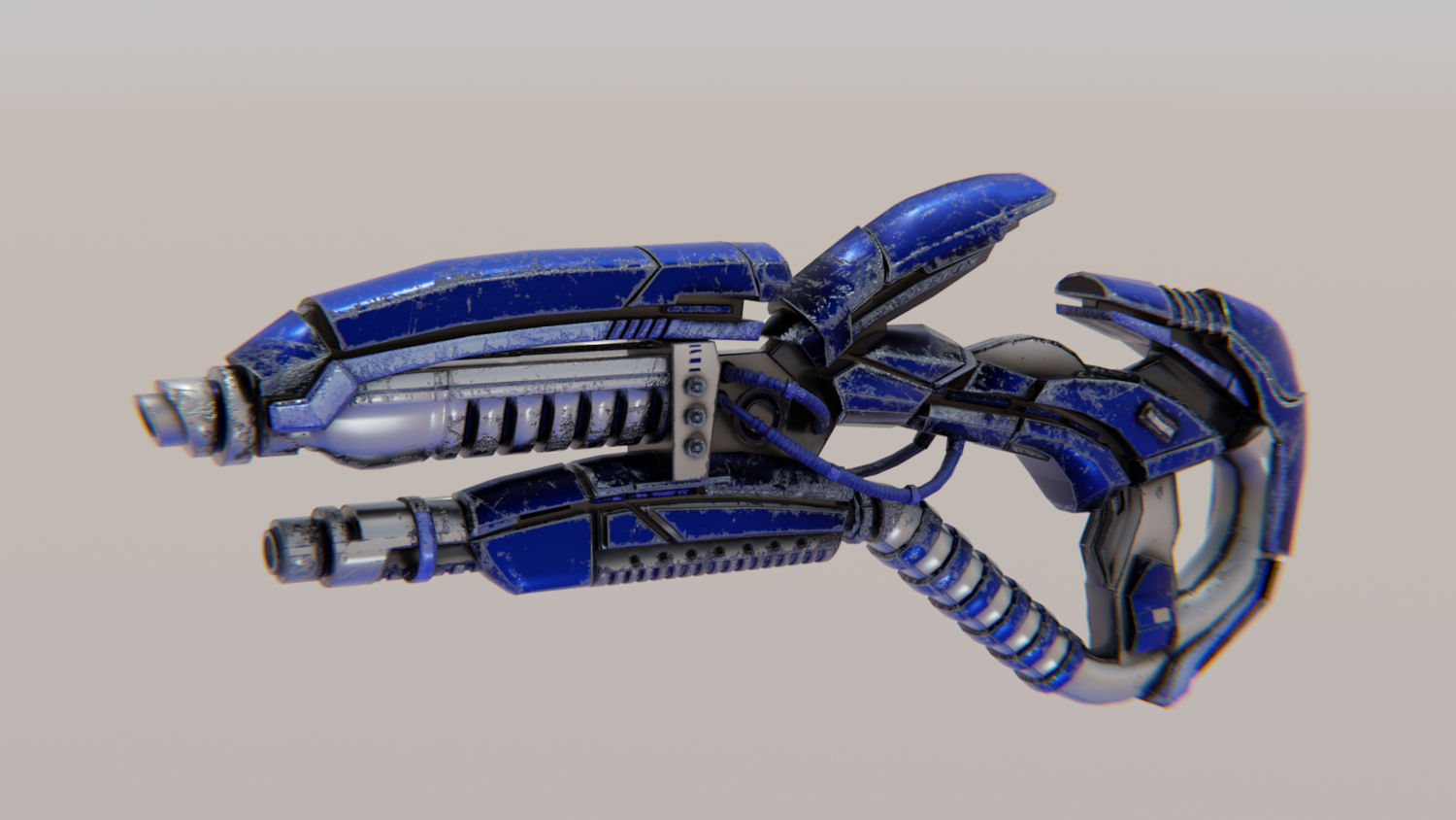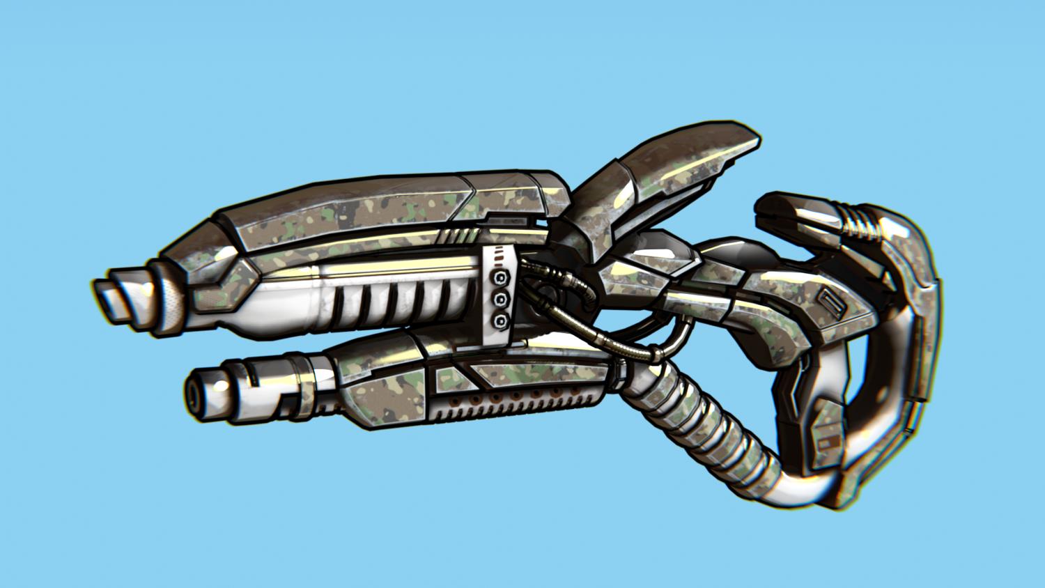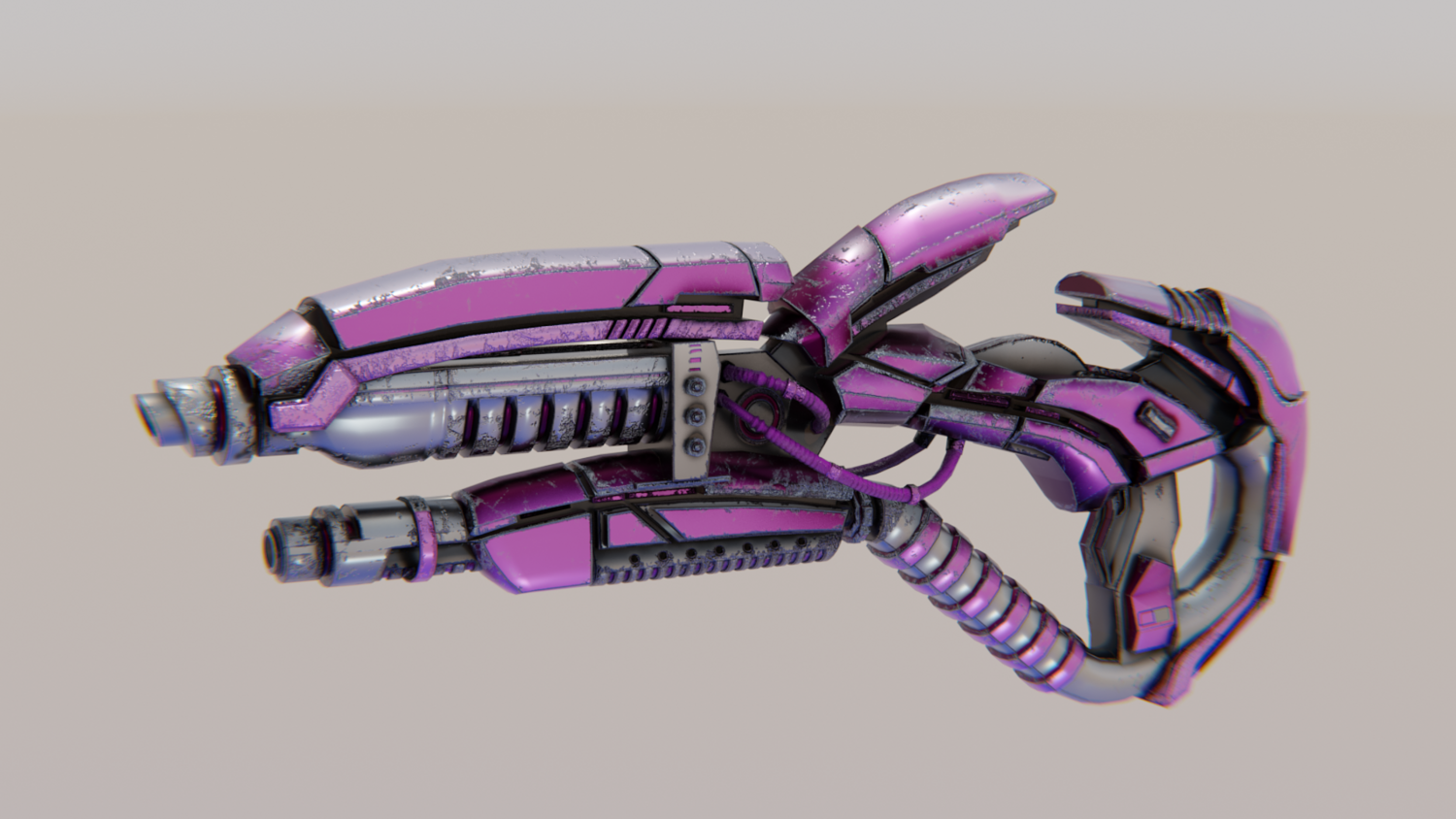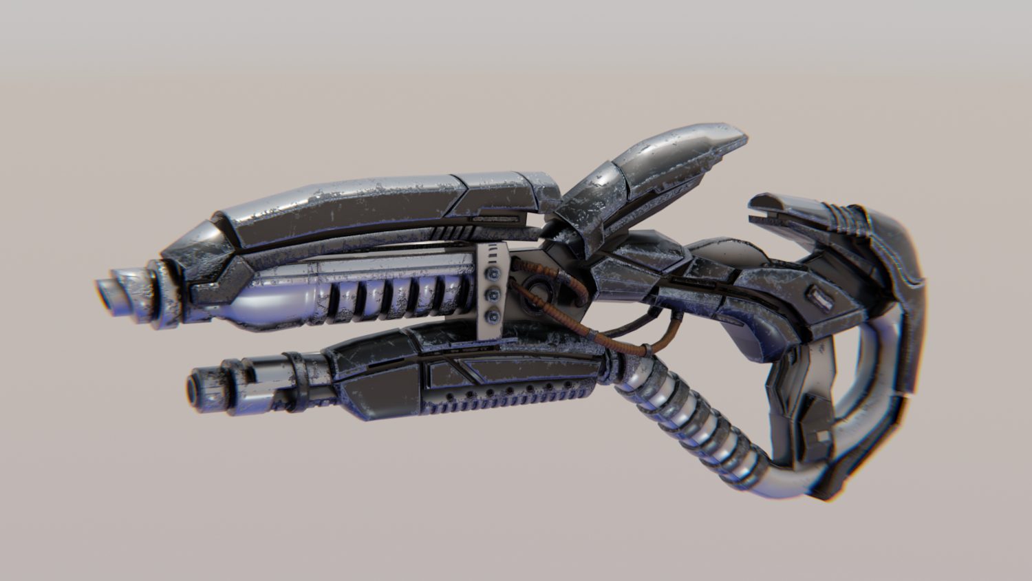 Hard-Surface Science-Fiction, Futuristic 3D Model. The low poly model - One-Hand Shotgun. Easy to modify and animate. UV Unwrapped and textured. Comes with textures at 4096x4096 resolution.
