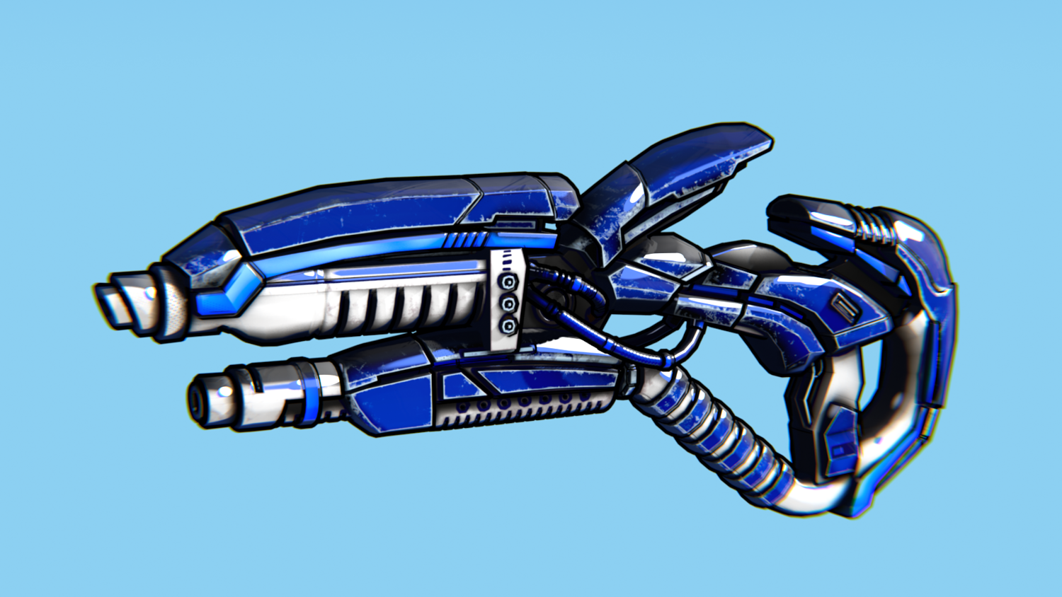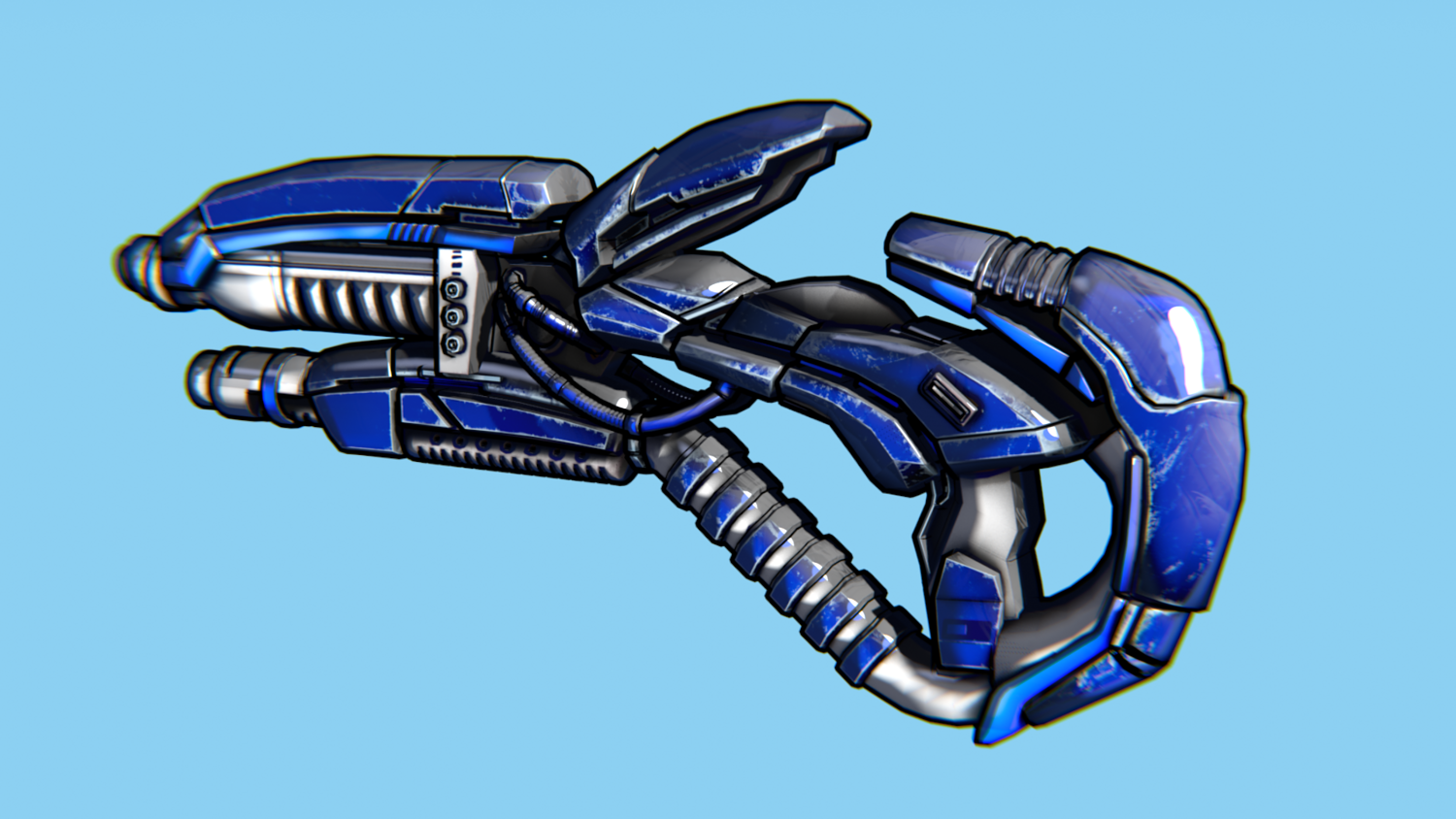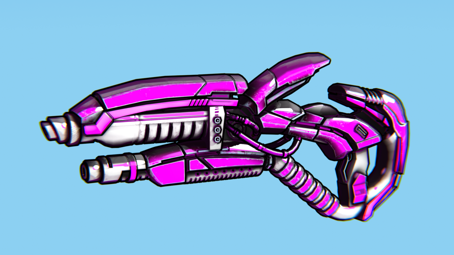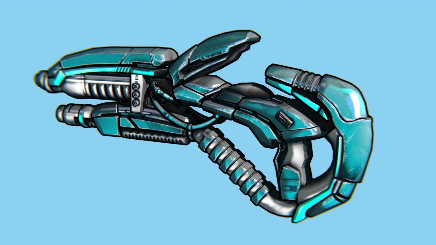 Hard-Surface Science-Fiction, Futuristic 3D Model. The low poly model - One-Hand Shotgun. Easy to modify and animate. UV Unwrapped and textured. Comes with textures at 4096x4096 resolution.