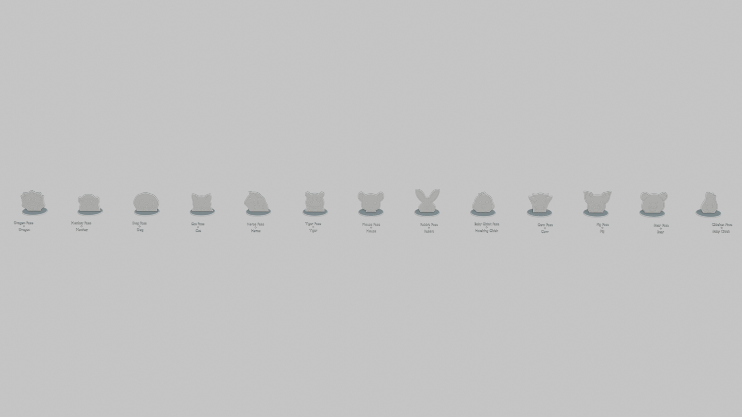 Theme: Animals & Their Emoji Alter-Egos Files: Original .blend, all exported individually to .stl ready for print. License: All inspired by OpenMoji.org and licensed under CC BY-SA 4.0.