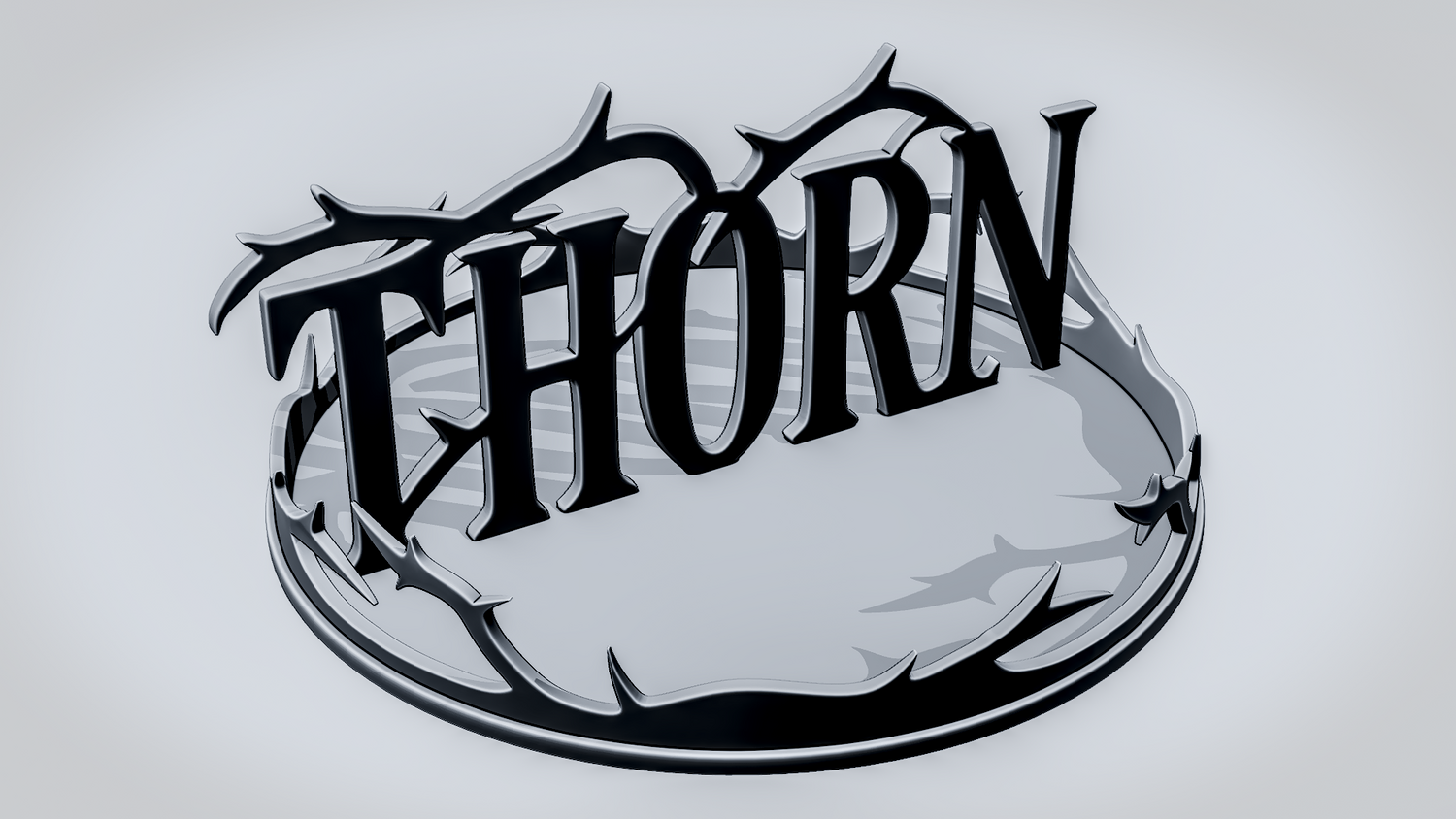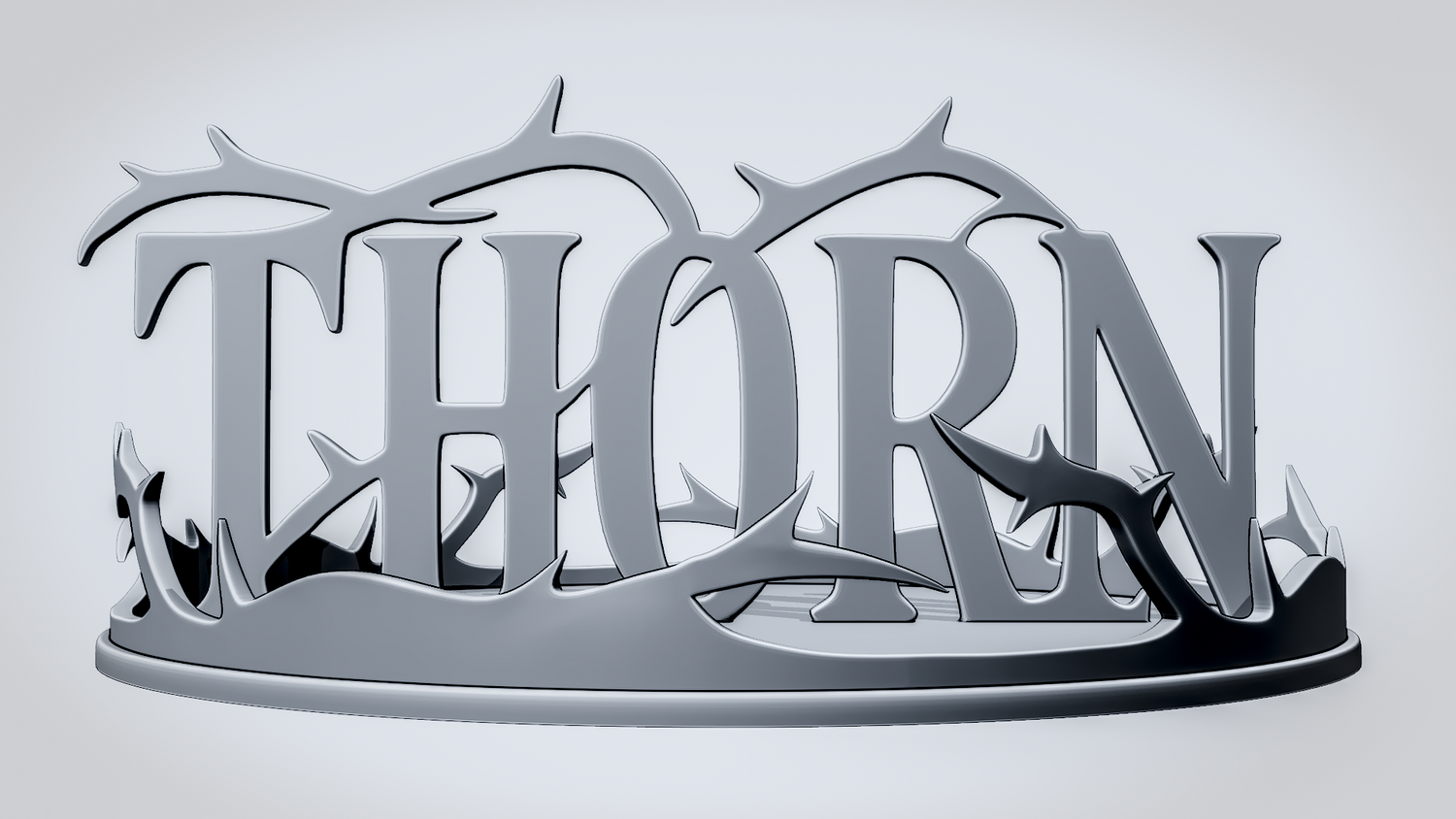 Statue Version: The statue version presents THORN as a freestanding display piece on a round base framed with raised thorn details that strengthen the overall concept. It keeps the word clearly visible while giving the design a more decorative and showcase-ready presence for desks, shelves, or display setups.
