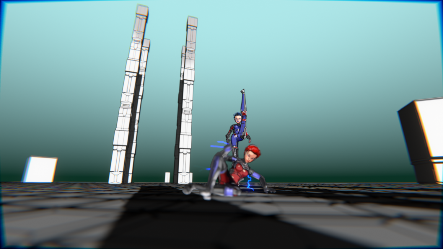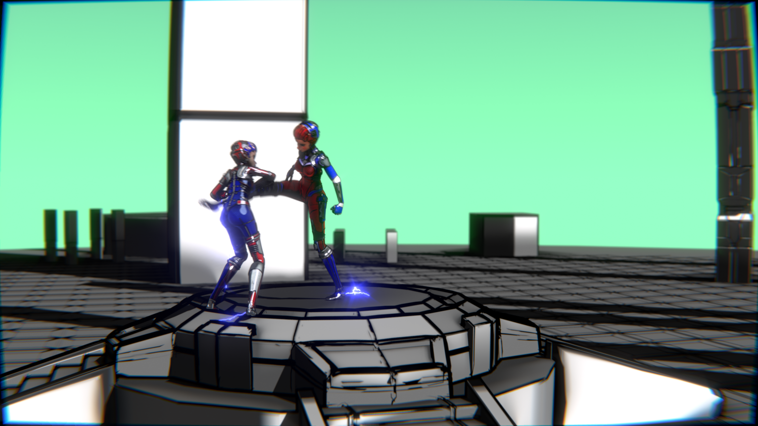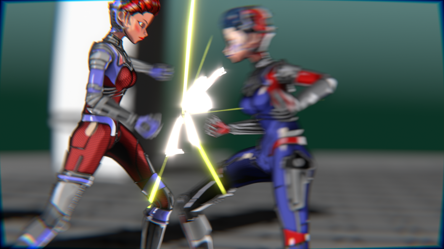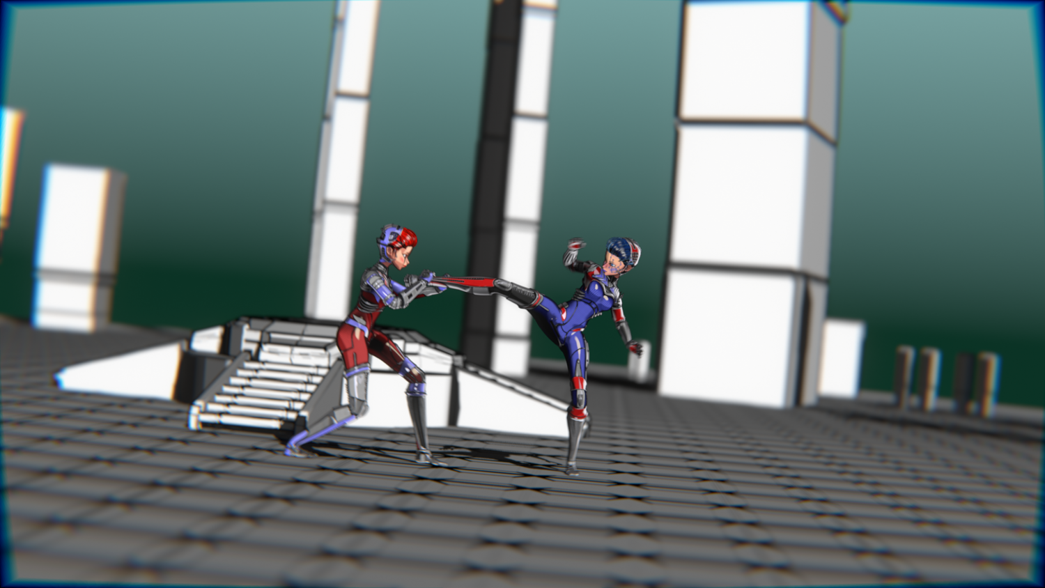 A stylized cyberpunk-inspired combat pack featuring two asymmetric robotic girls (Red & Blue variants) with high-tech designs, multiple shader options, and fully rigged combat animations. Perfect for games, cinematics, and stylized renders.