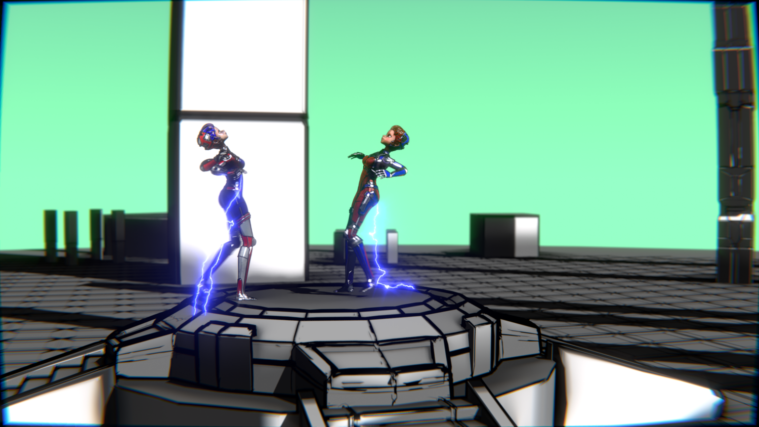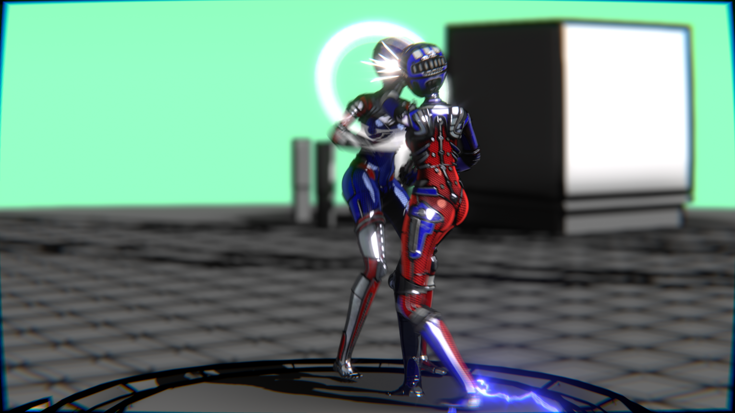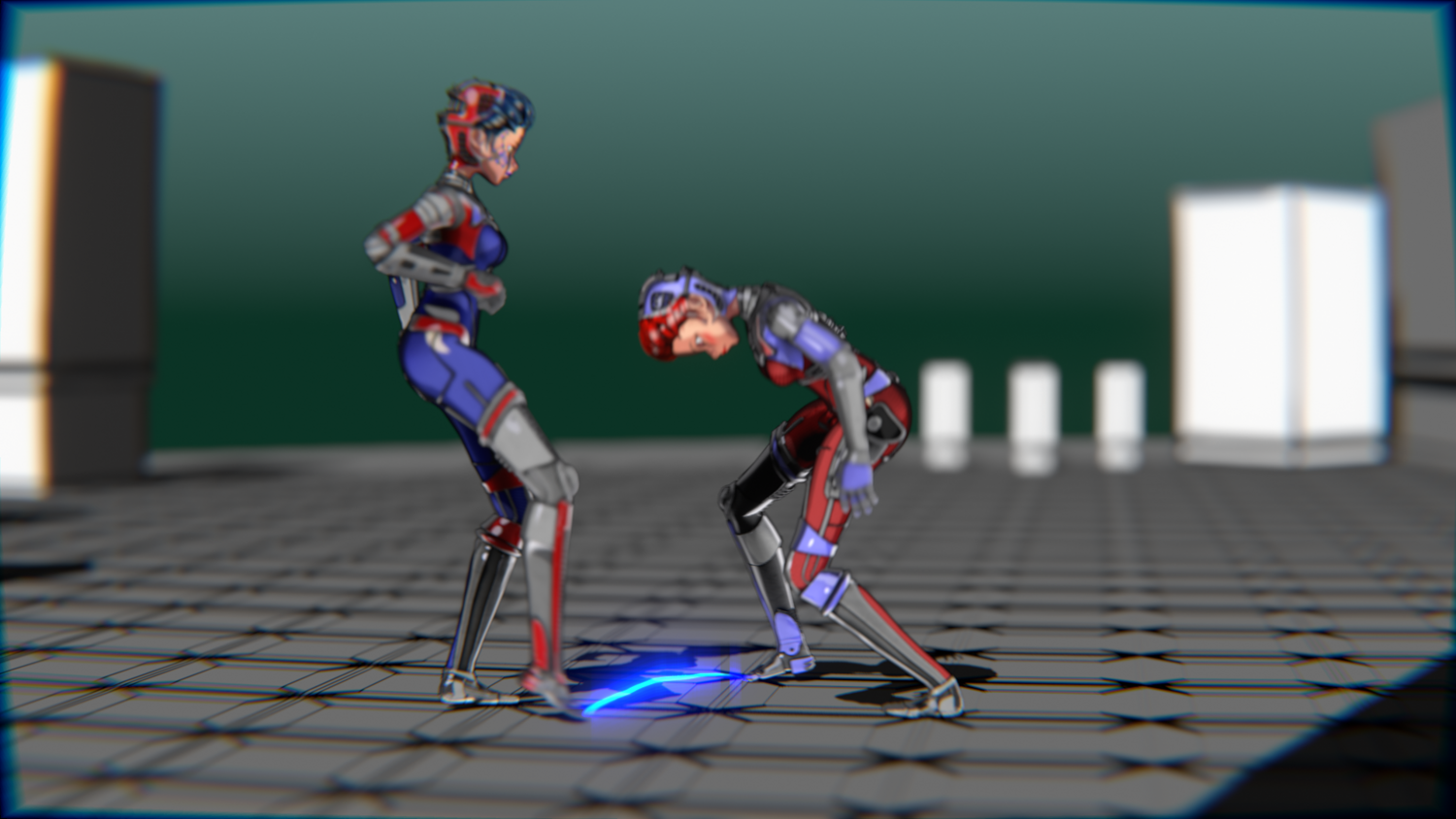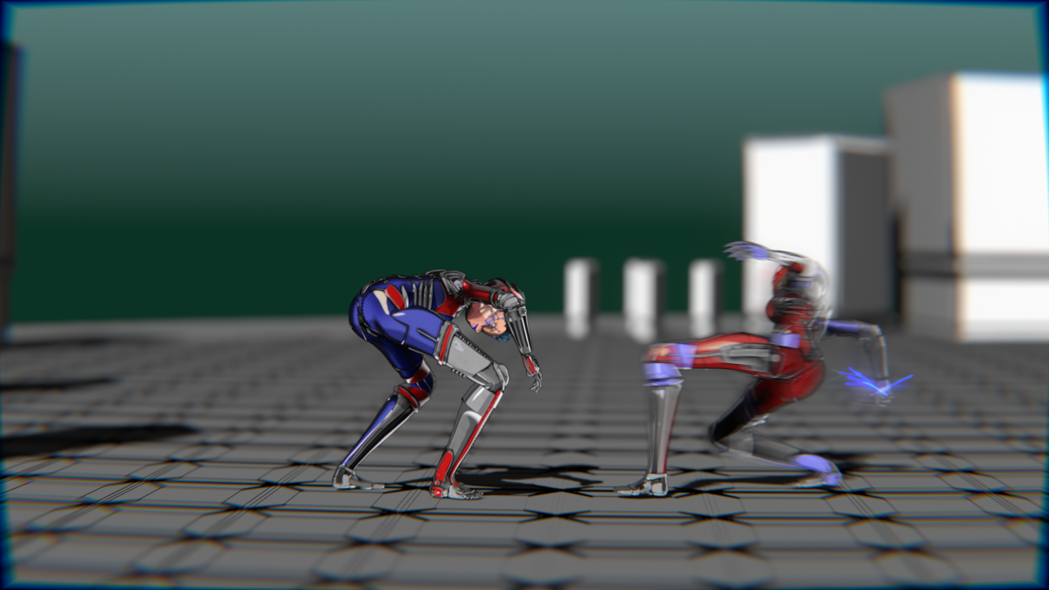 A stylized cyberpunk-inspired combat pack featuring two asymmetric robotic girls (Red & Blue variants) with high-tech designs, multiple shader options, and fully rigged combat animations. Perfect for games, cinematics, and stylized renders.