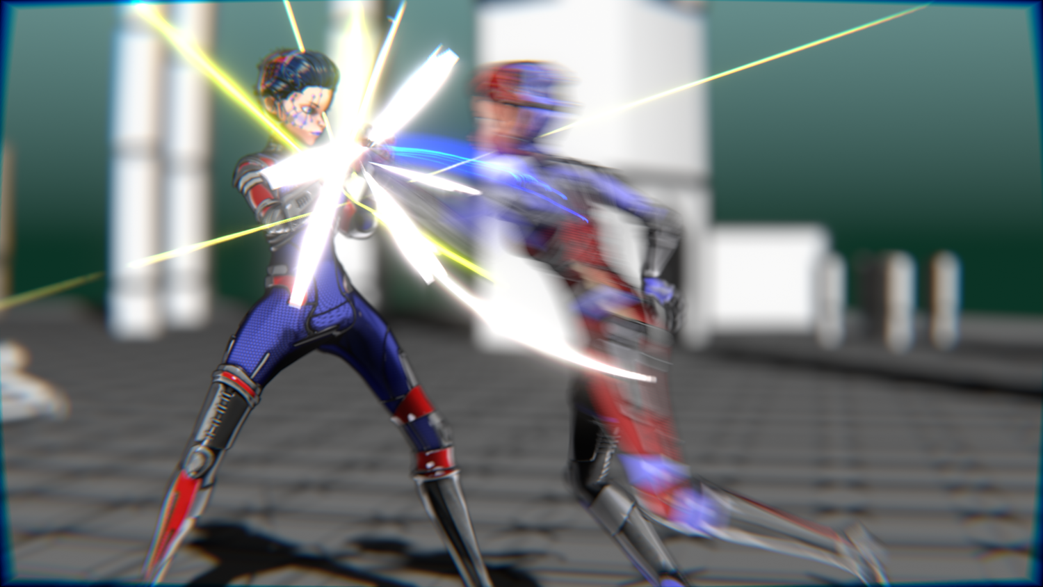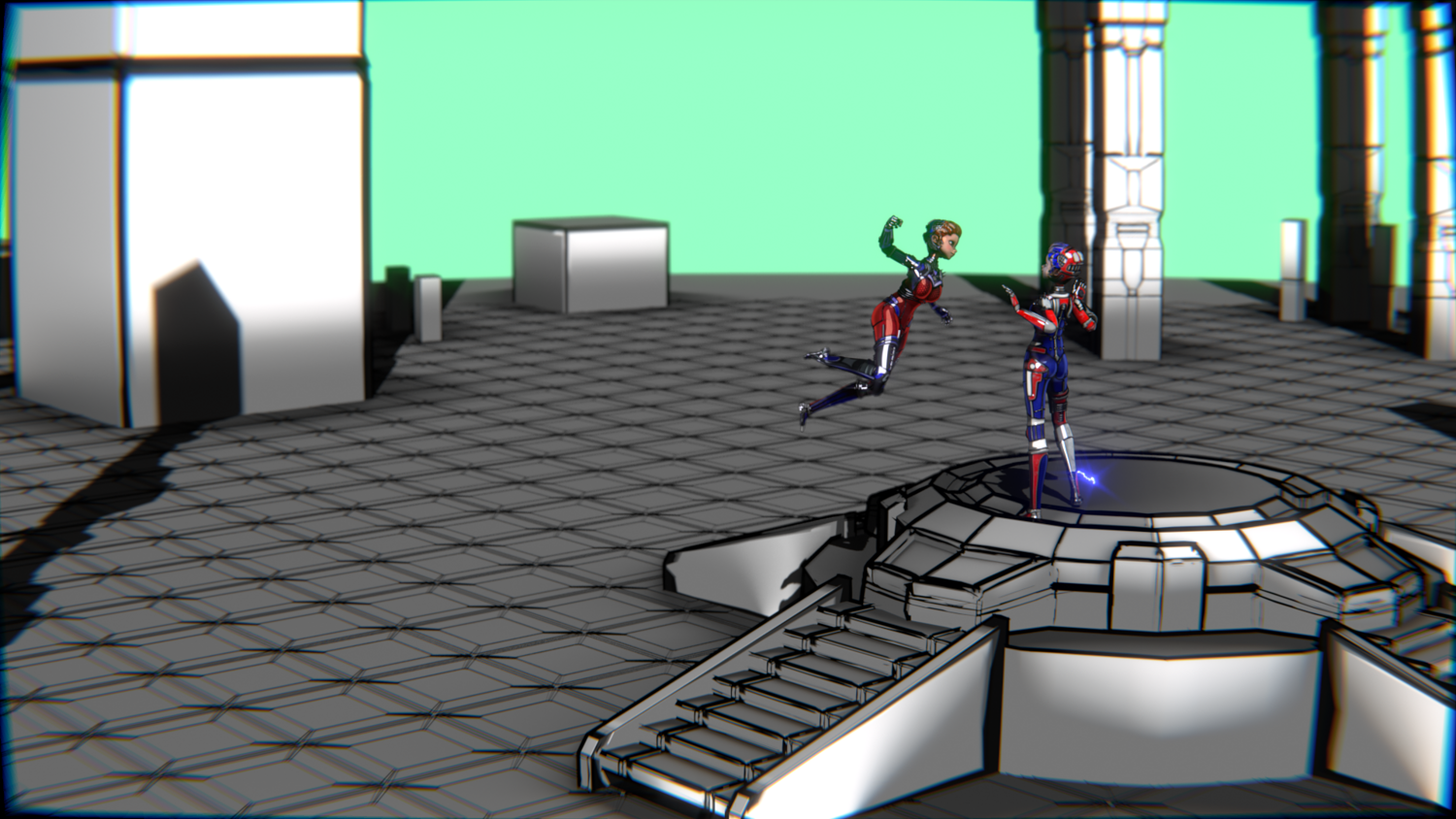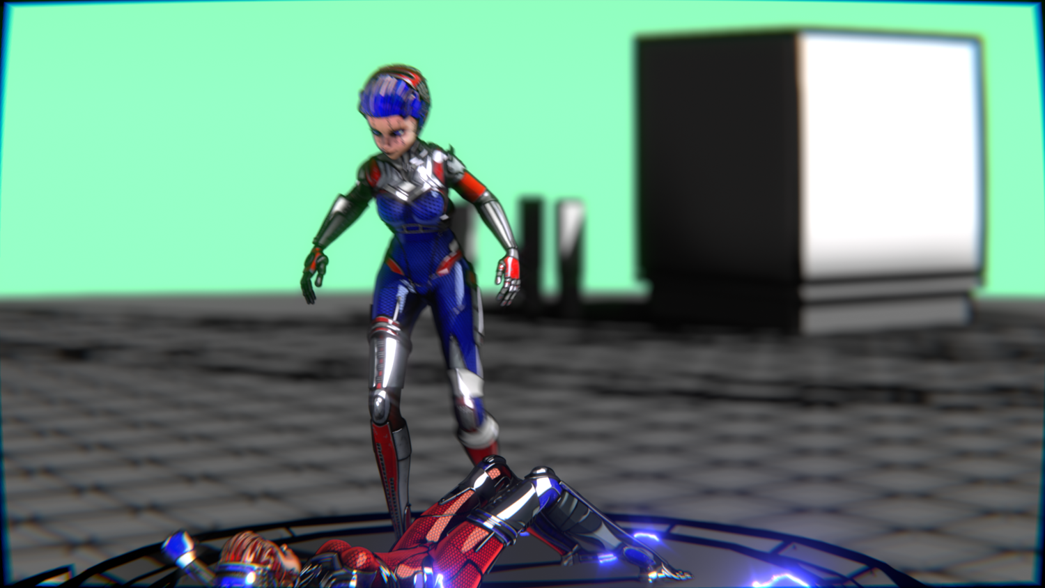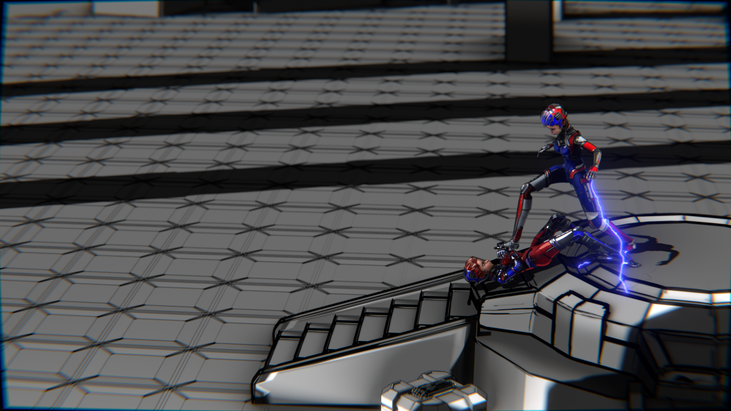 A stylized cyberpunk-inspired combat pack featuring two asymmetric robotic girls (Red & Blue variants) with high-tech designs, multiple shader options, and fully rigged combat animations. Perfect for games, cinematics, and stylized renders.